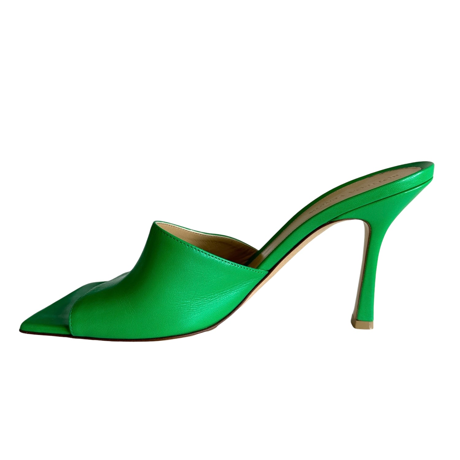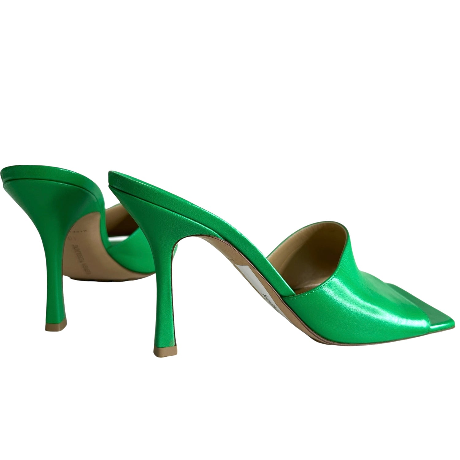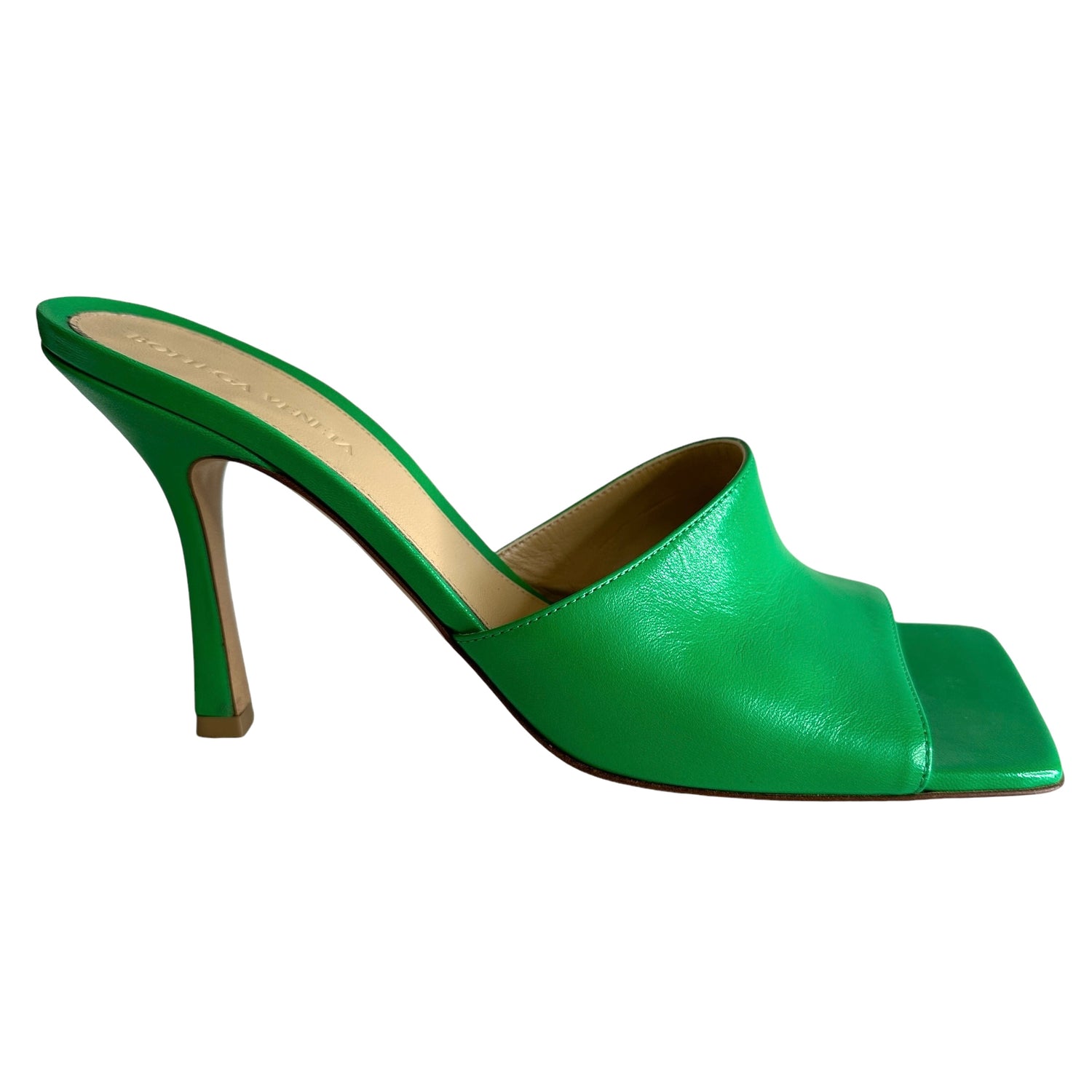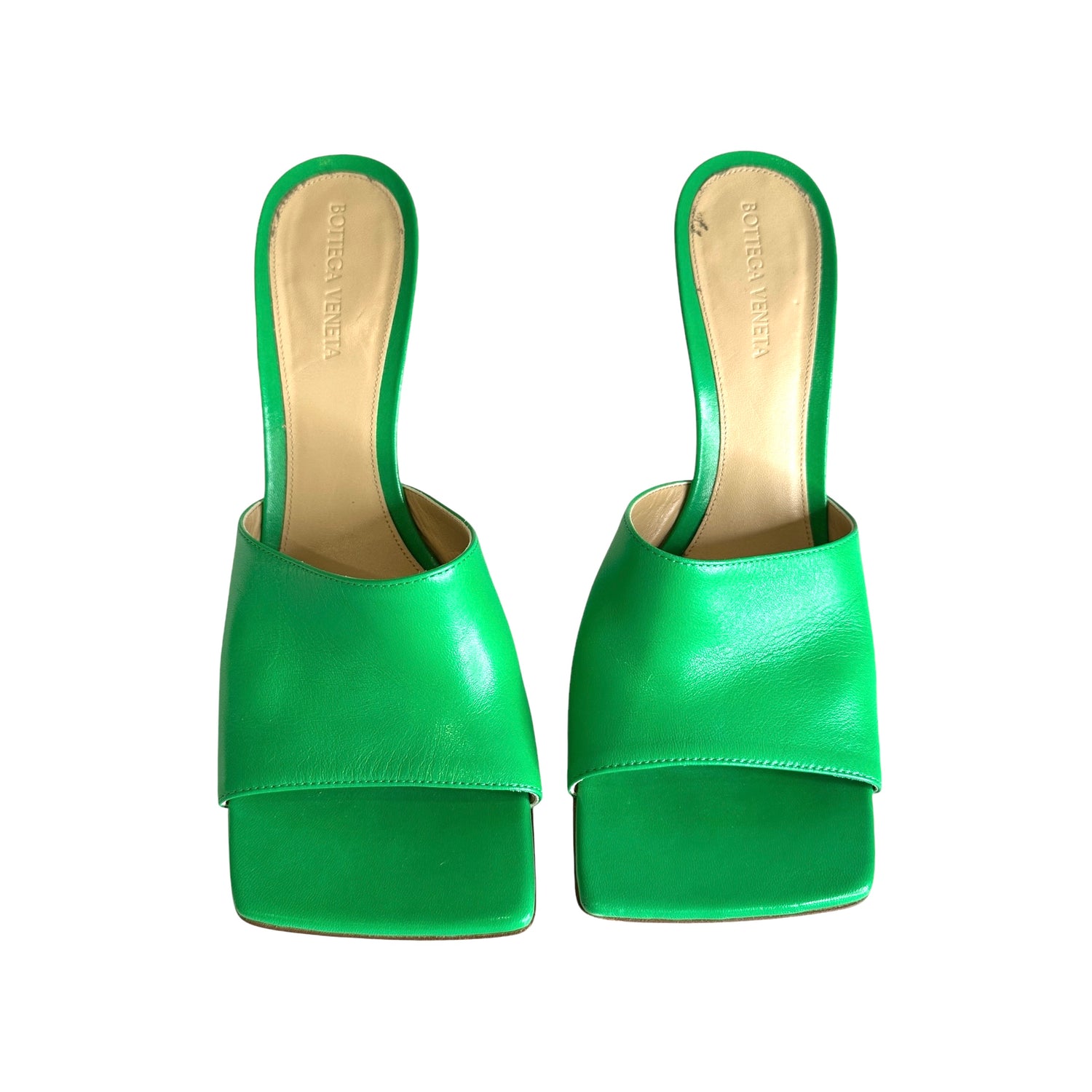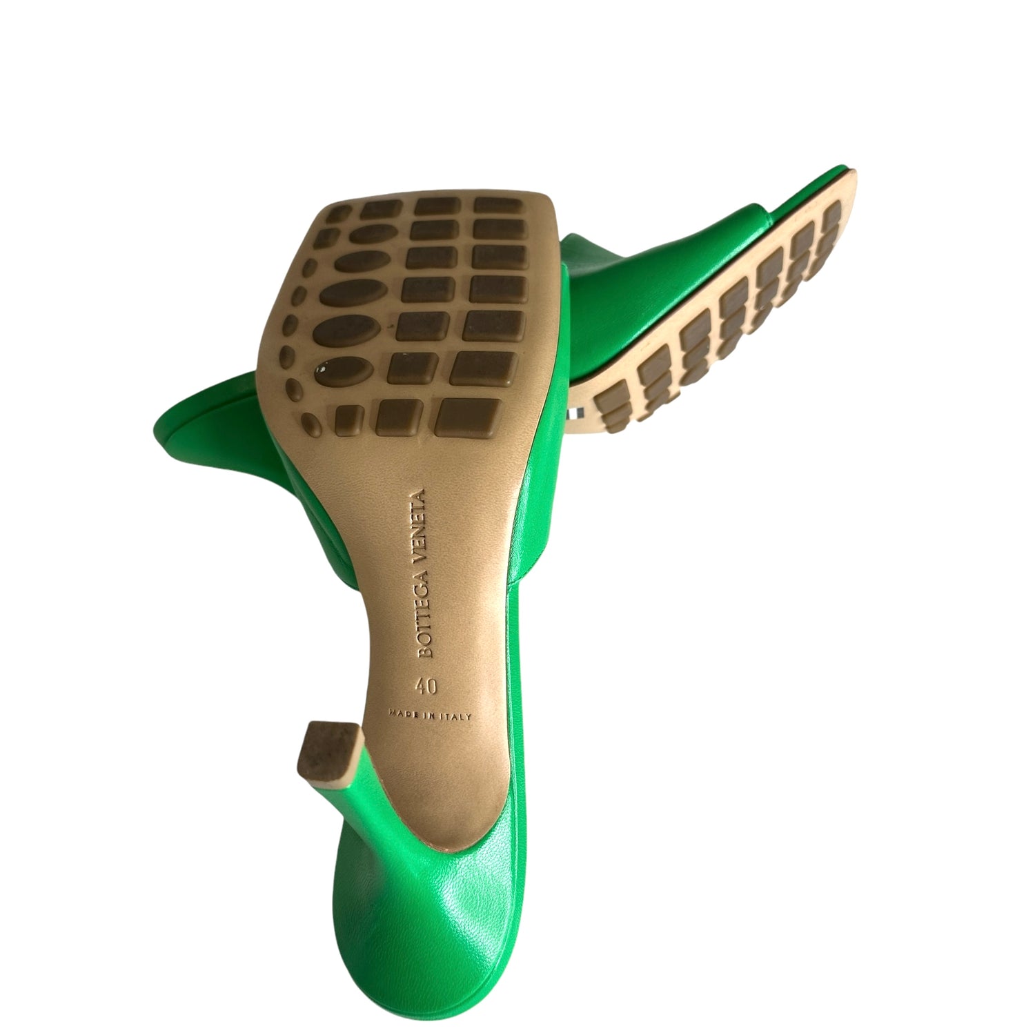 Bottega Veneta green heels. Parakeet green which is the Bottega iconic color. Square toe. Rubber grips outer soles. Designer size 40 (Insoles 10.25")