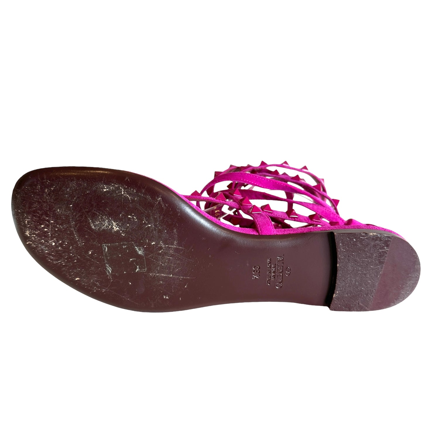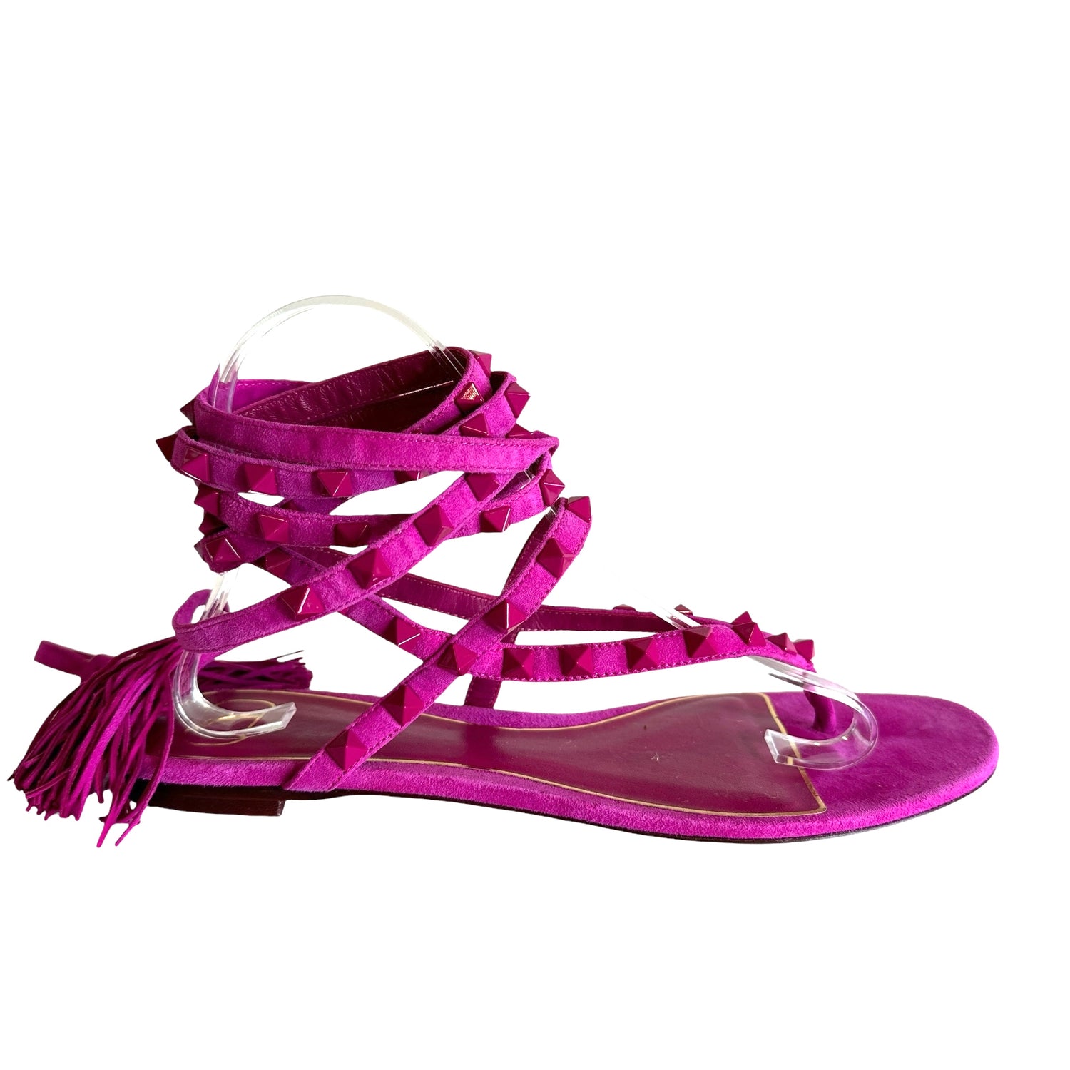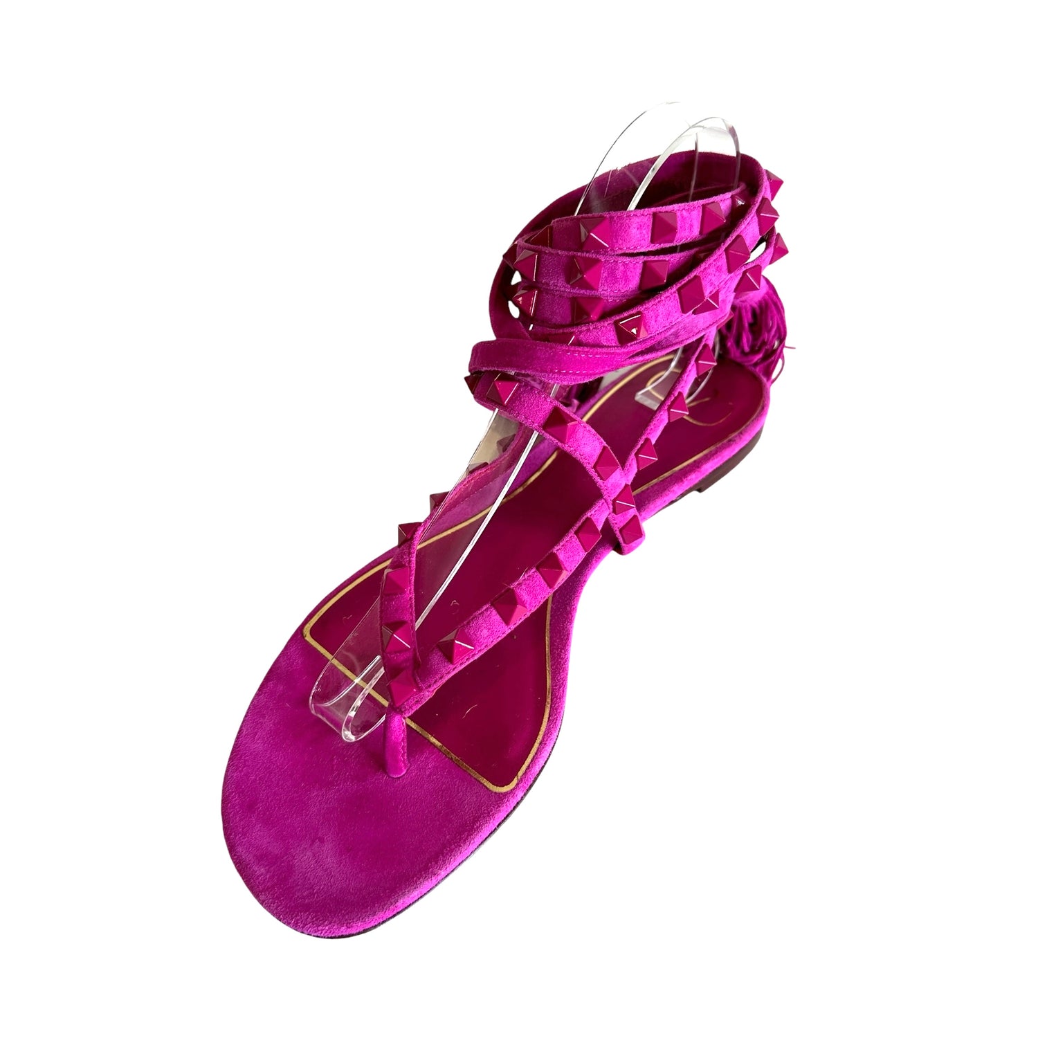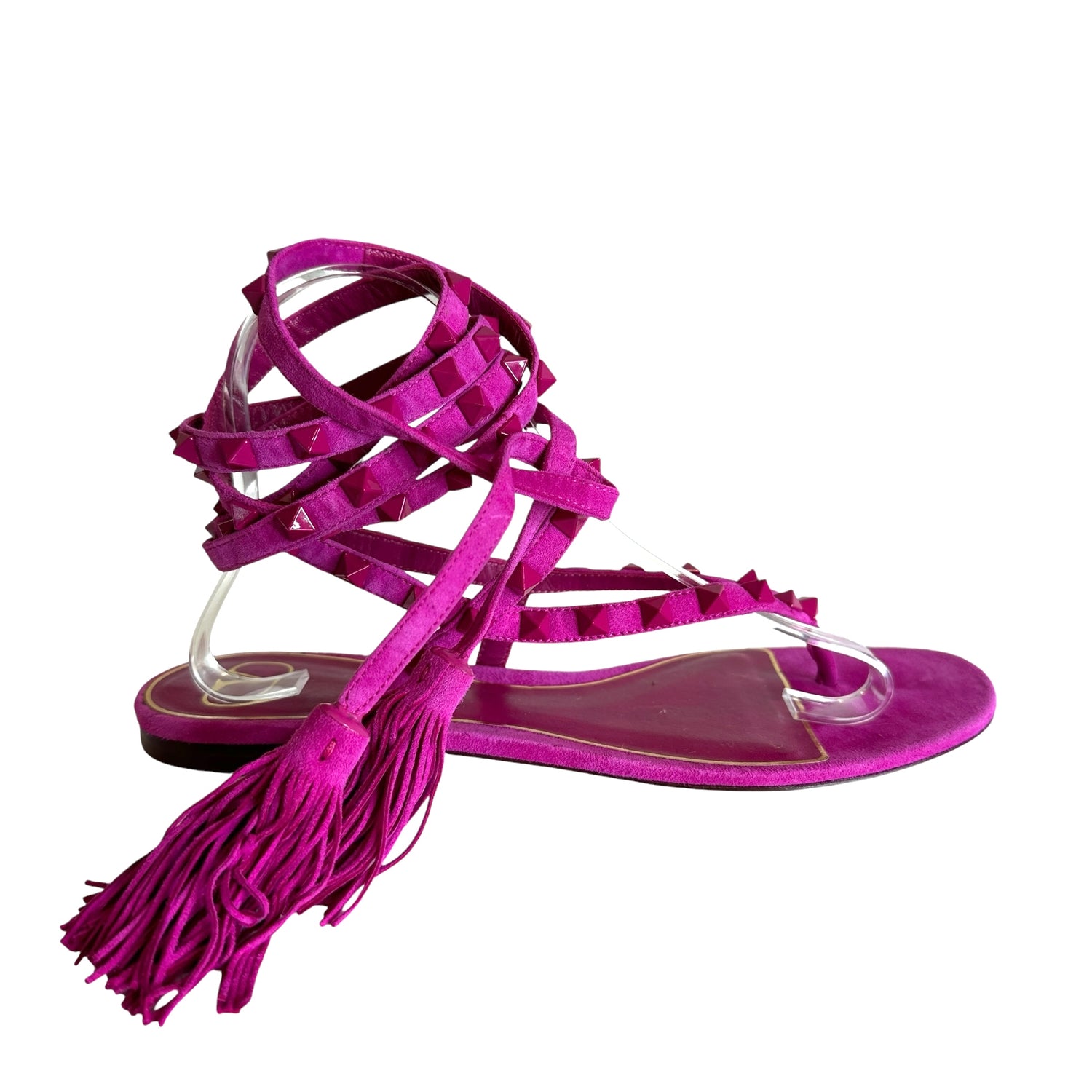 Valentino hot pink suede sandals. Tonal rockstud details. Wrap around straps which can be made into a gladiator sandal. Designer size 39.5