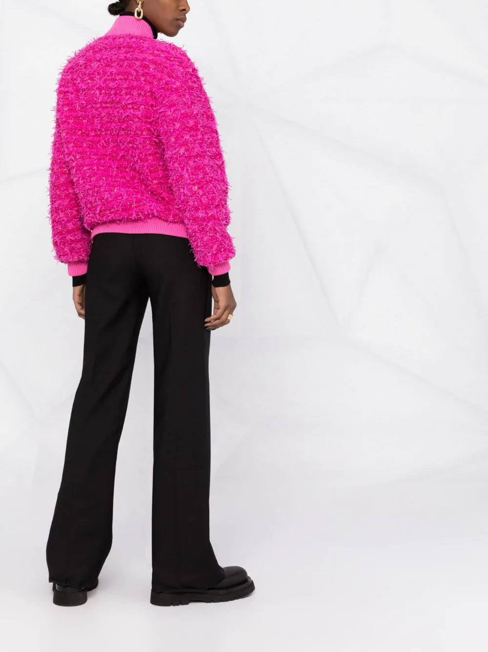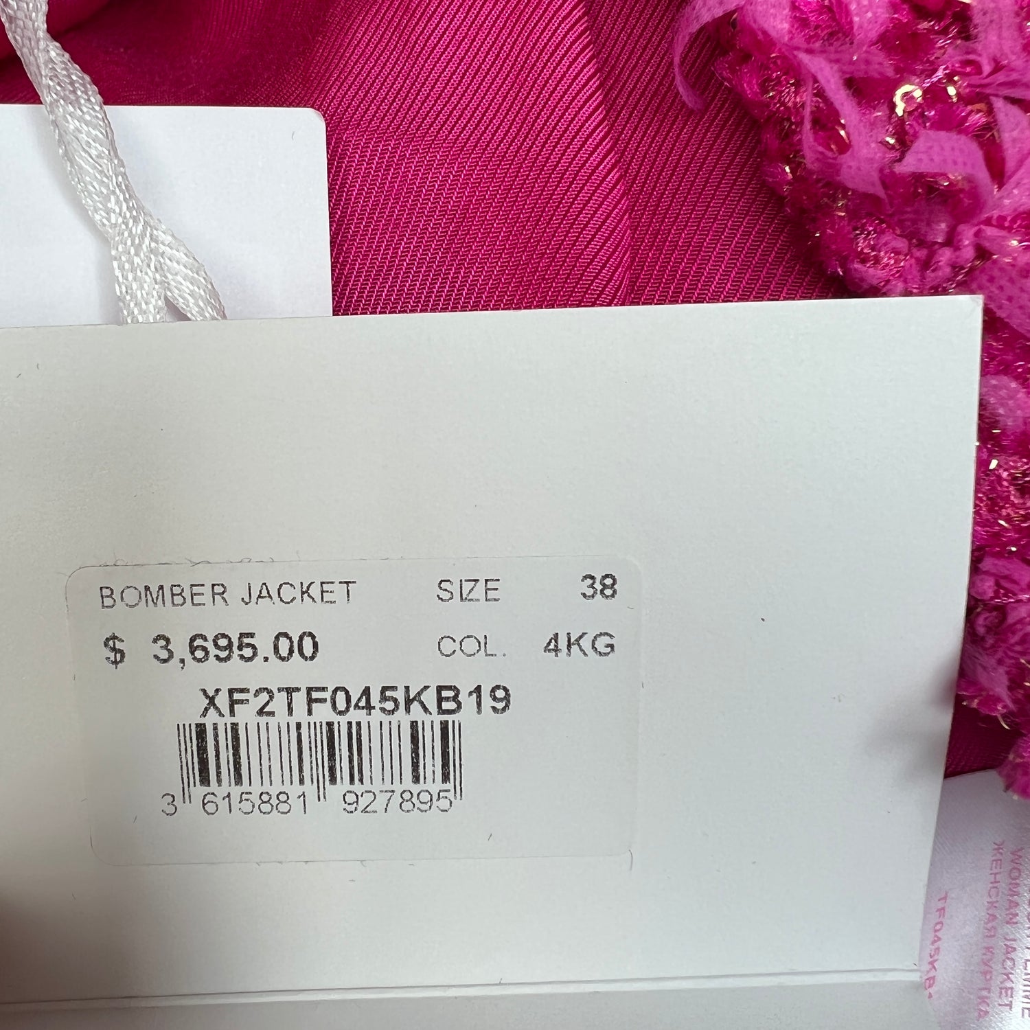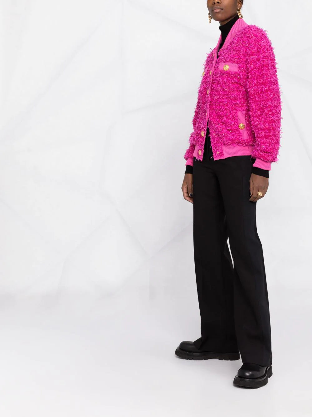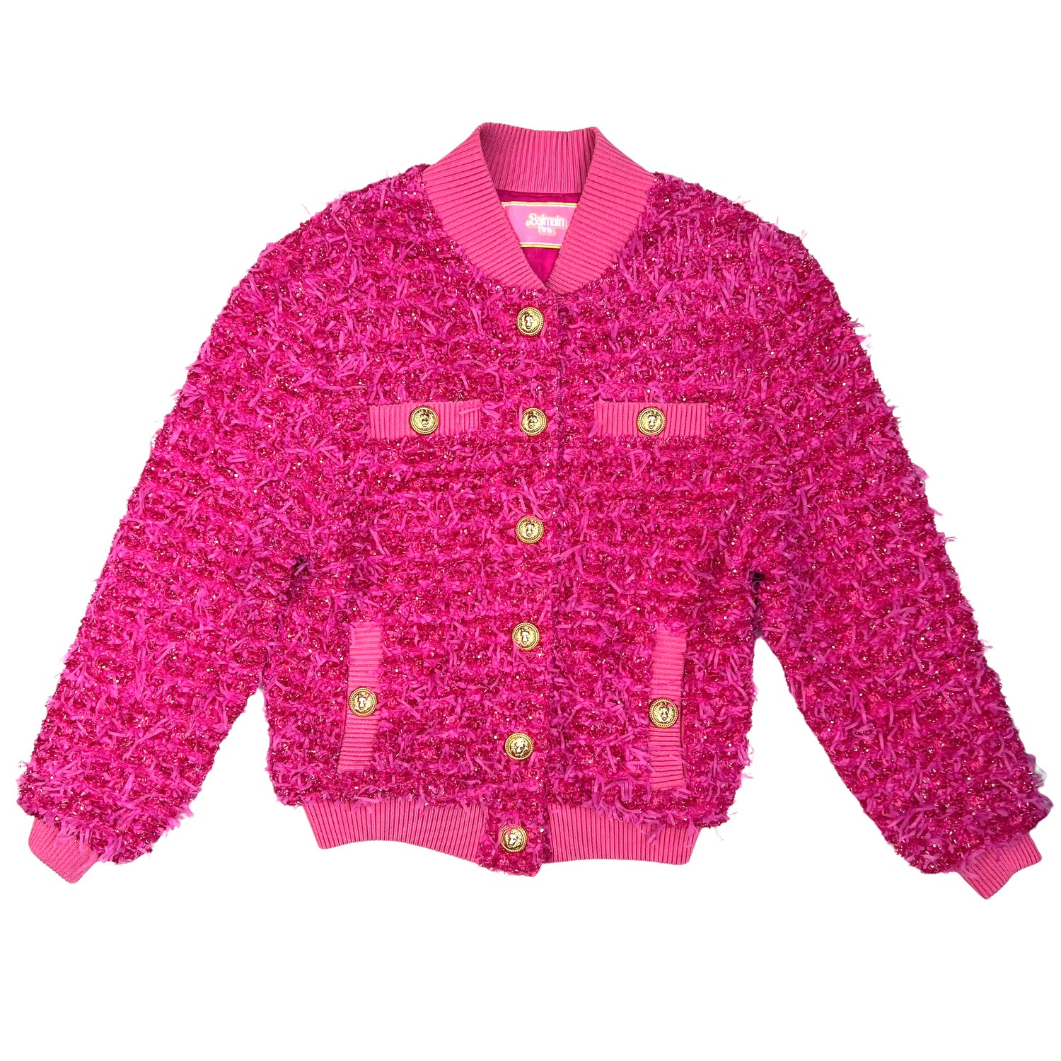 The classic bomber jacket is given an iconic makeover thanks to Balmain's collaboration with Barbie ®. Made from metallic tweed, it has ribbed-knit detailing and golden buttons. Designer size 38.