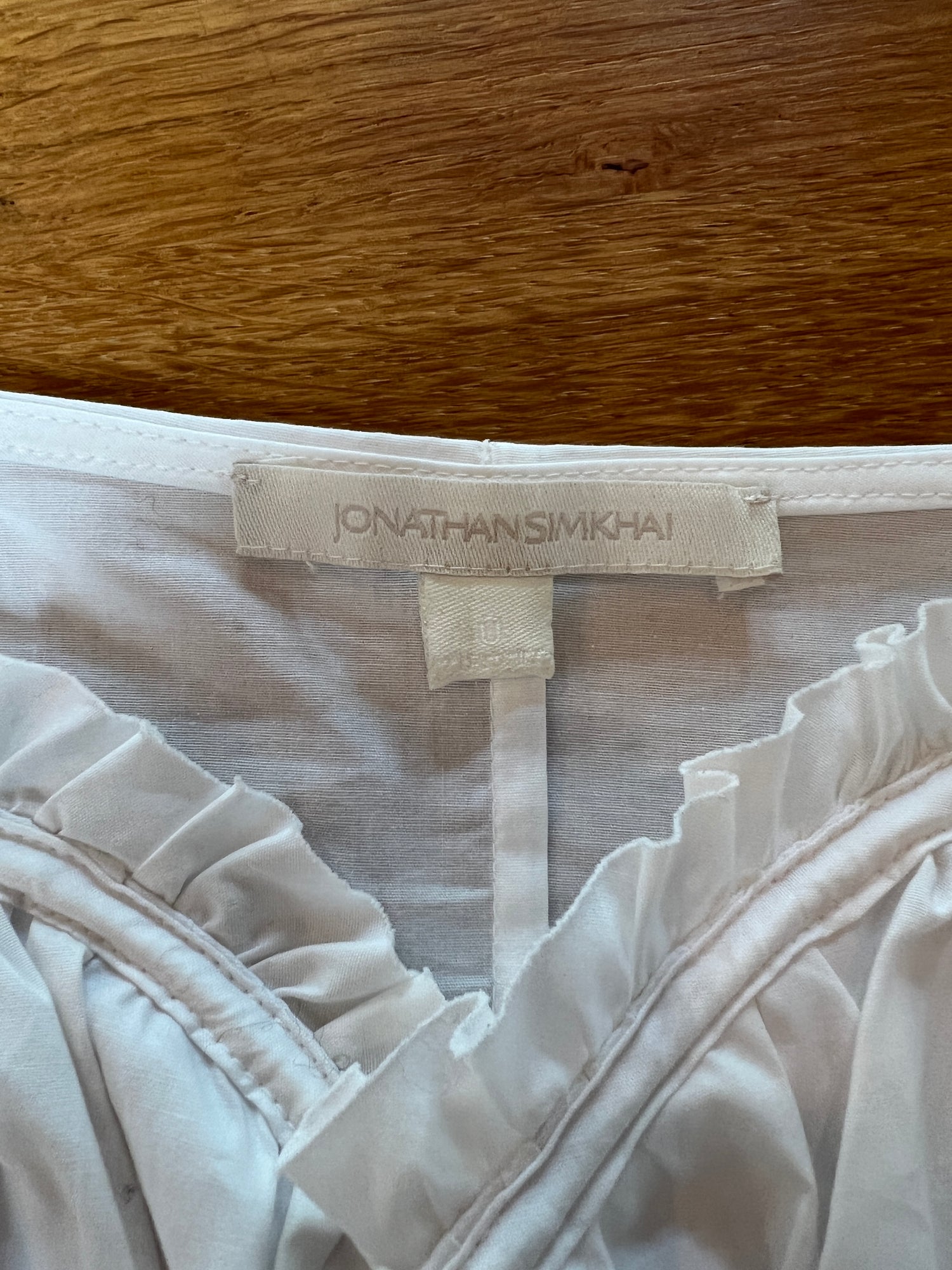 Long sleeves shirt. Buttons at wrists and in front. Very romantic and chic. Lace closure at corset.