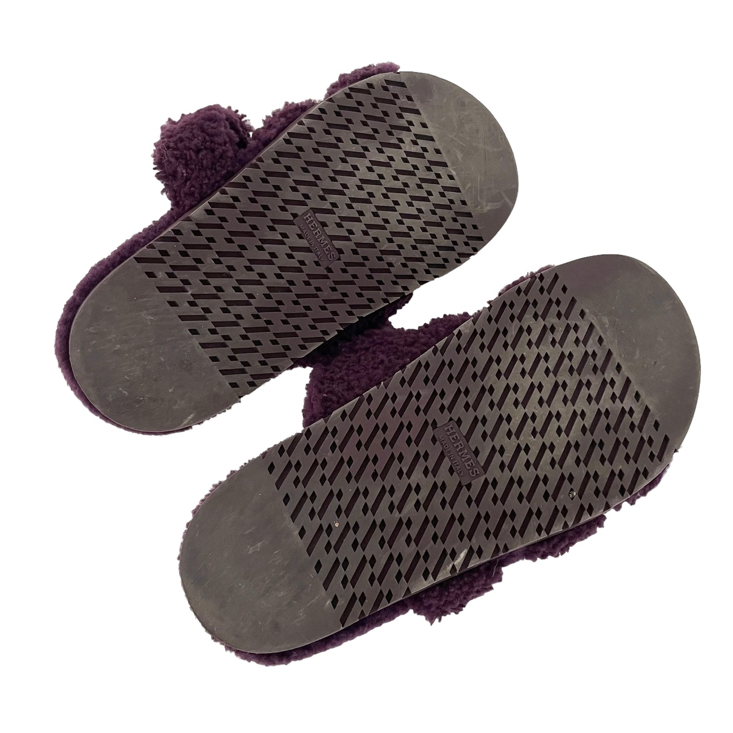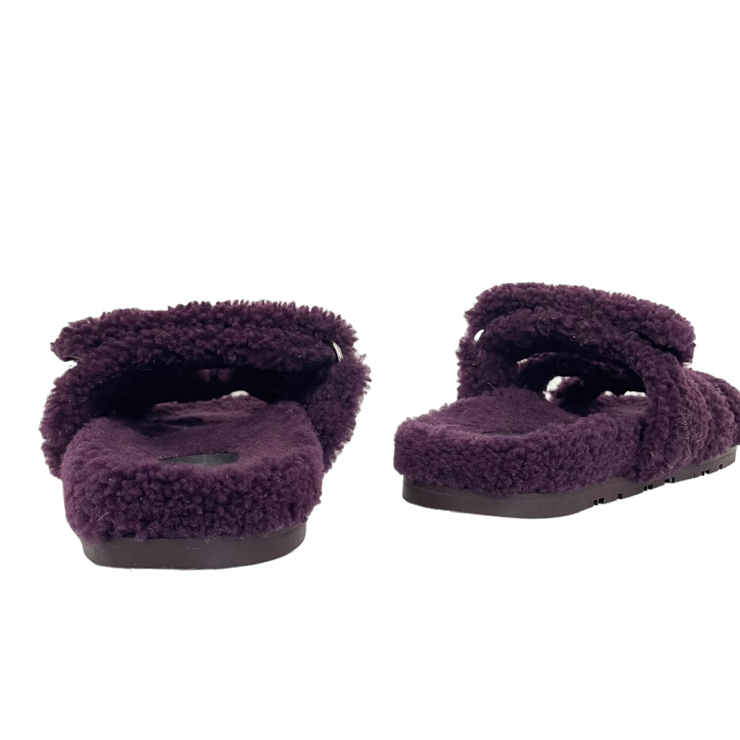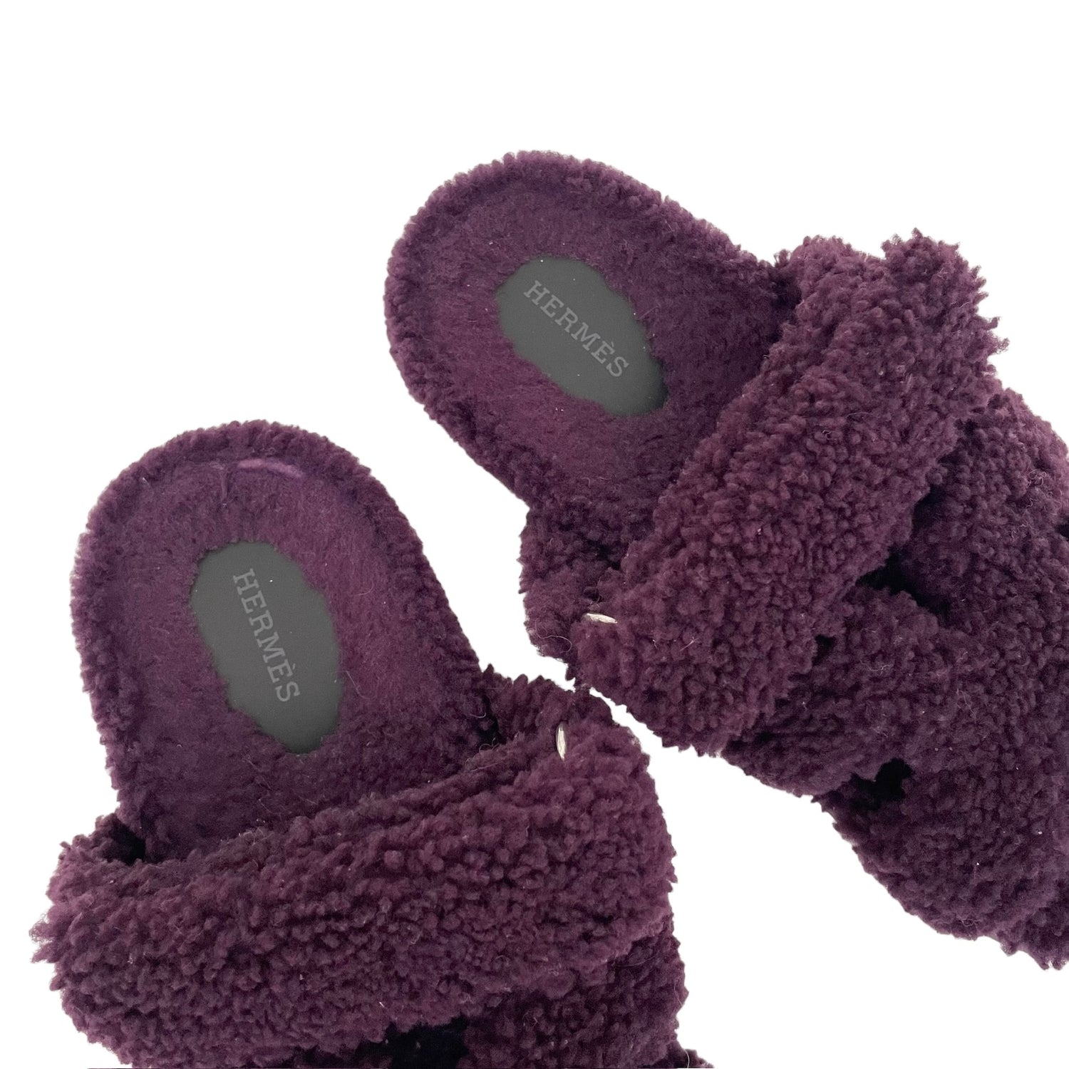 Hermes Chypre in purple shearling. Leather and shearling. Designer size 38.