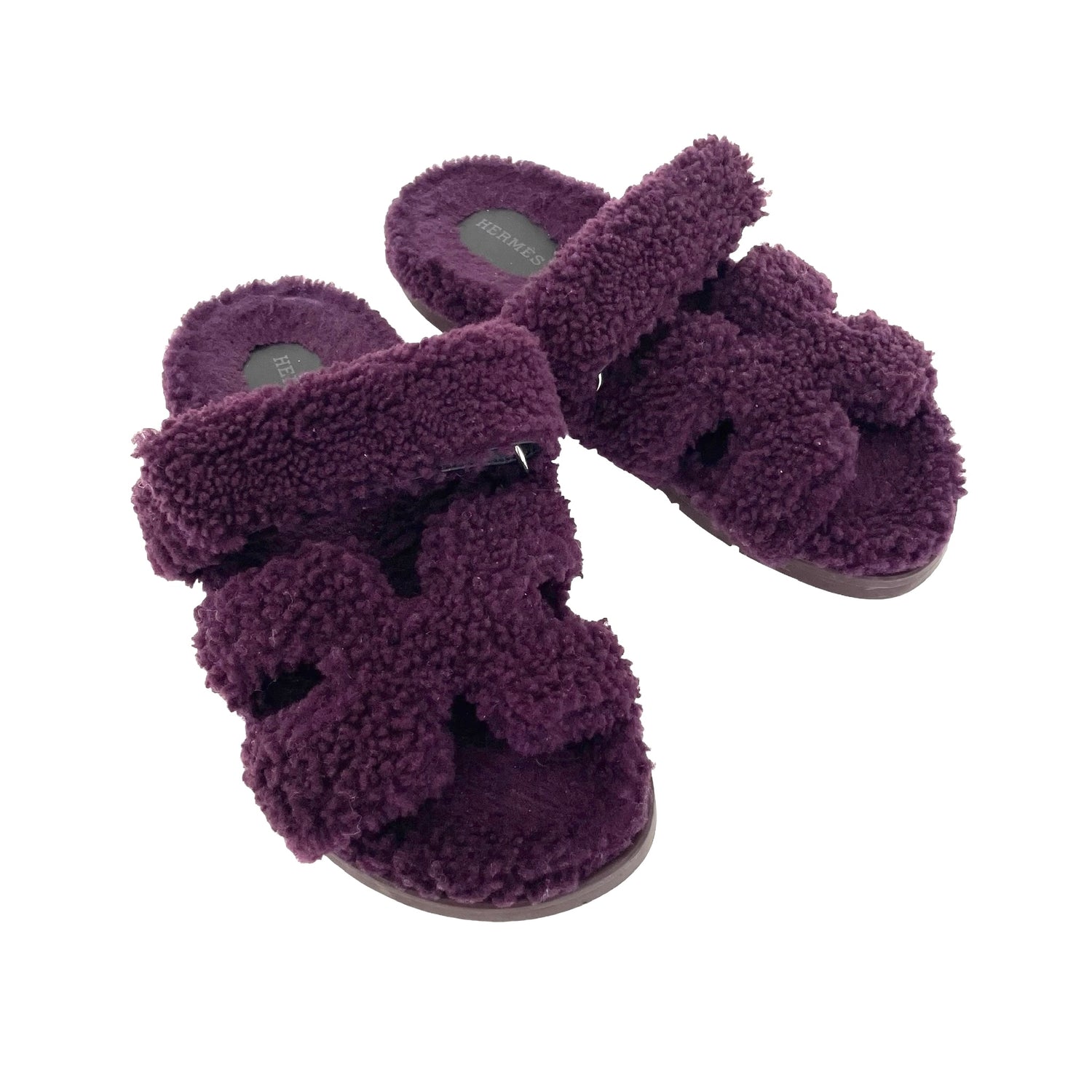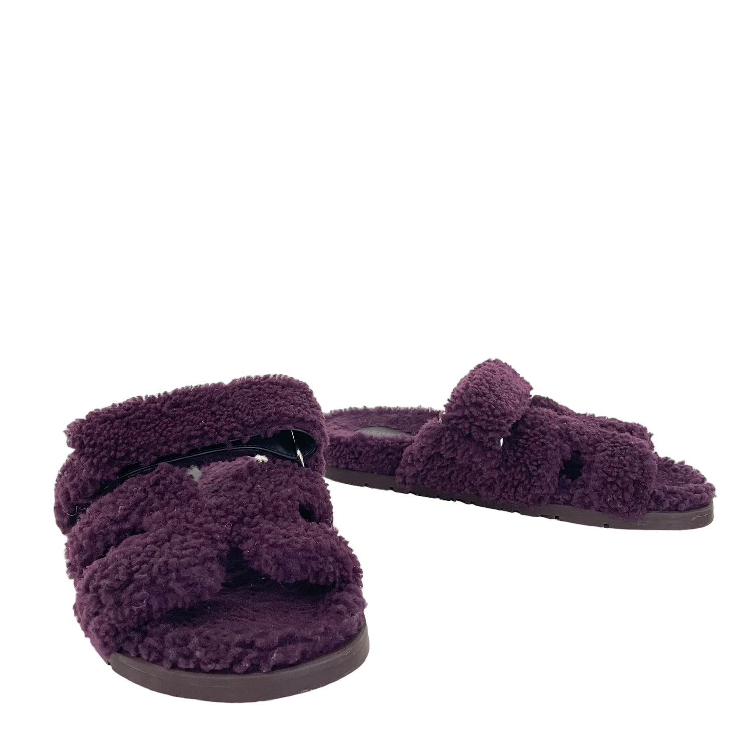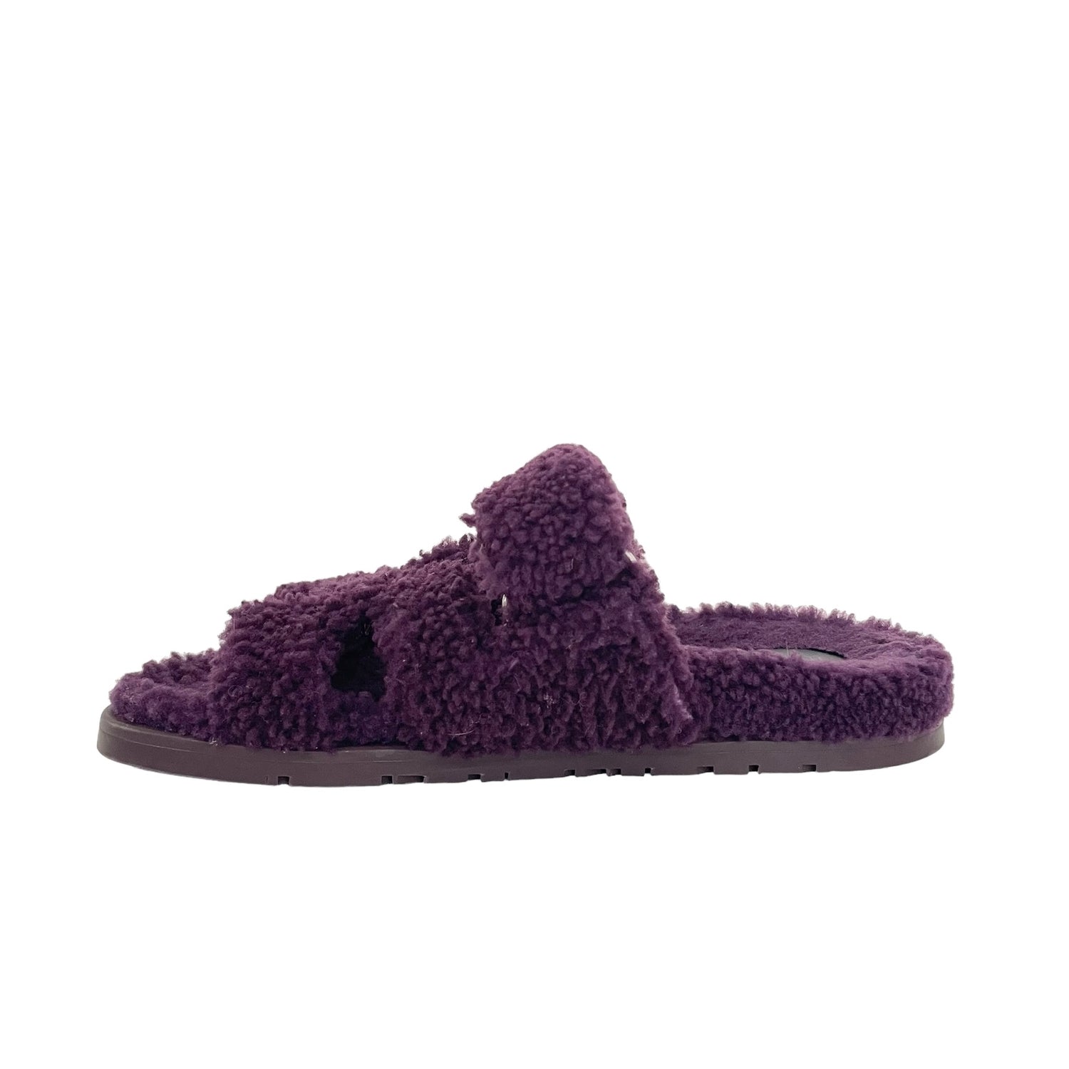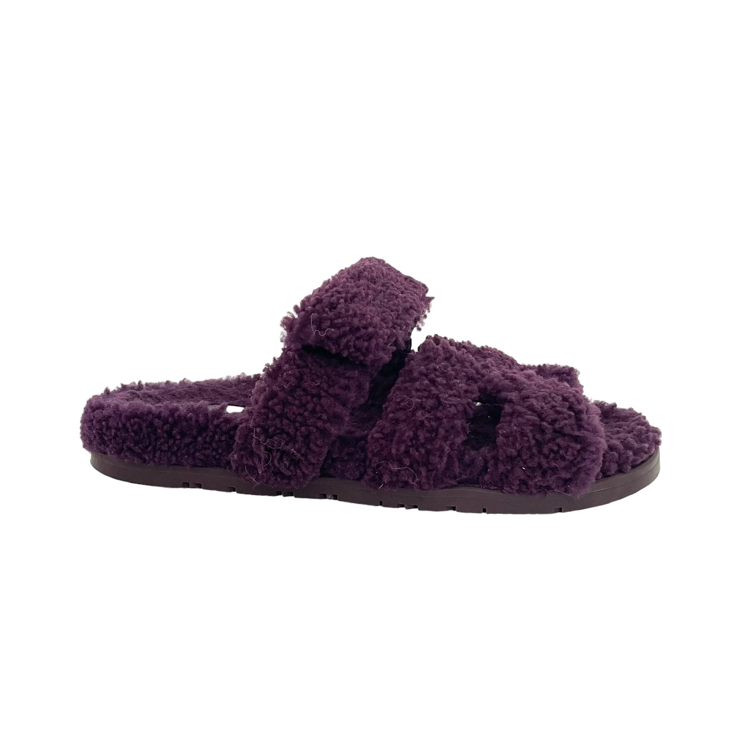 Hermes Chypre in purple shearling. Leather and shearling. Designer size 38.