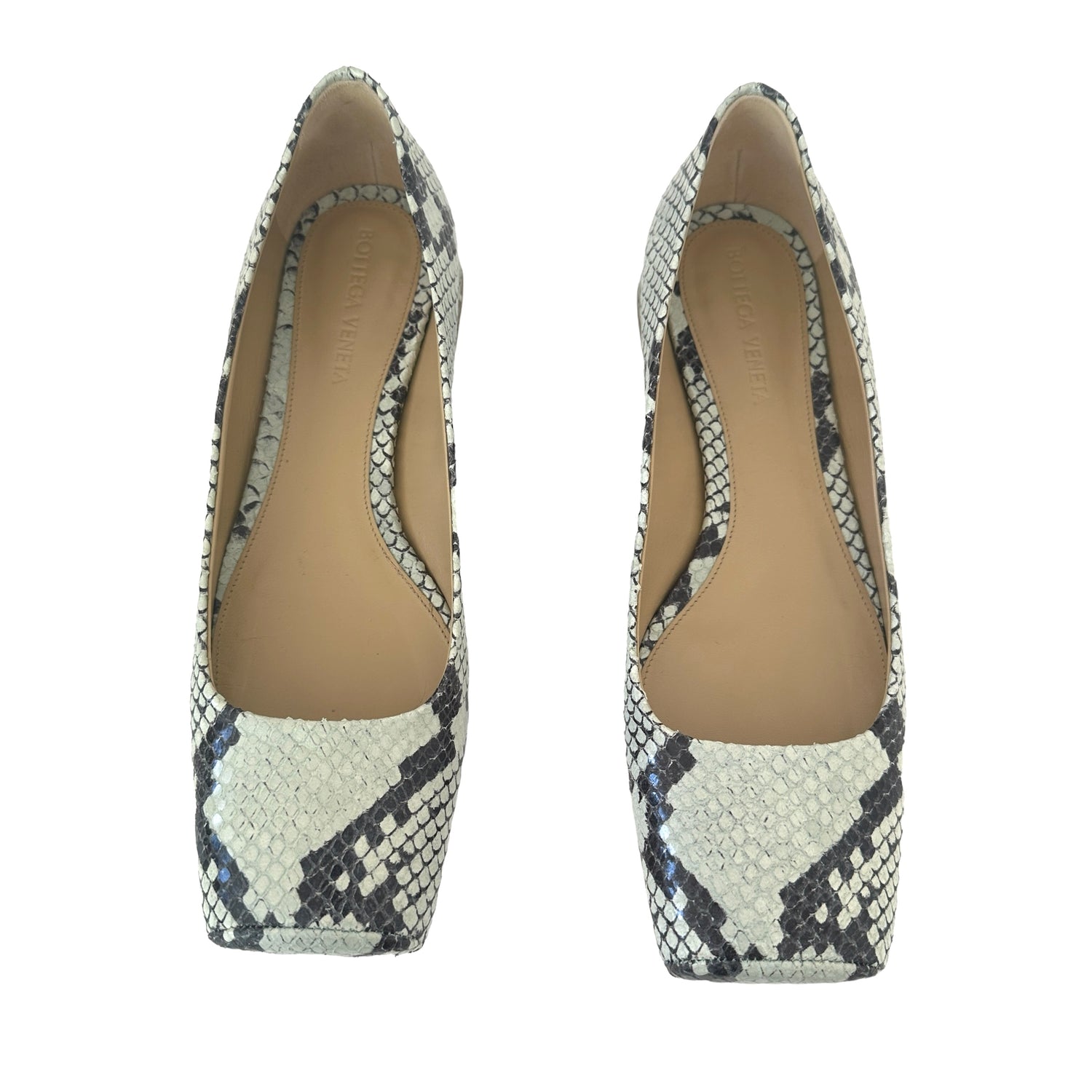 Bottega Veneta python embossed leather flats. Grey and cream shoes. Square toe. Designer size 37.