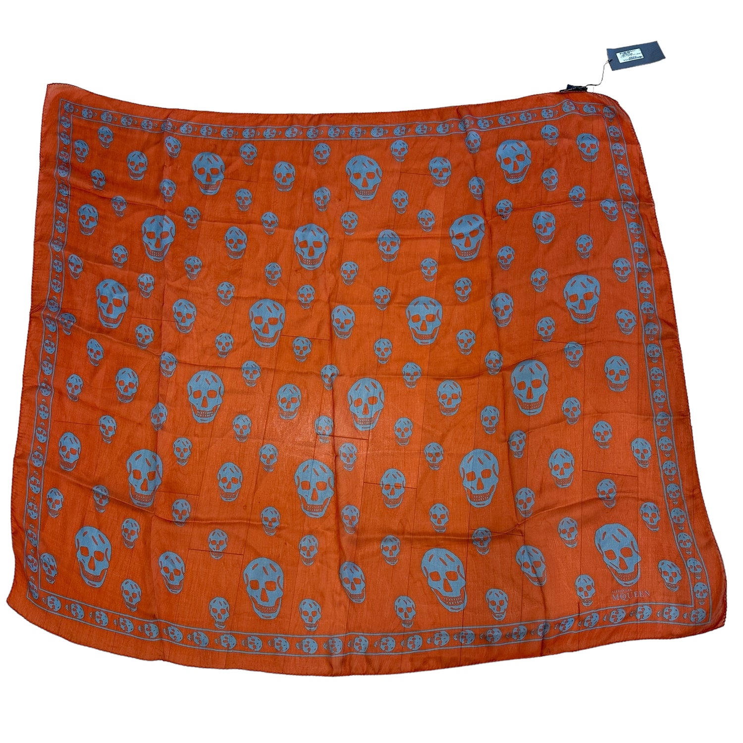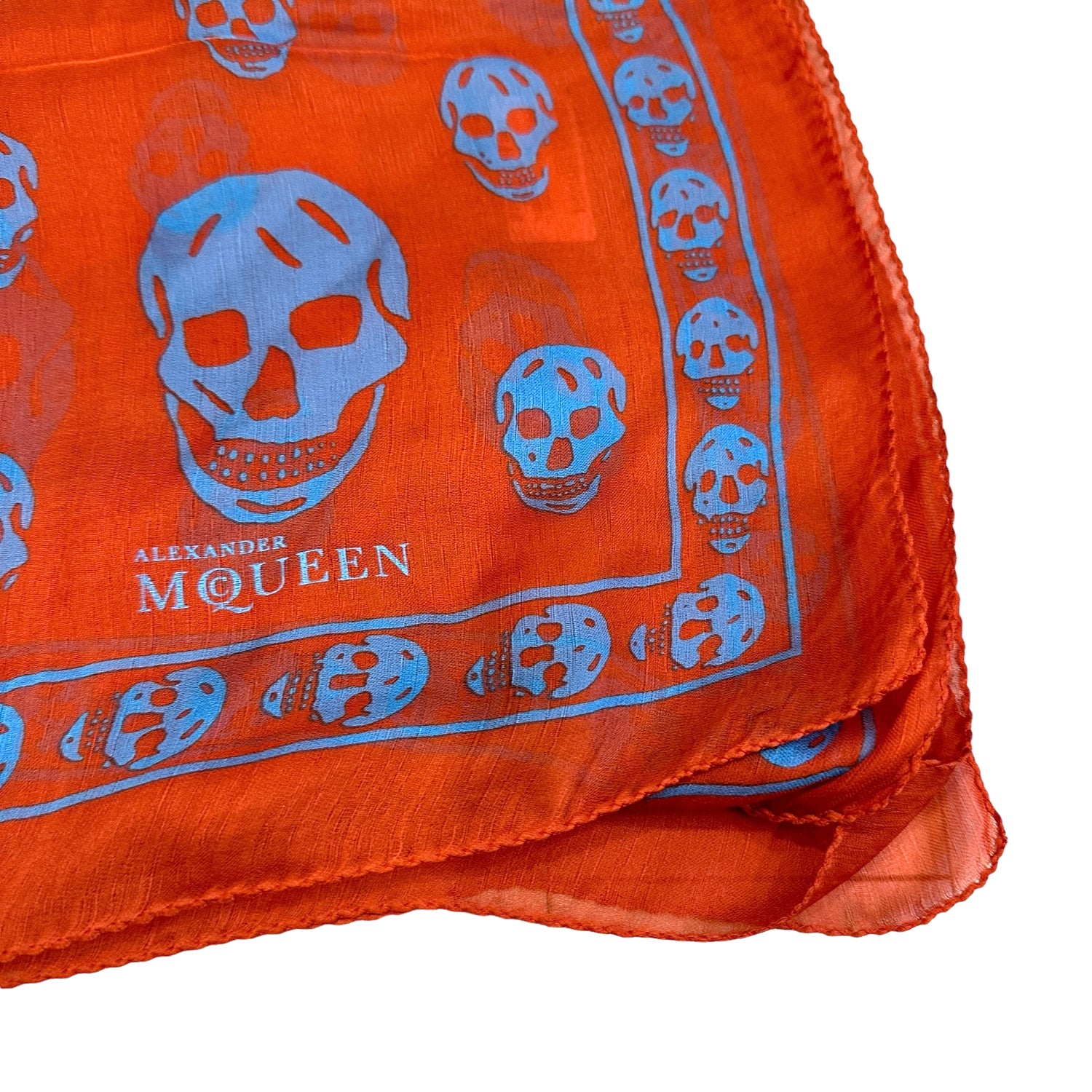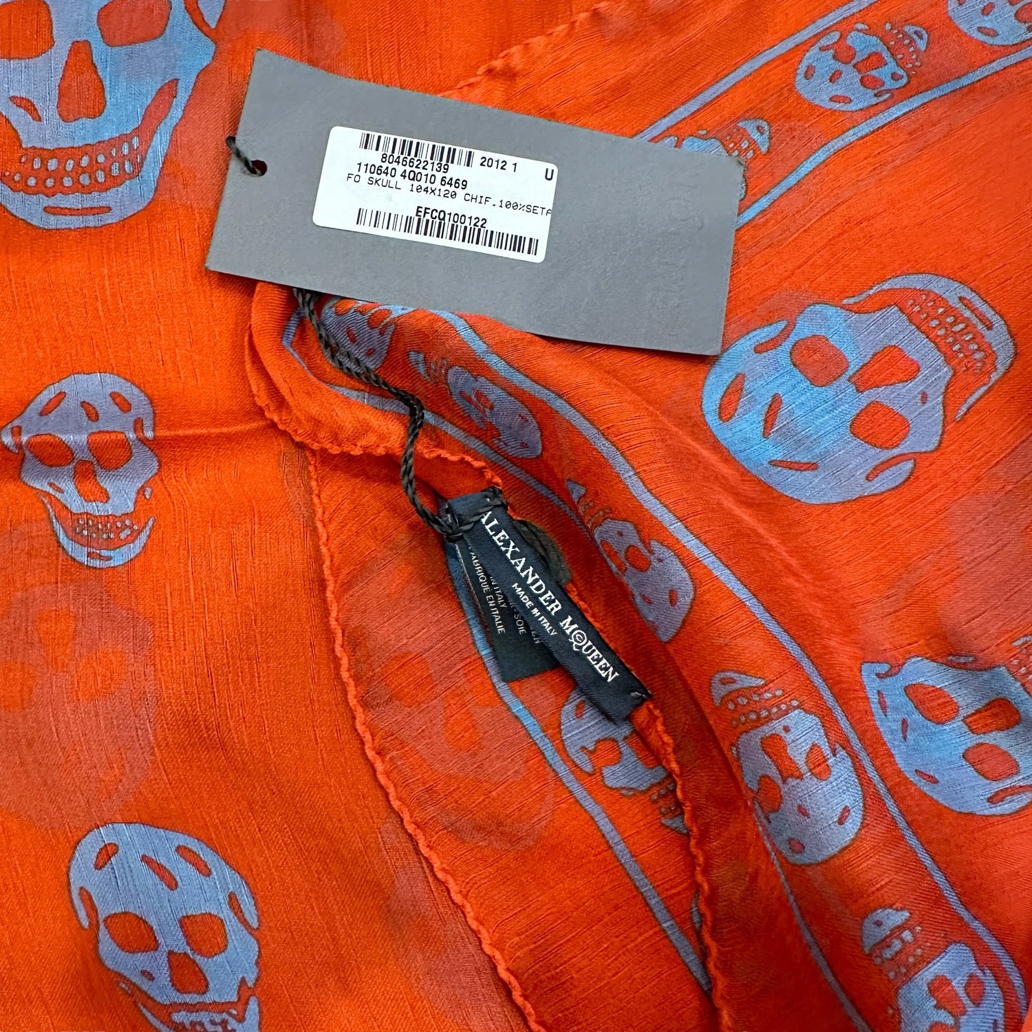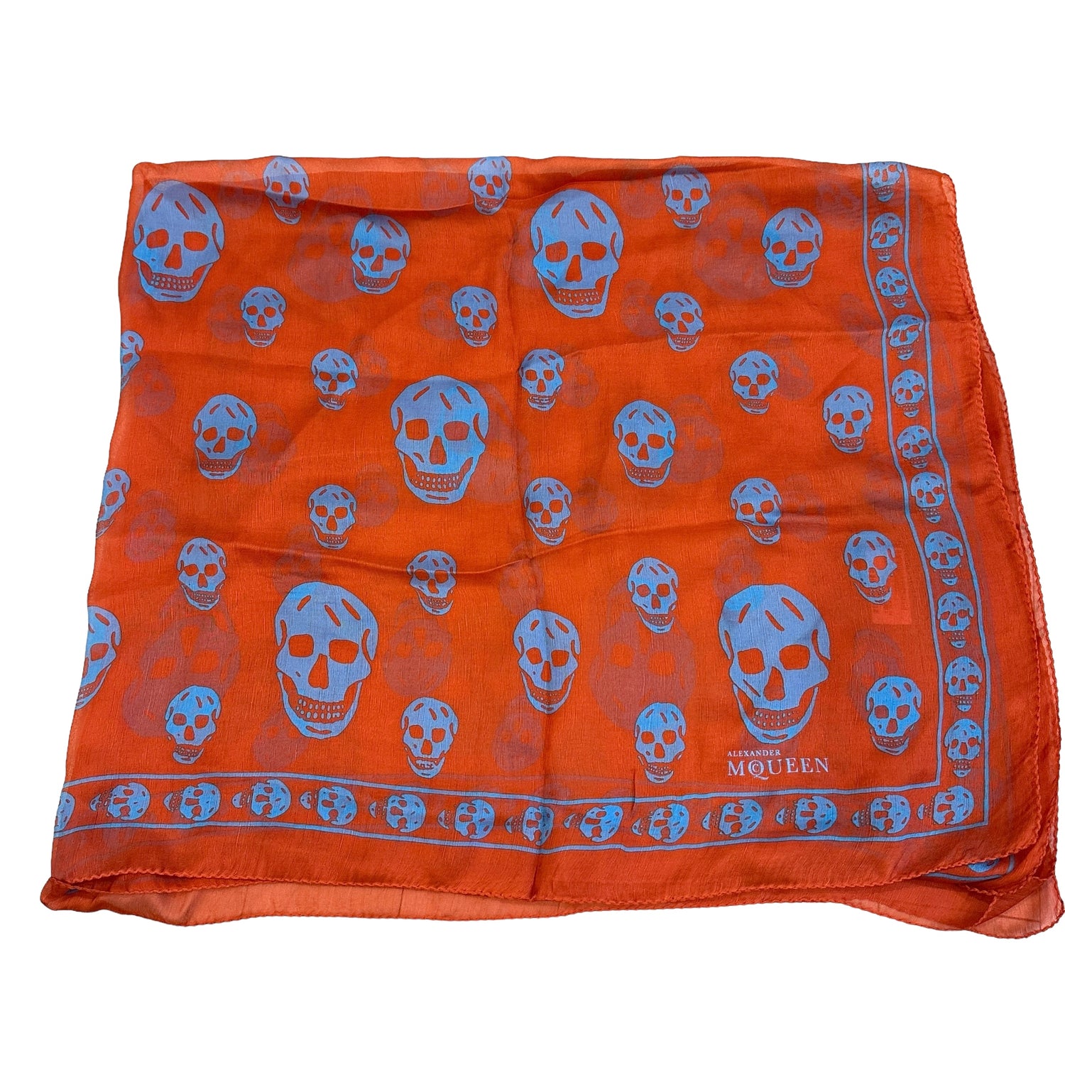 Alexander McQueen maxi silk scarf. Lightweight and see-through. Red and light blue skull print.