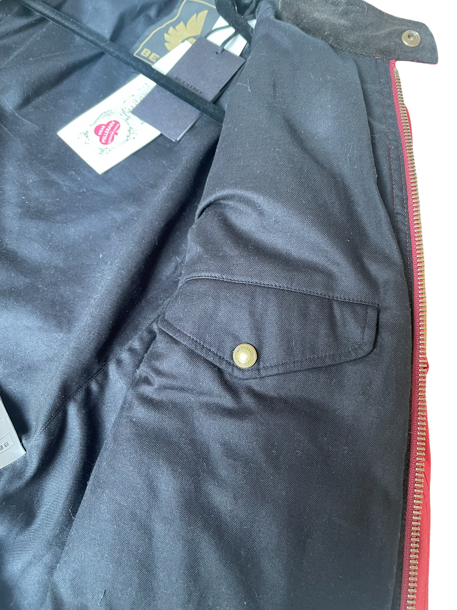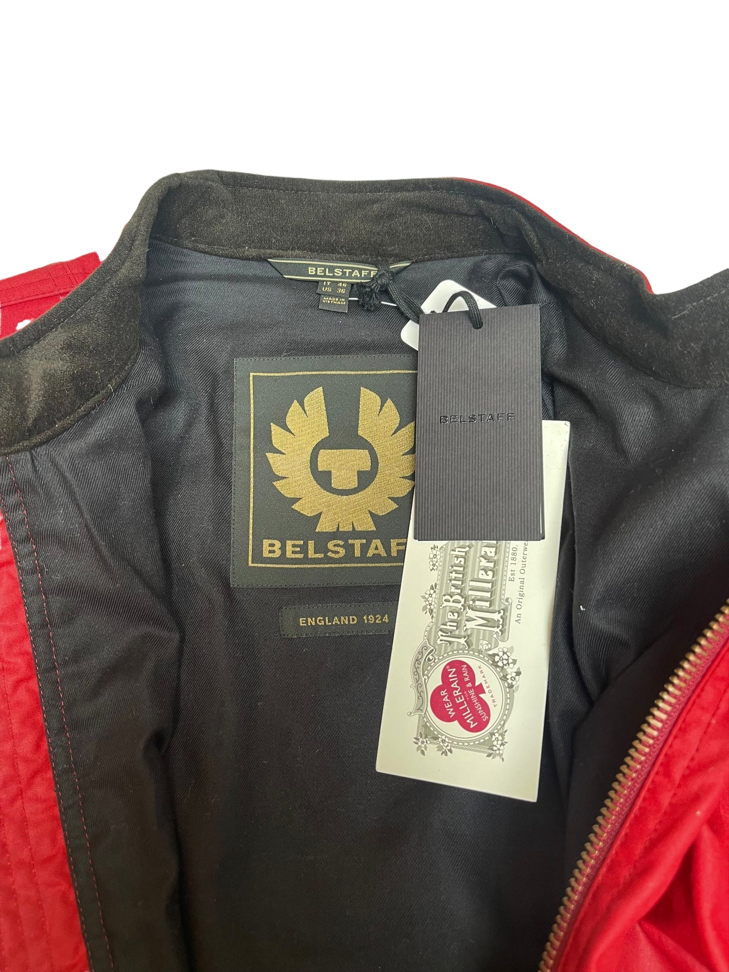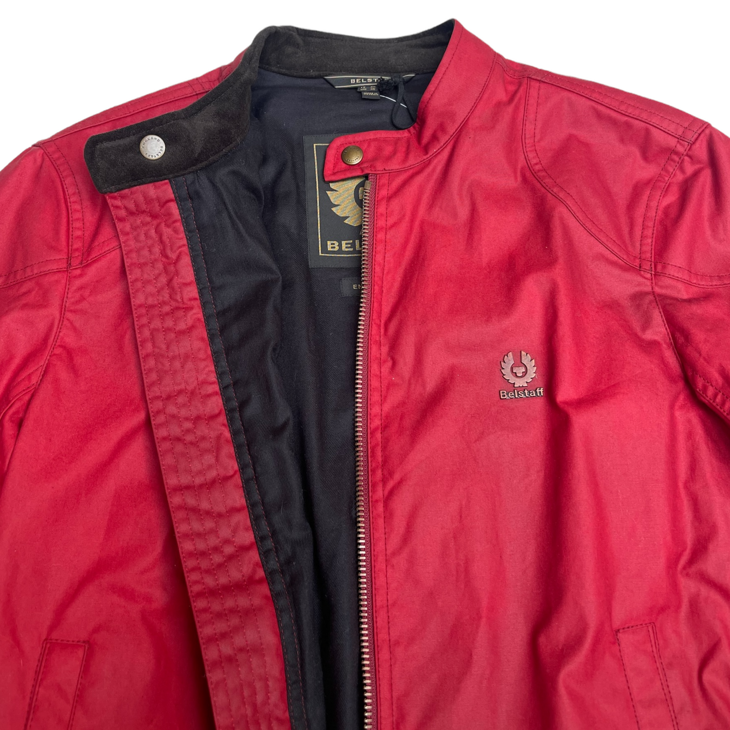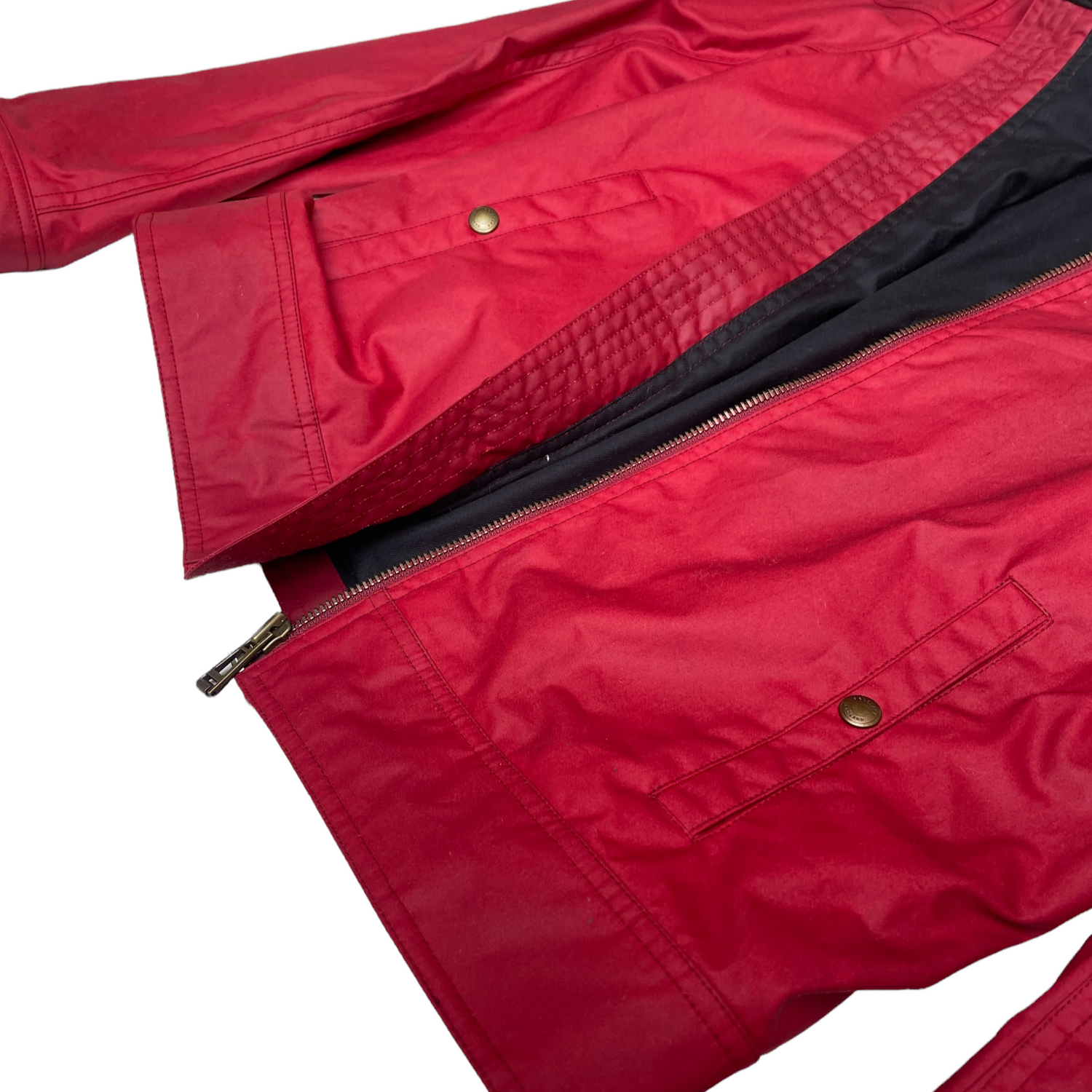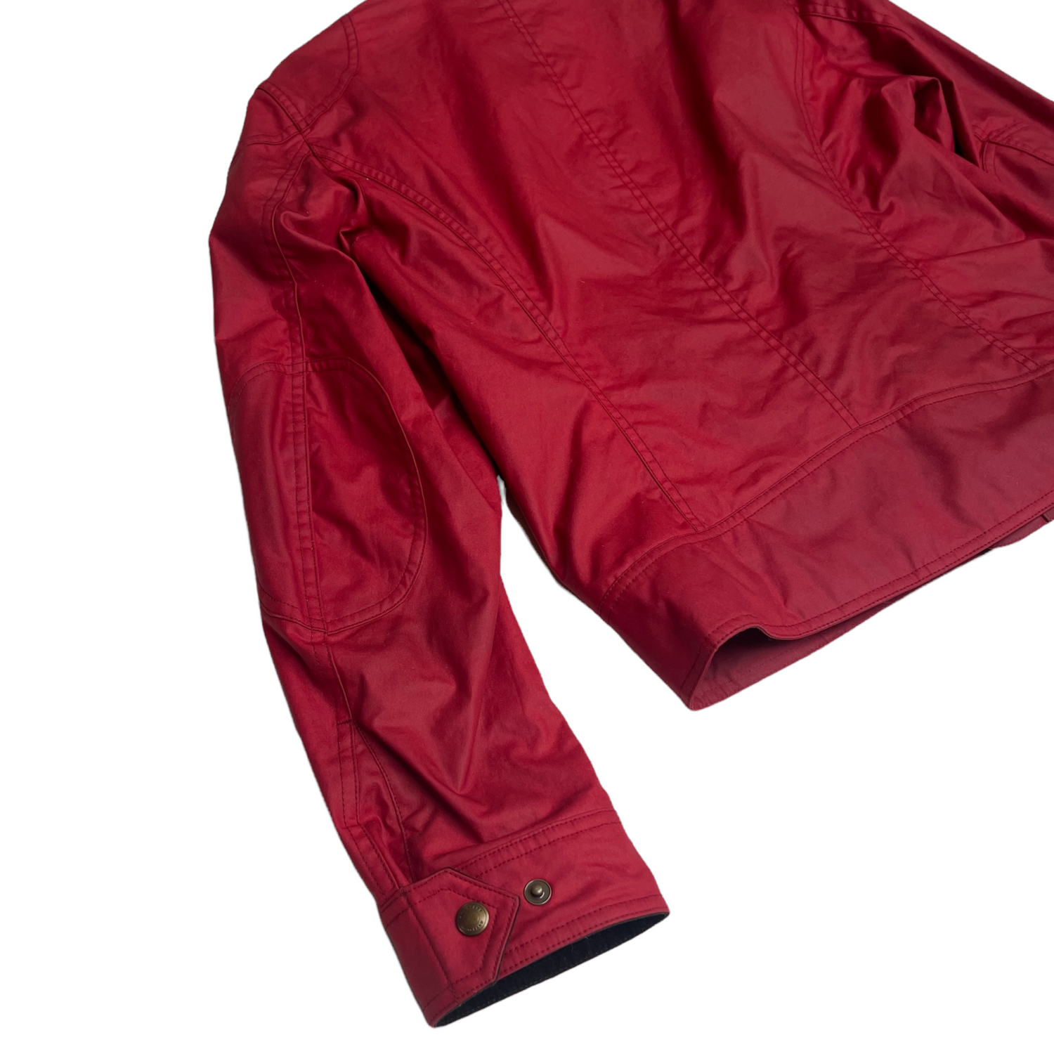 Belstaff red jacket. Waxed cotton fabric. Two buttoned side pockets. One interior pocket. Size IT 46/US 36.
