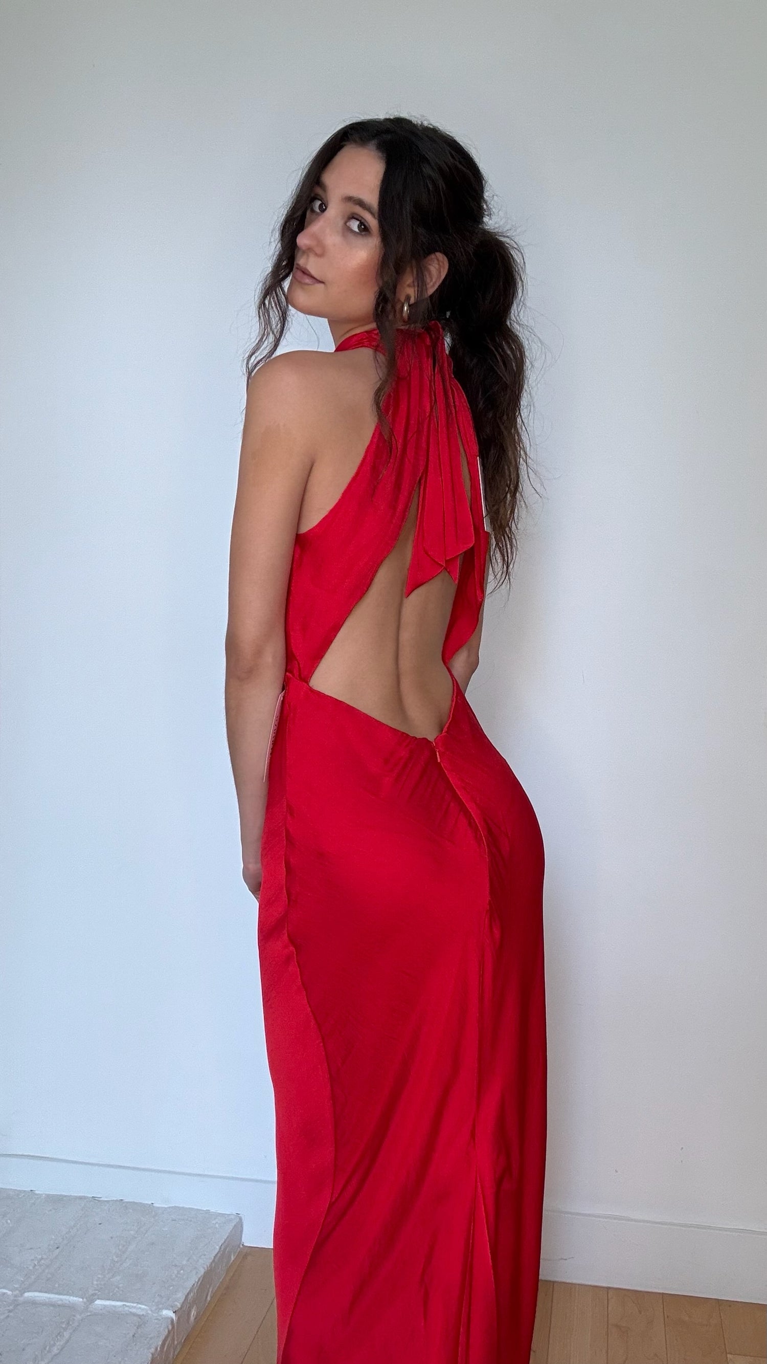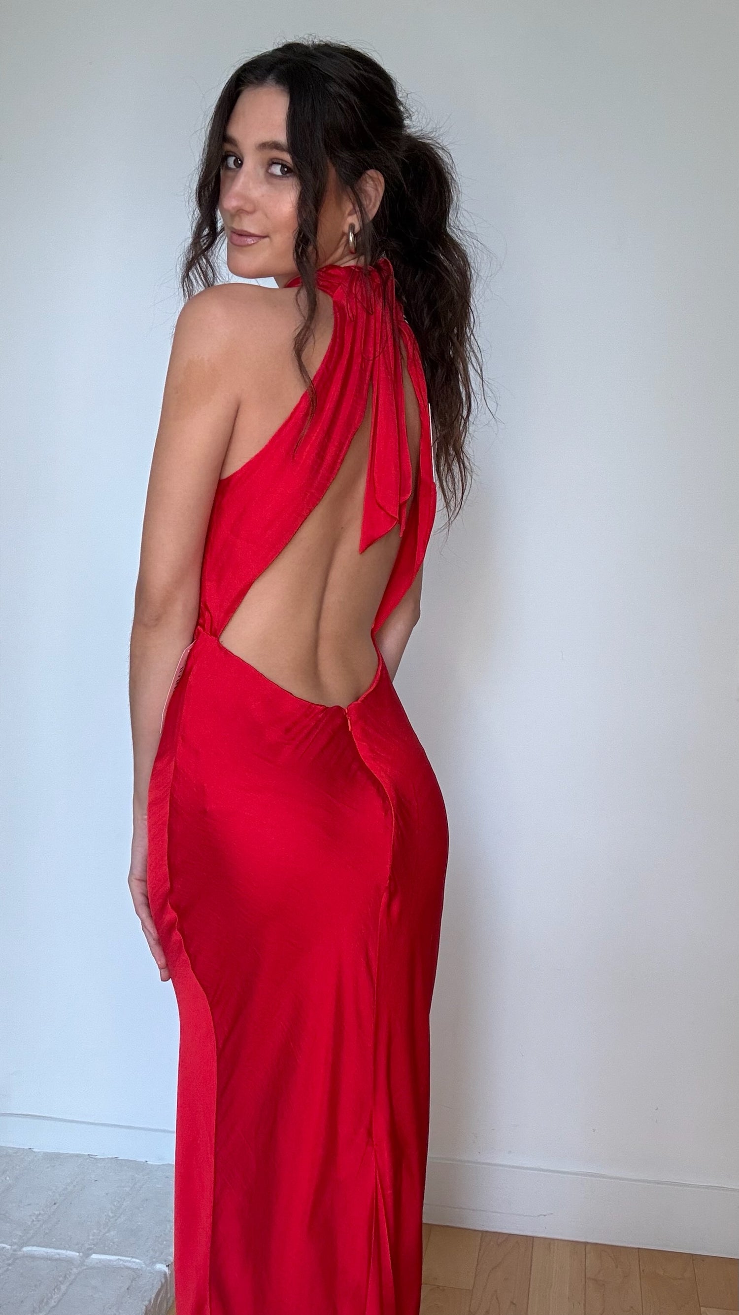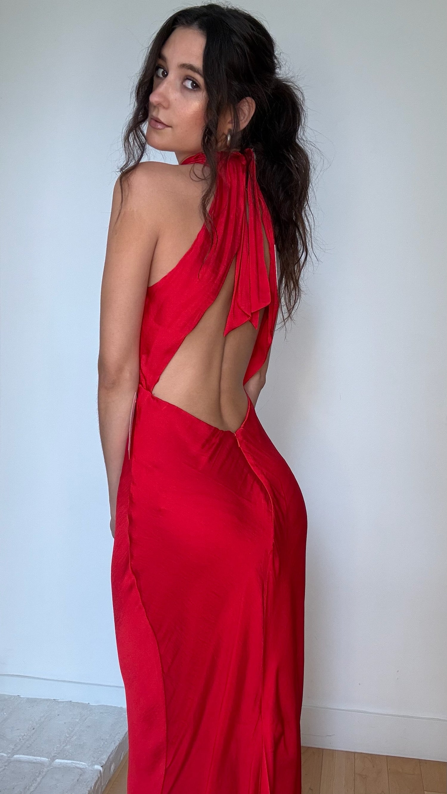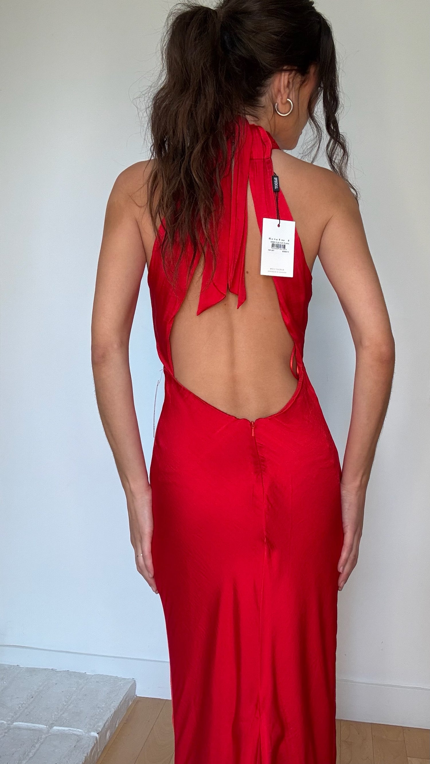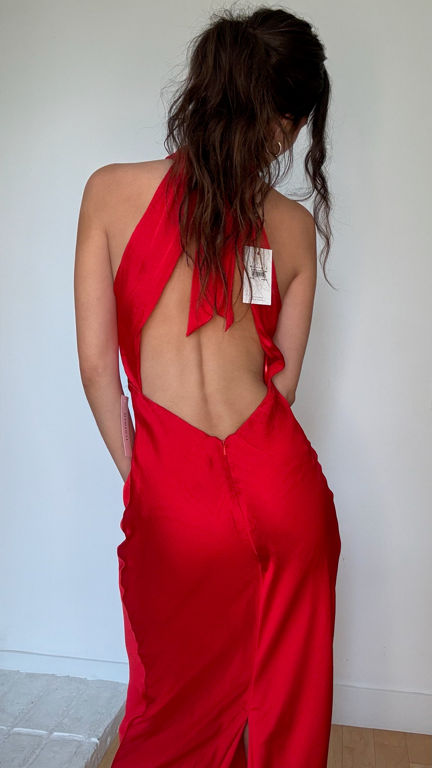 Bardot red long dress. Beautiful open back. Designer size small.