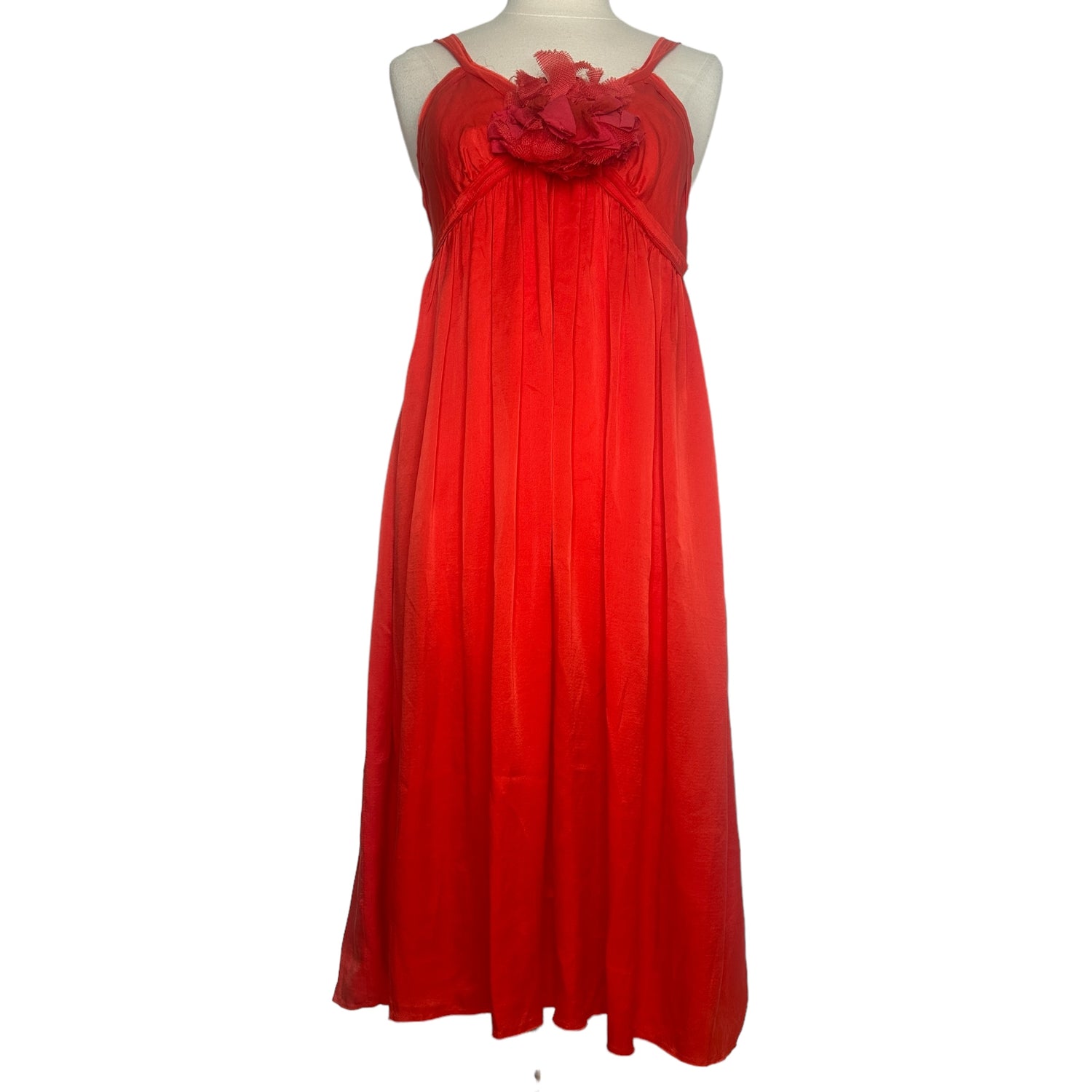 Lanvin red silk dress. Flower at front. Vibrant red silk with an incredibly soft touch. Designer size 40.