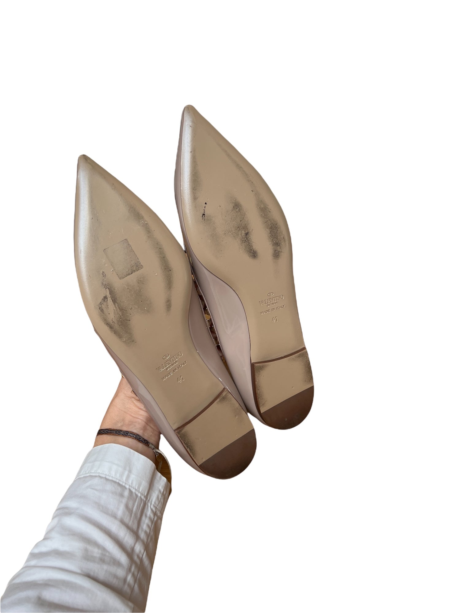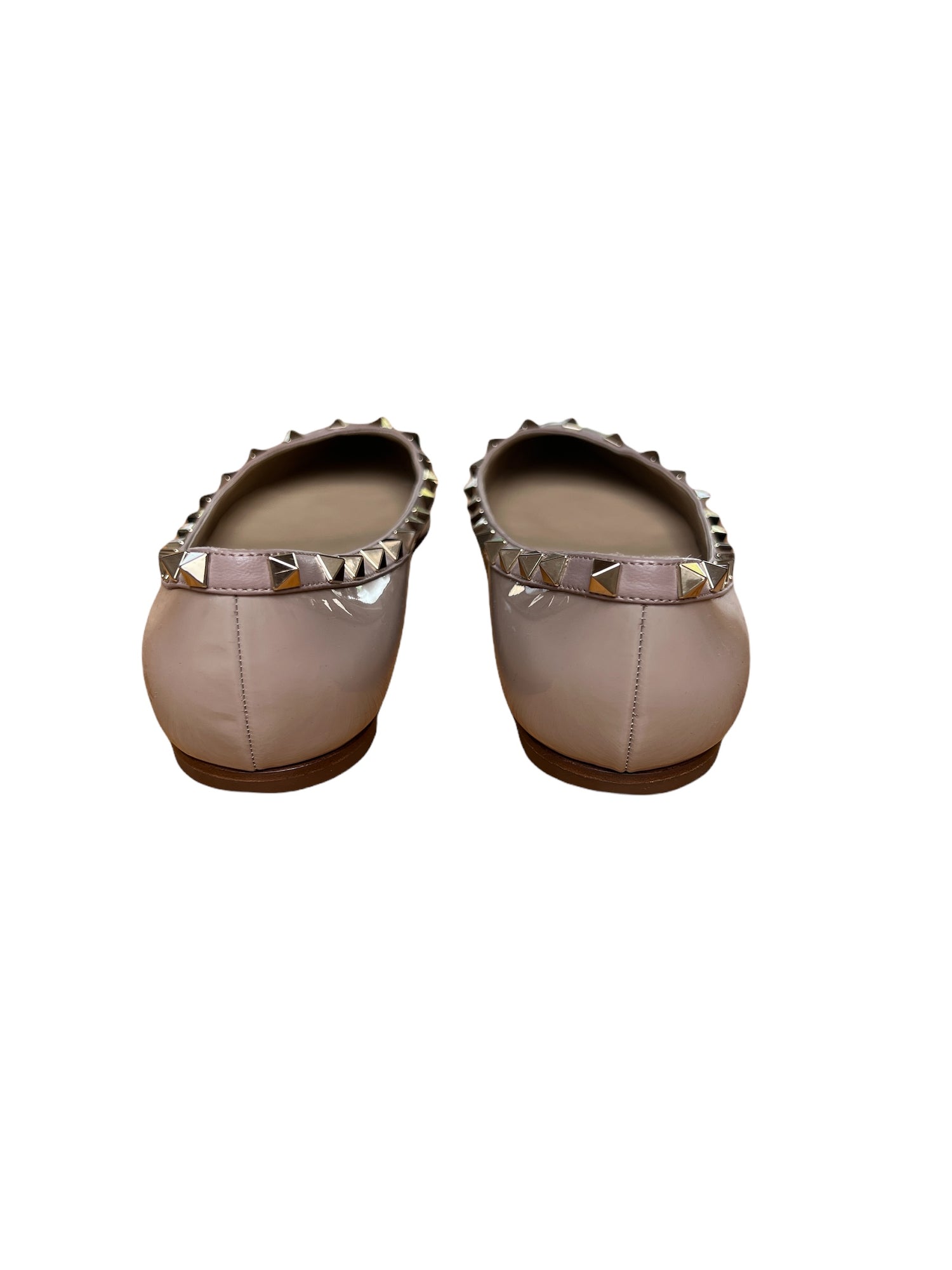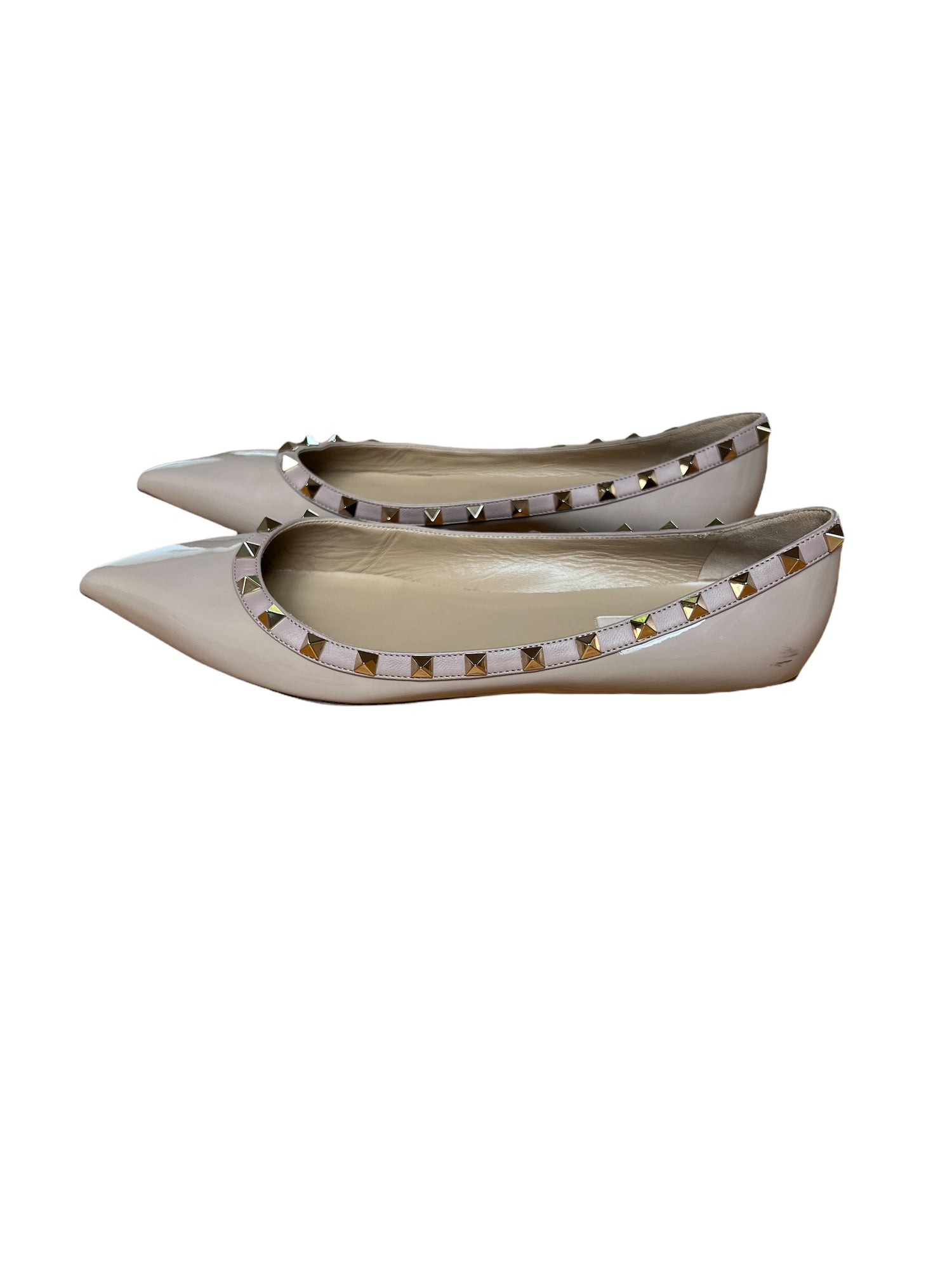 These are classic flats from Valentino. Gold tone rockstud accents in Nude Patent Leather. European size 41.