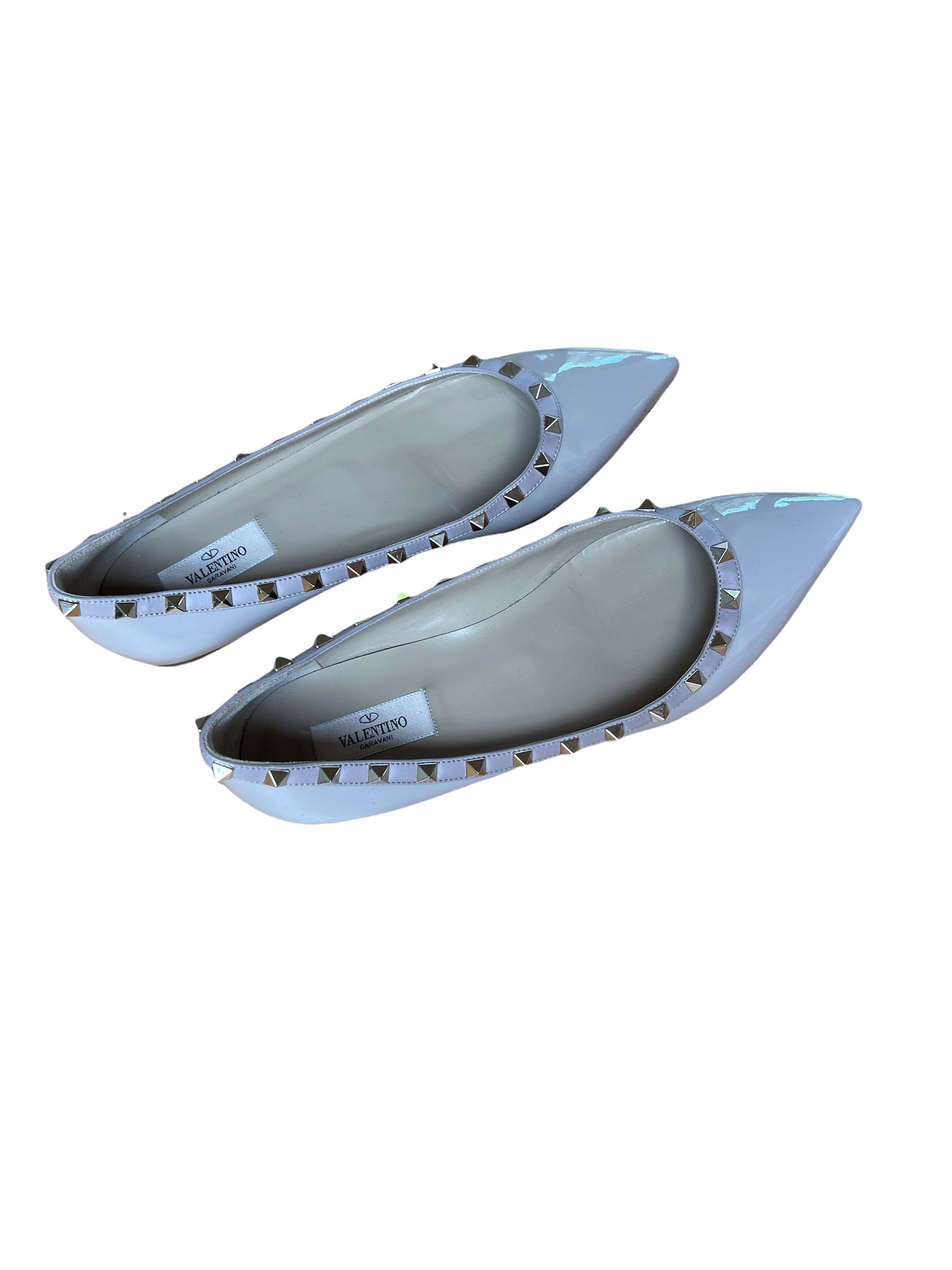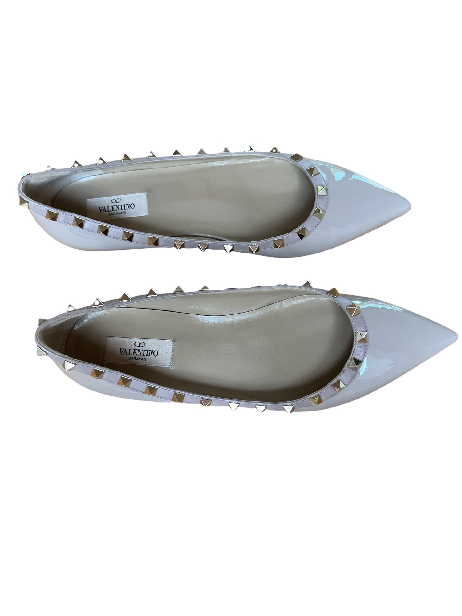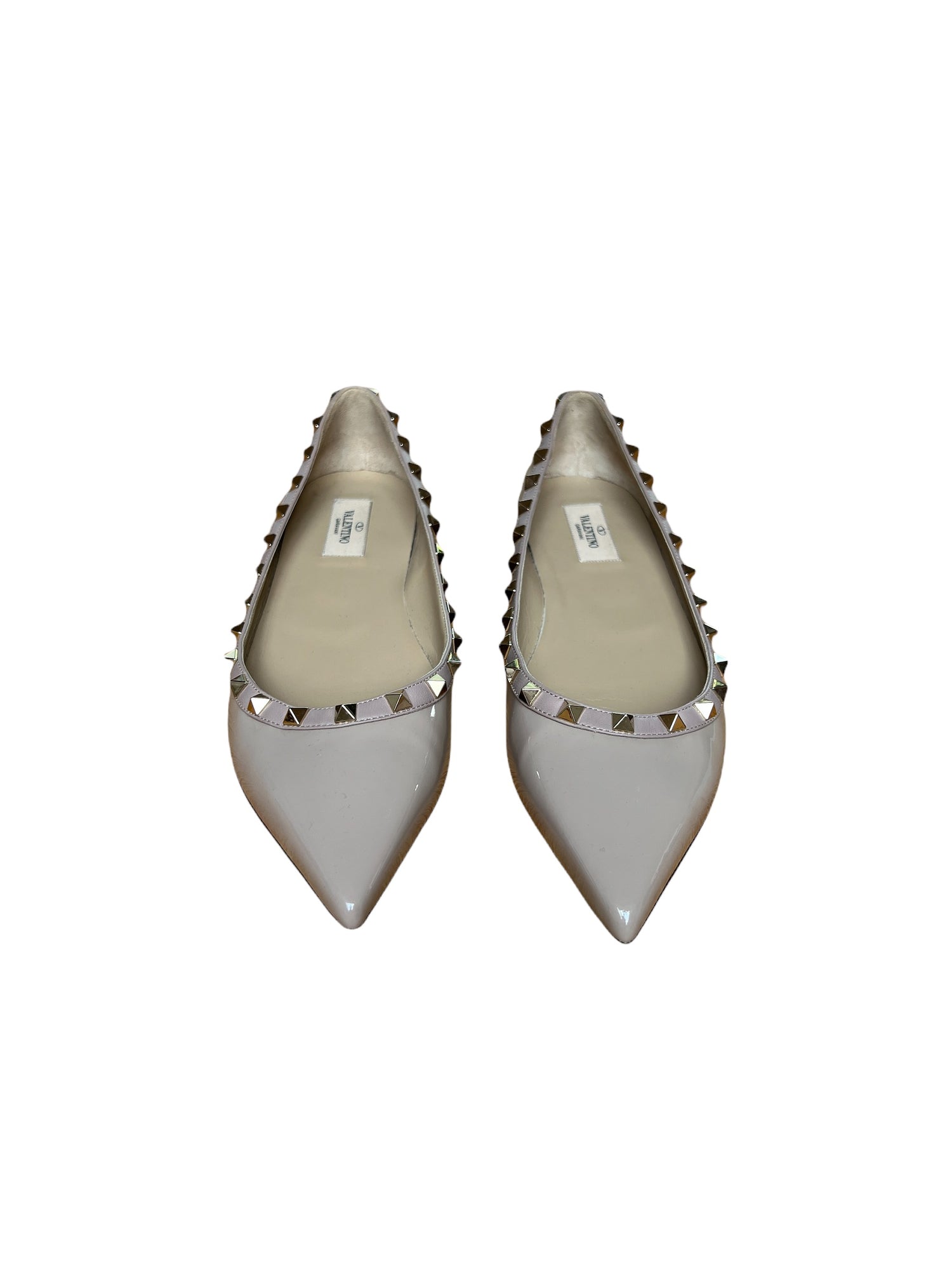 These are classic flats from Valentino. Gold tone rockstud accents in Nude Patent Leather. European size 41.