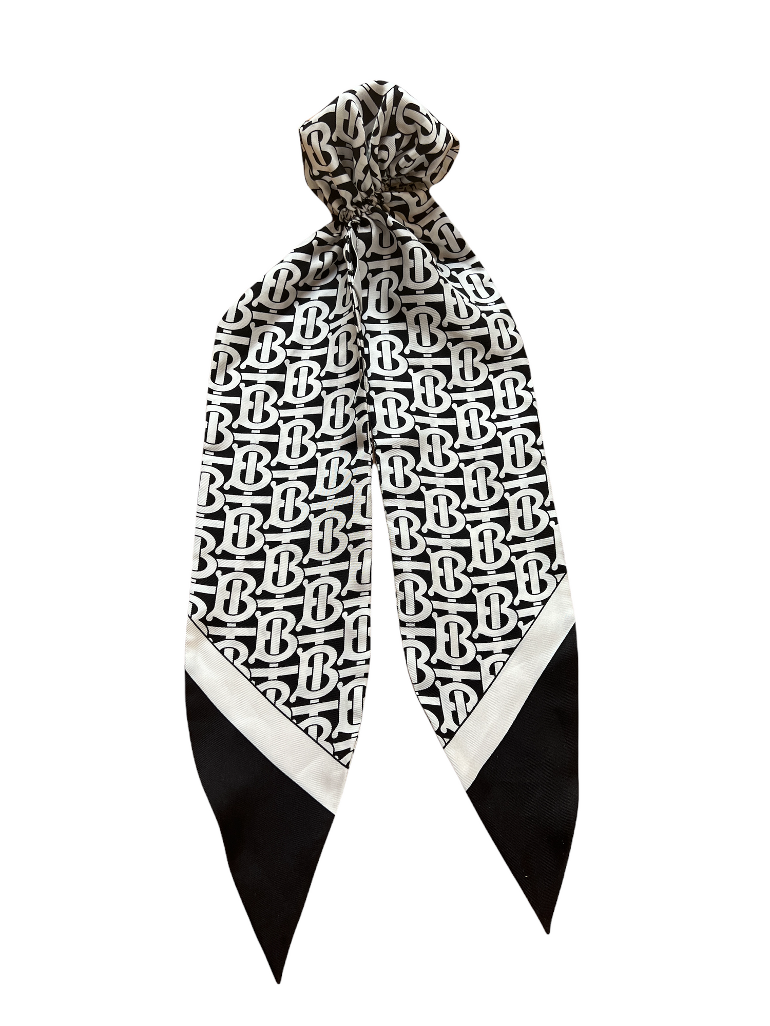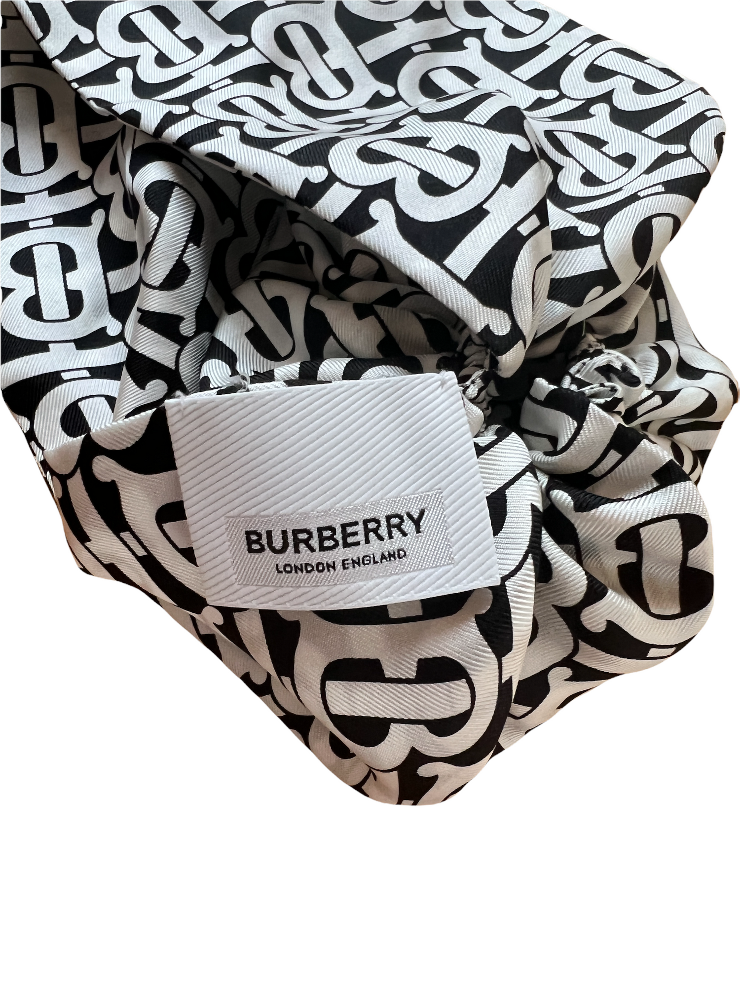Black and White Monogram print from Burberry London House. This piece is meant to be worn on a bun as shown on the photo with model.