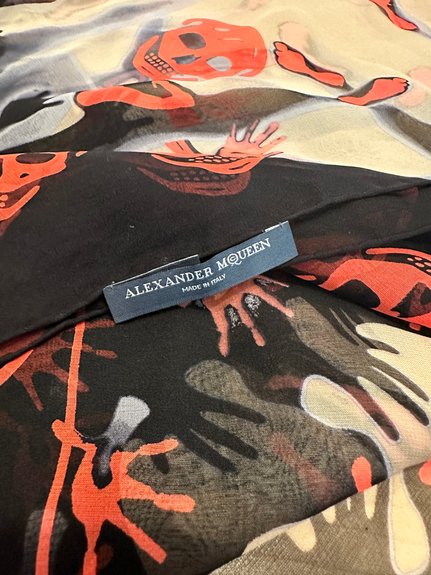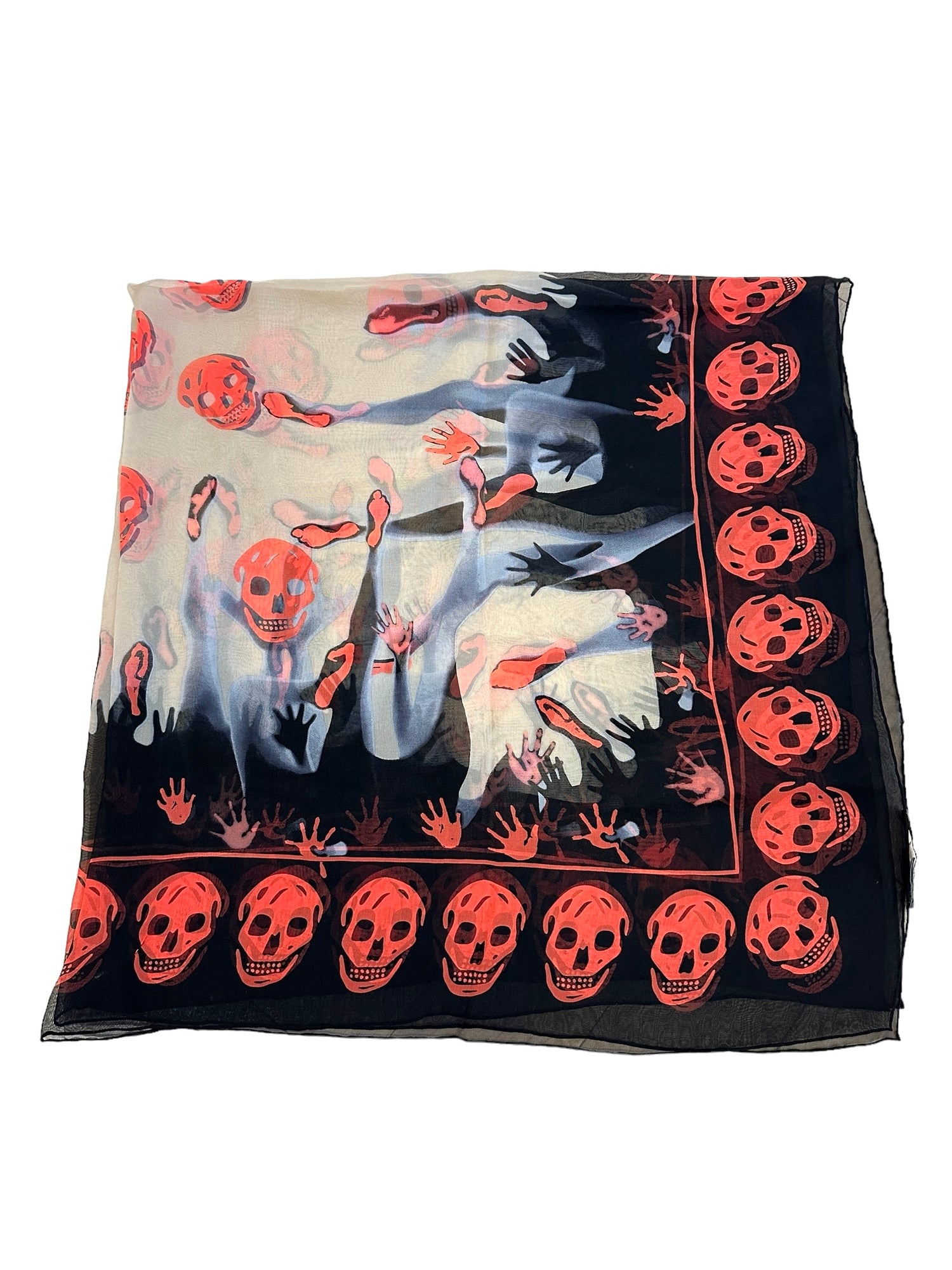 Alexander McQueen black and orange iconic skull scarf. Seethrough and lightweight.