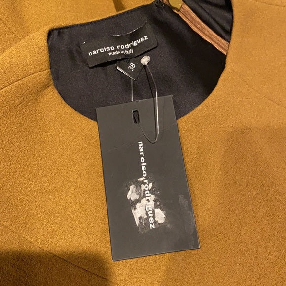 Narciso Rodriguez dress with short sleeves. Deep brown color. Concealed zipper closures. Designer size 38.
