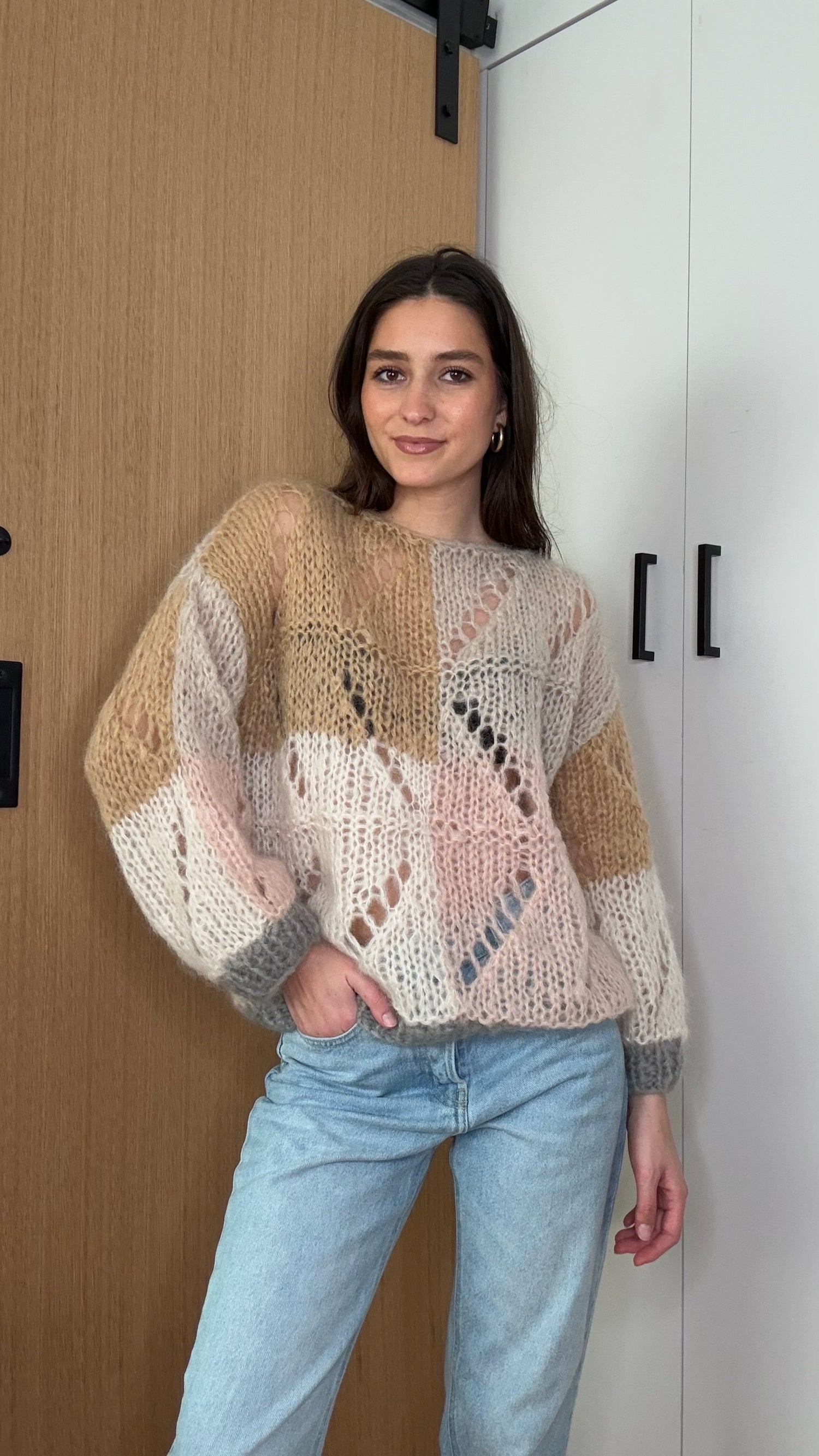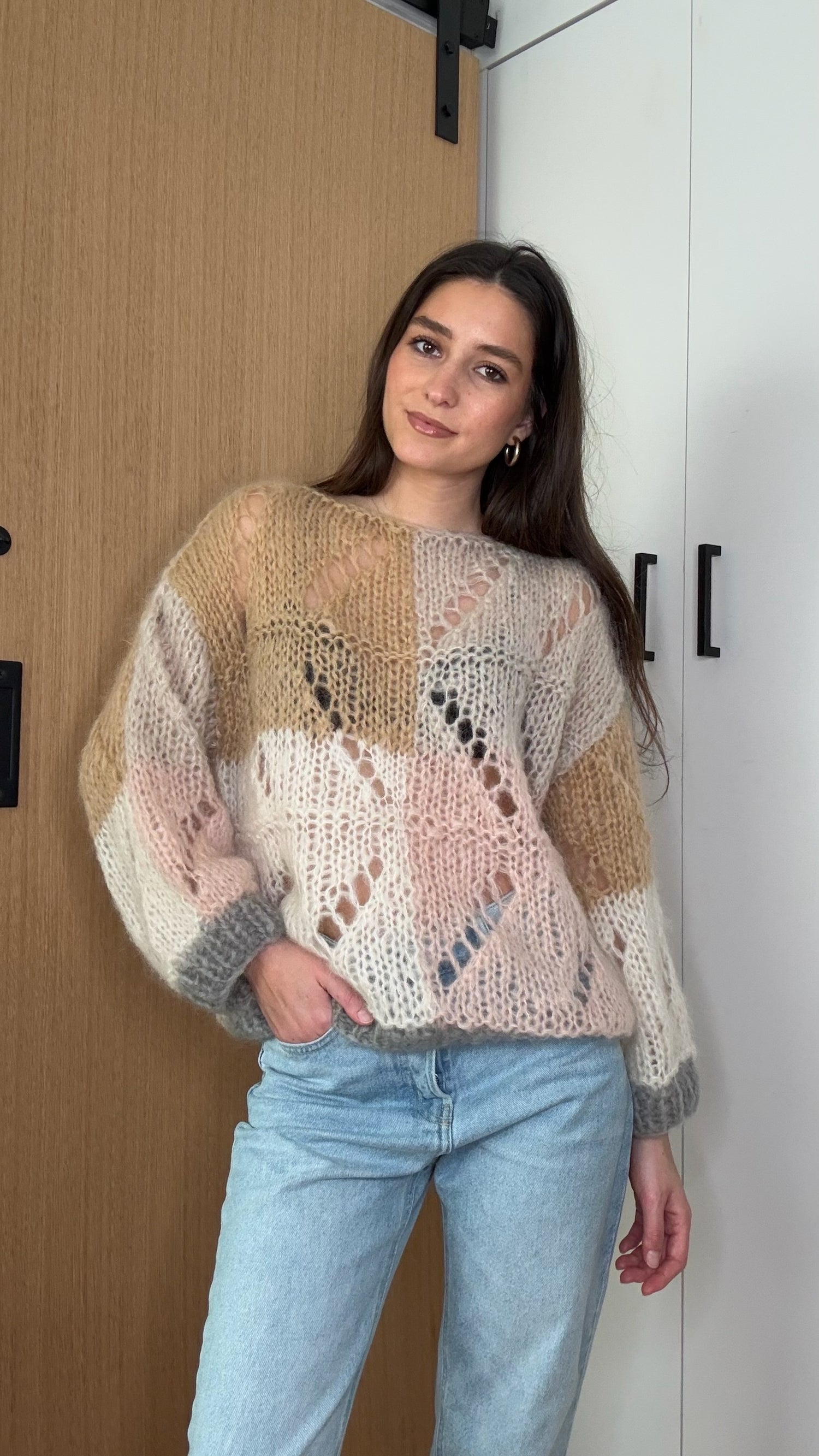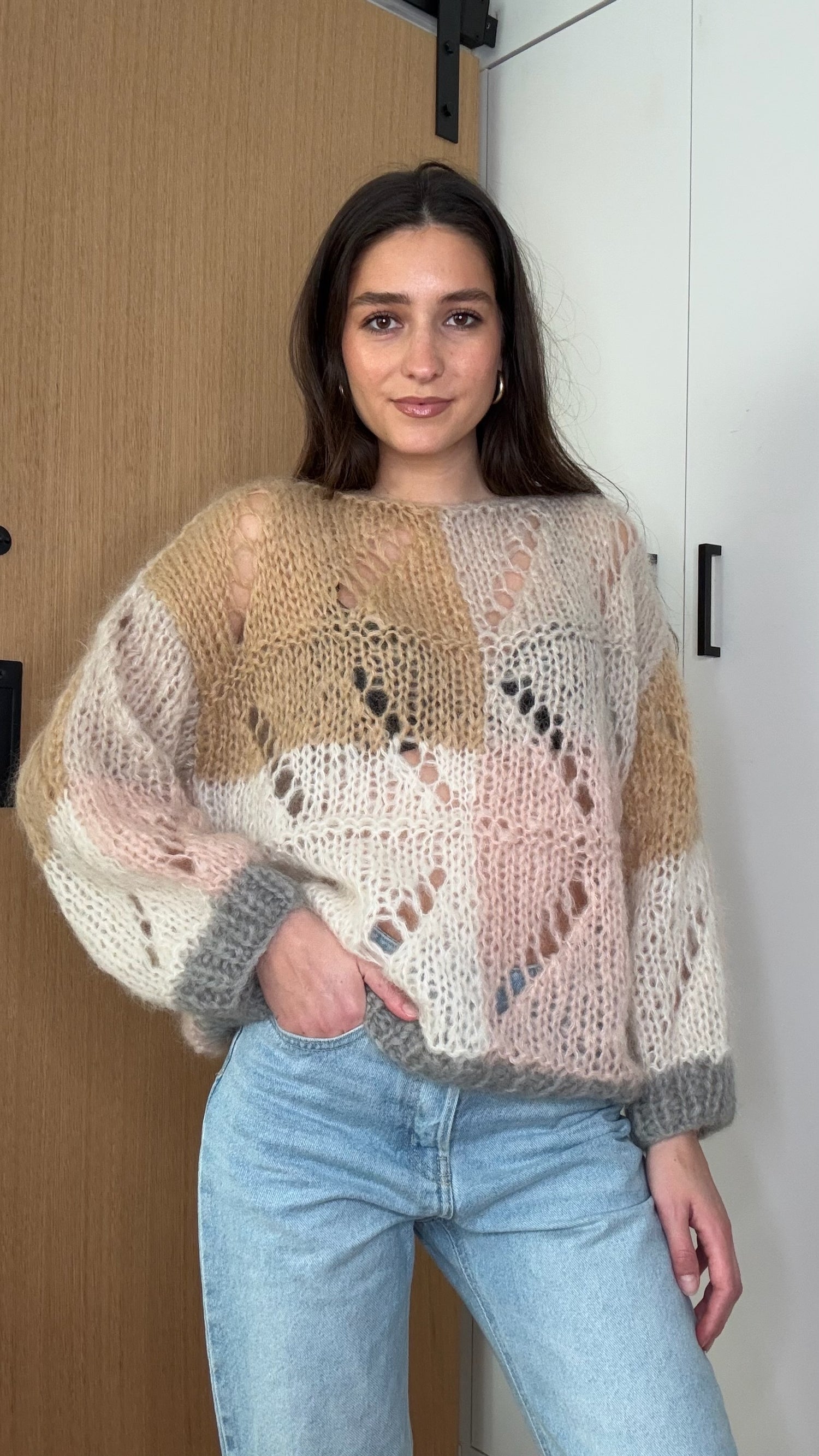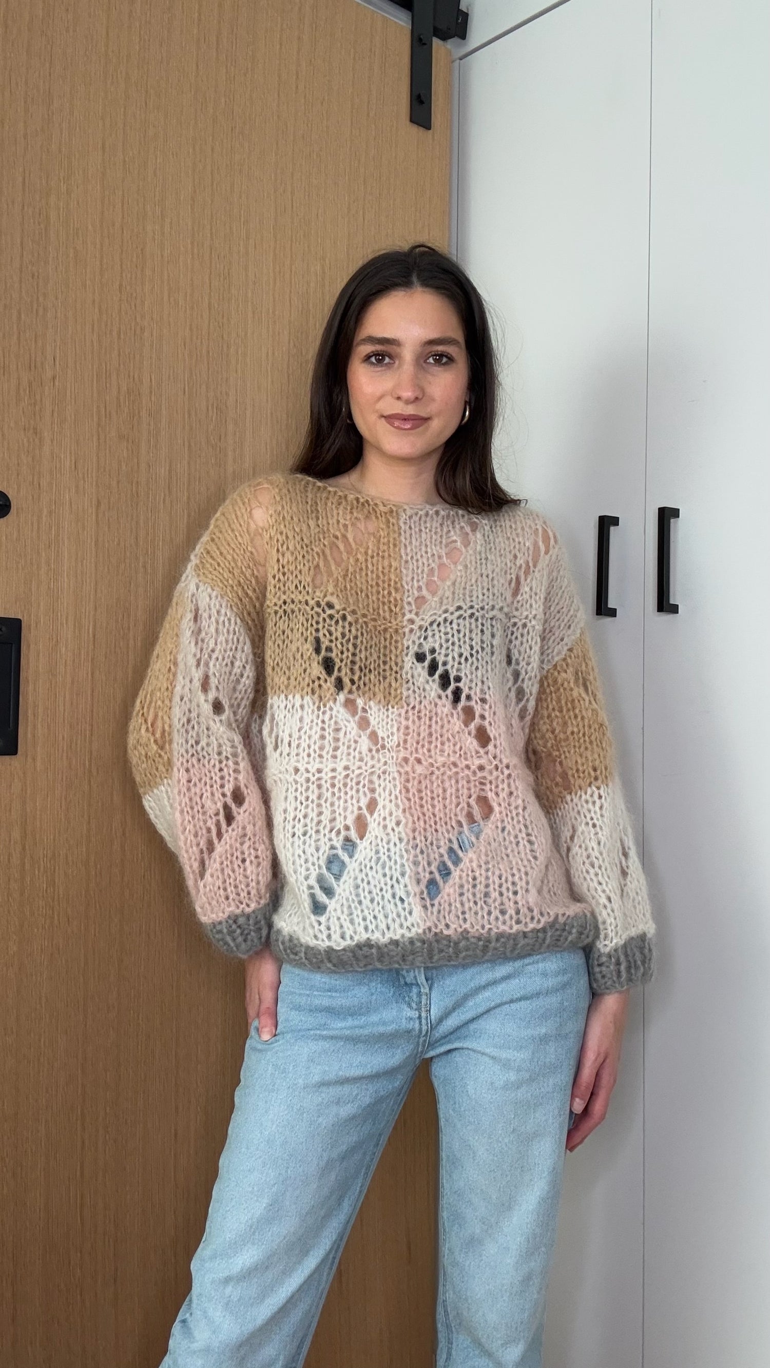 Miaimi mohair sweater. Pink, cream, tan and grey extra soft sweater. Designer size small/medium.