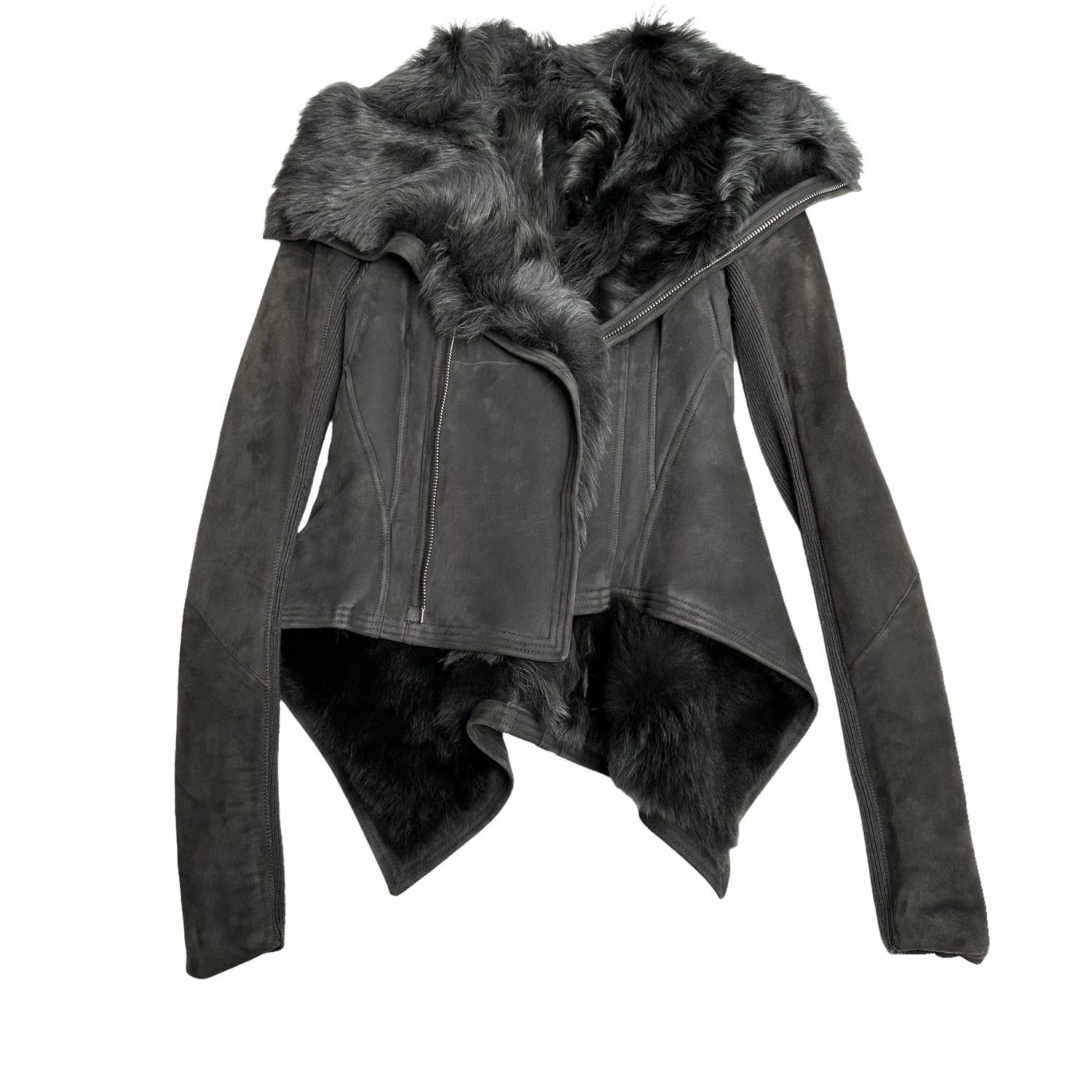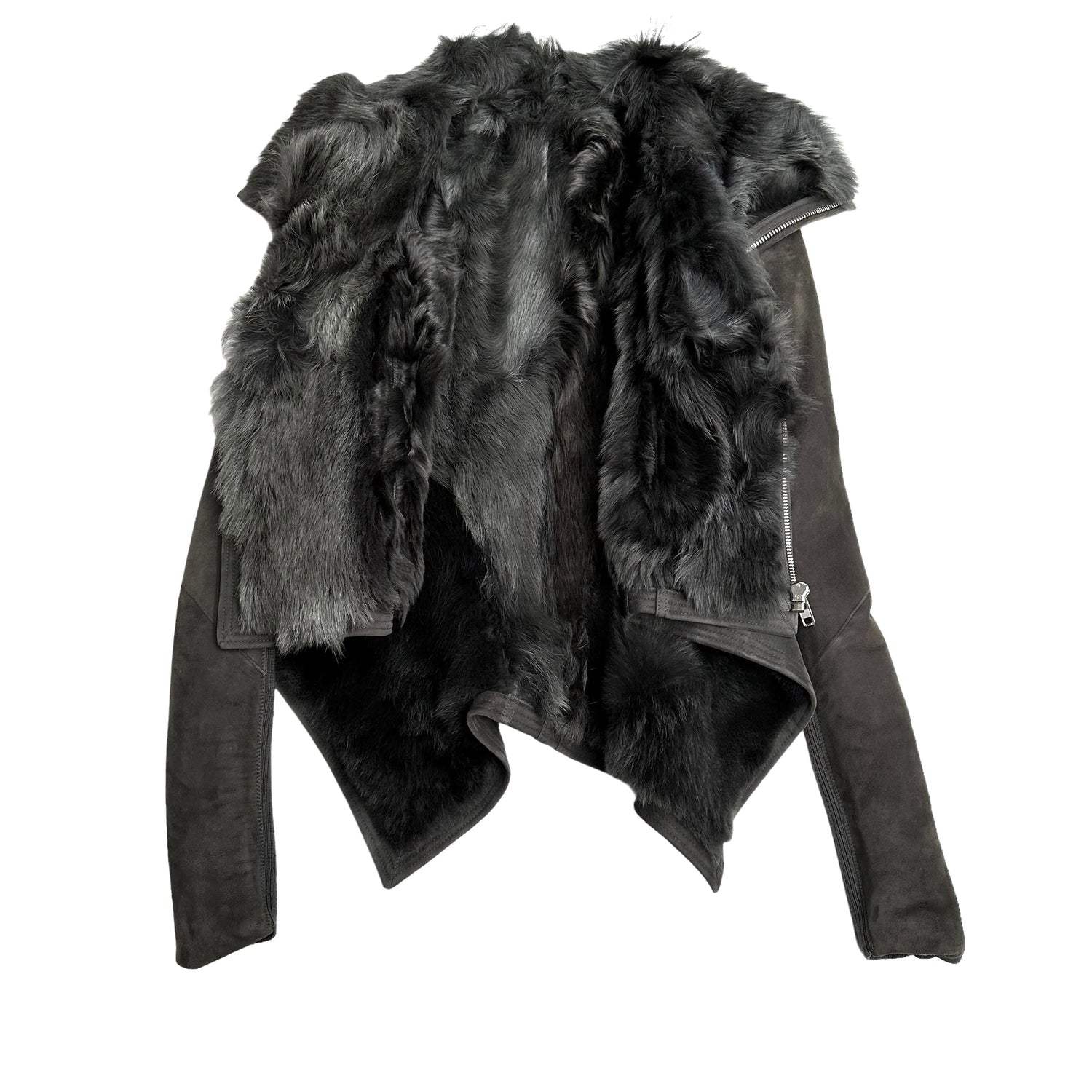 Rick Owens fur and suede jacket. Very soft and comfortable jacket. Designer size 4.
