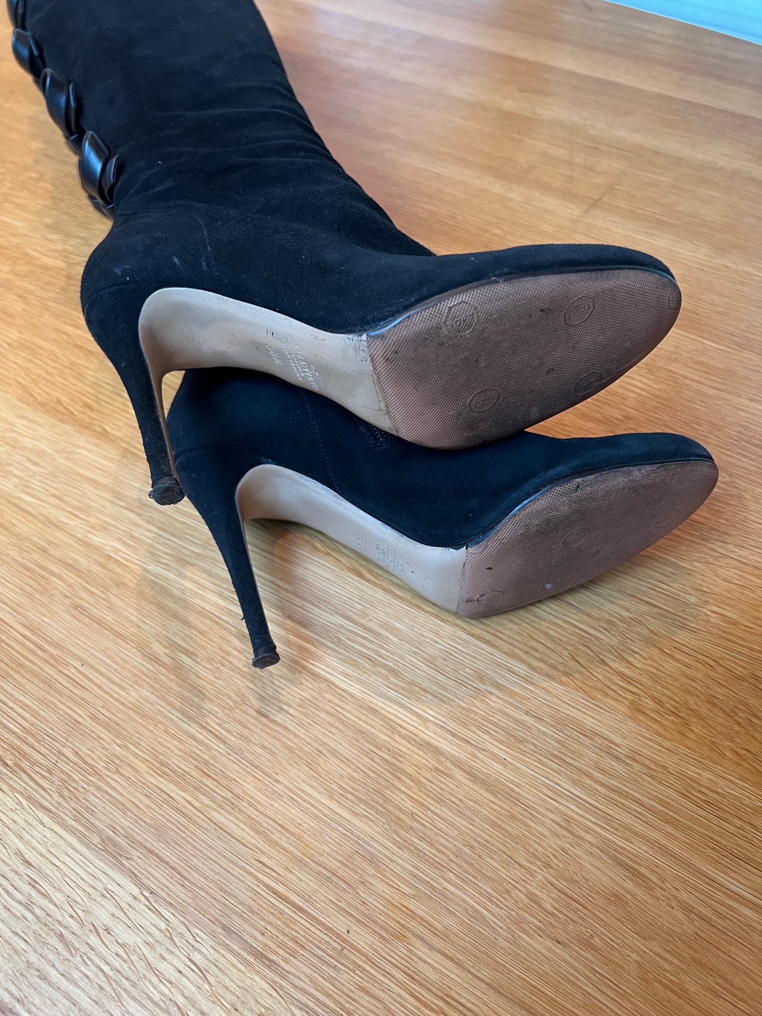 Condition: Excellent | Minimal wear on bottom sole and faint marks. New soles were added. Comes with dust bag.