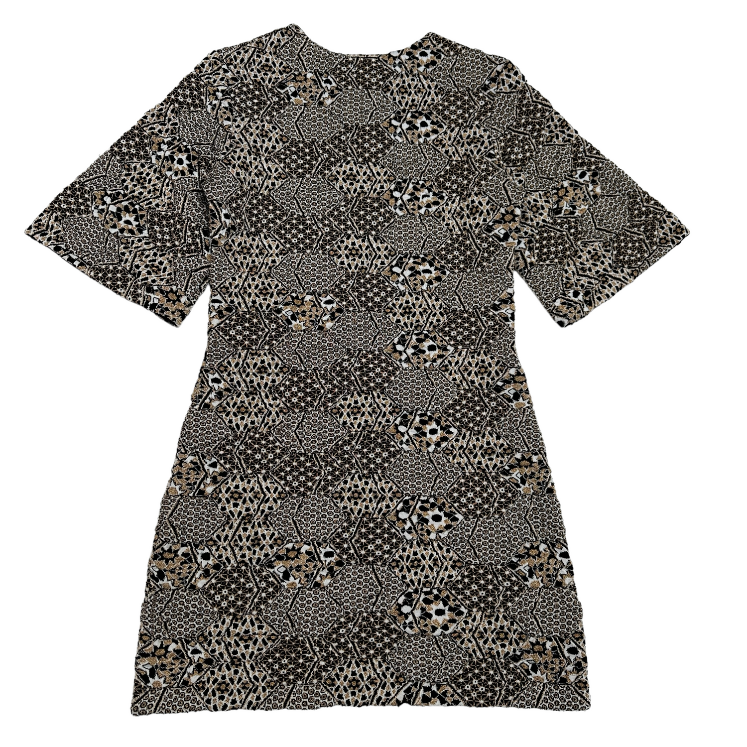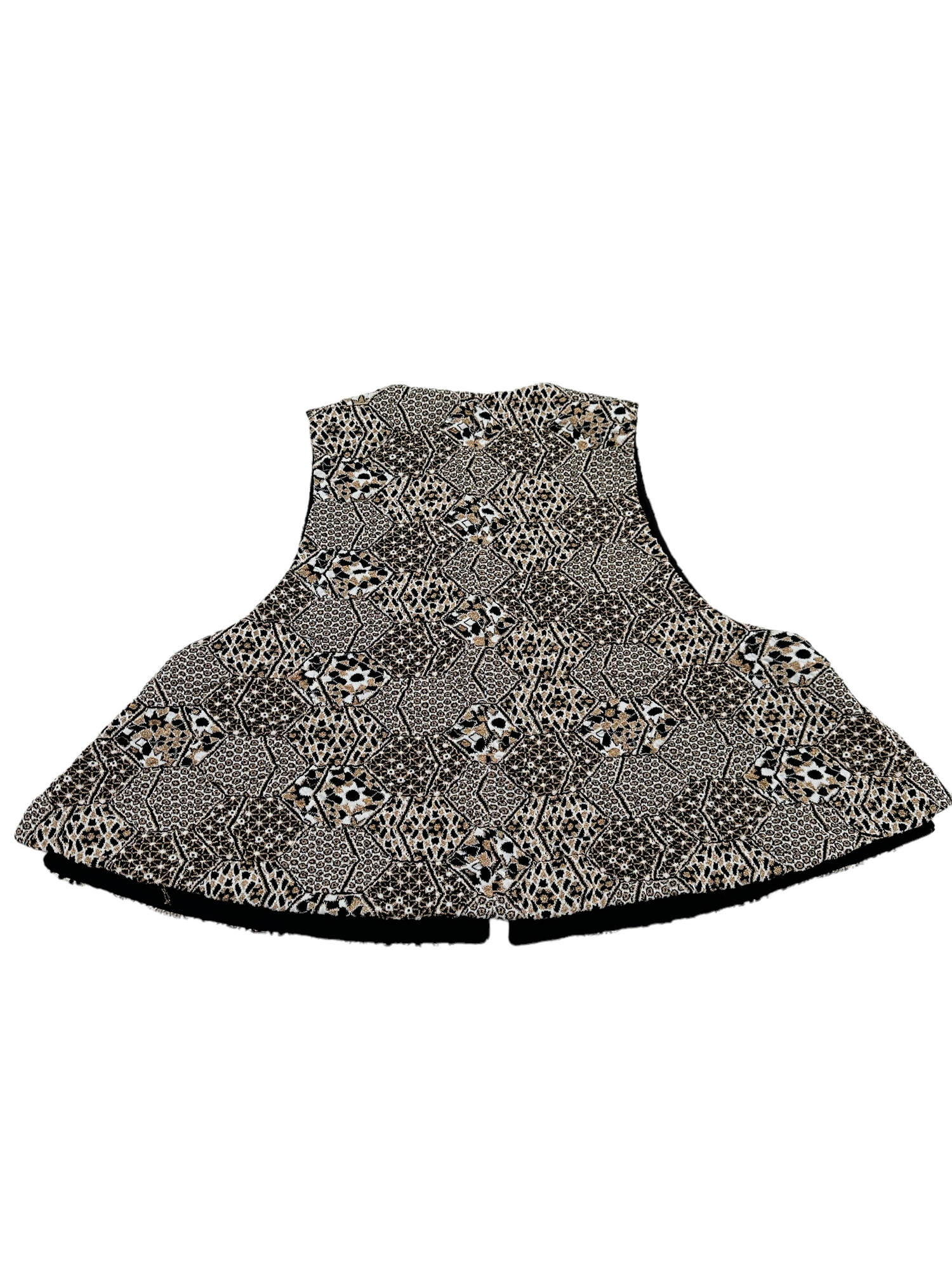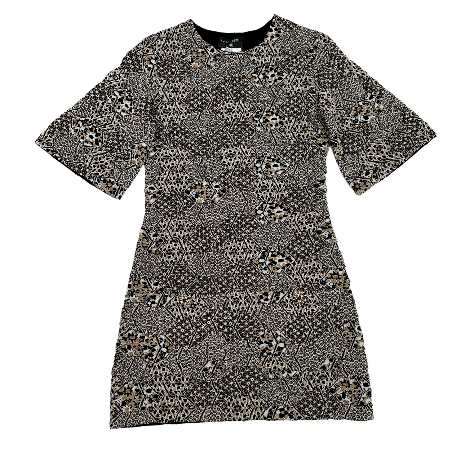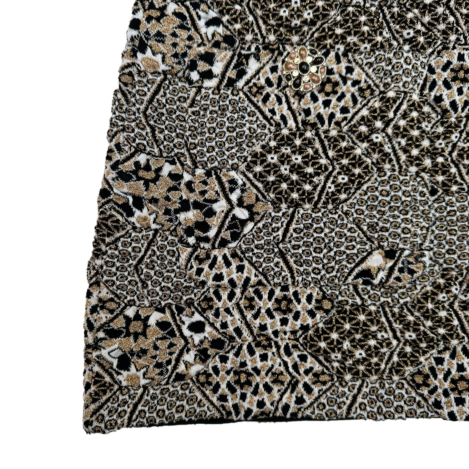 Chanel three piece set. One tunique, one pair of leggings, One sleeveless bolero. This is a collection and rare set from Chanel. Silver, gold and black. Metallic fabric. Stretchy. Gold-tone zipper at ankles. Jewelry-like buttons.