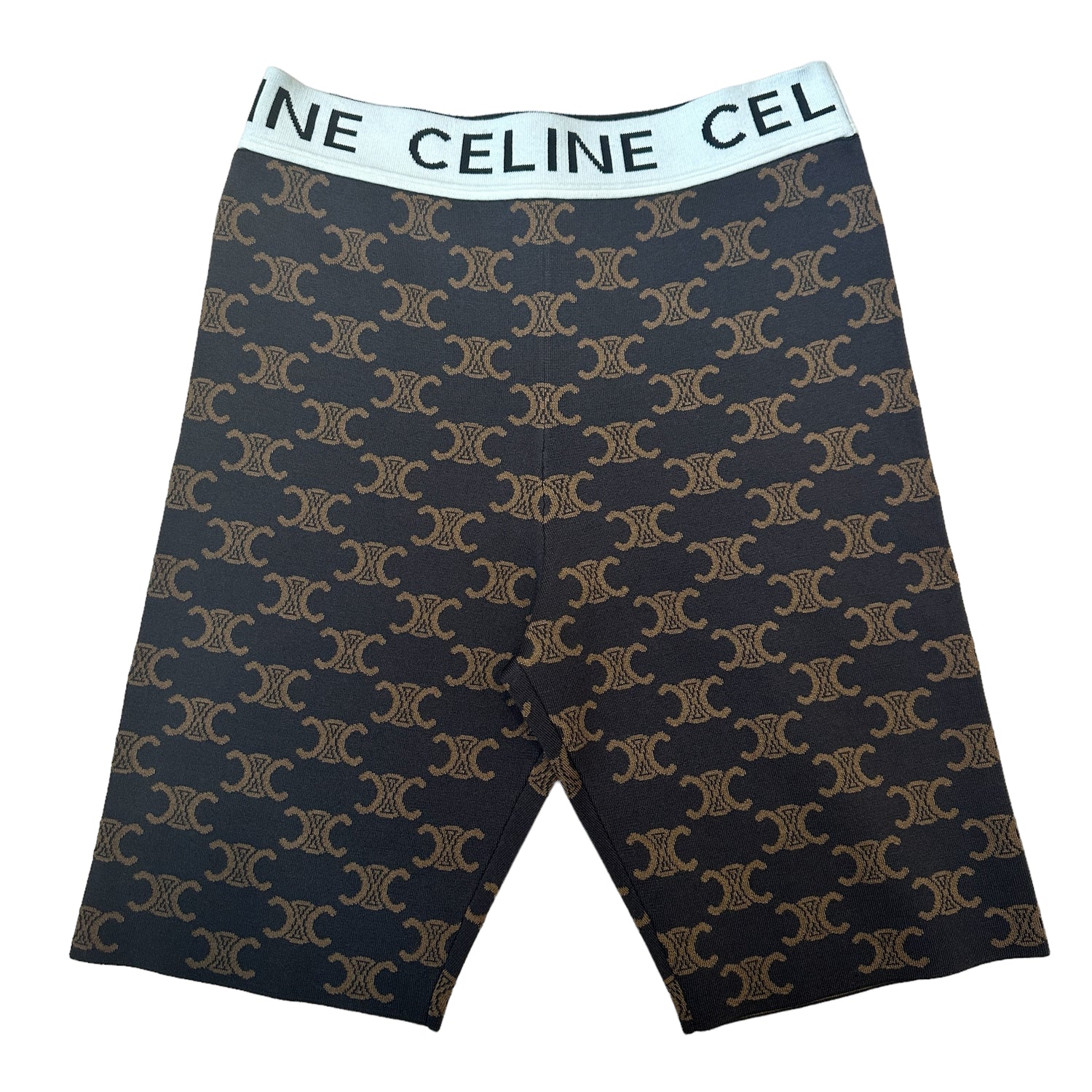 Celine brown 2023 Triomphe logo shorts. Elasticised waist with Celine logo black on white. Very stretchy and soft material. Designer size Large.