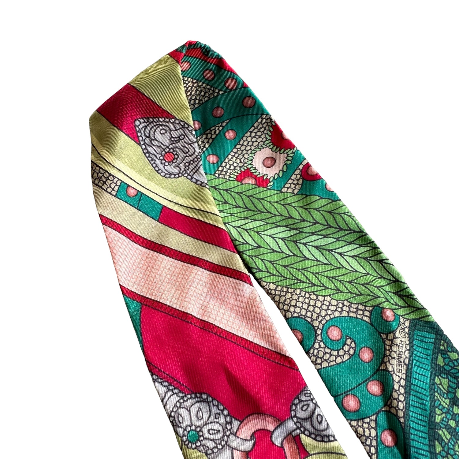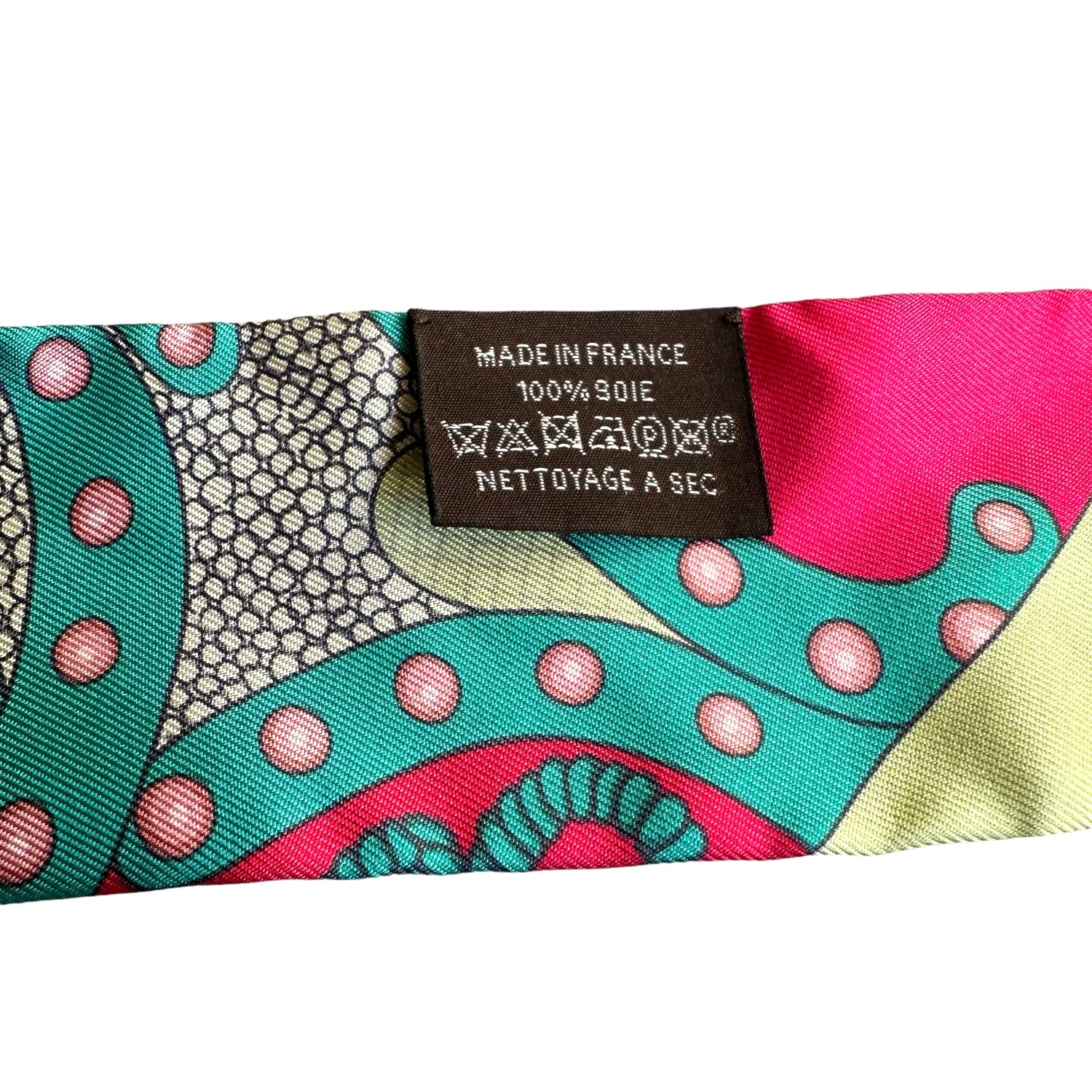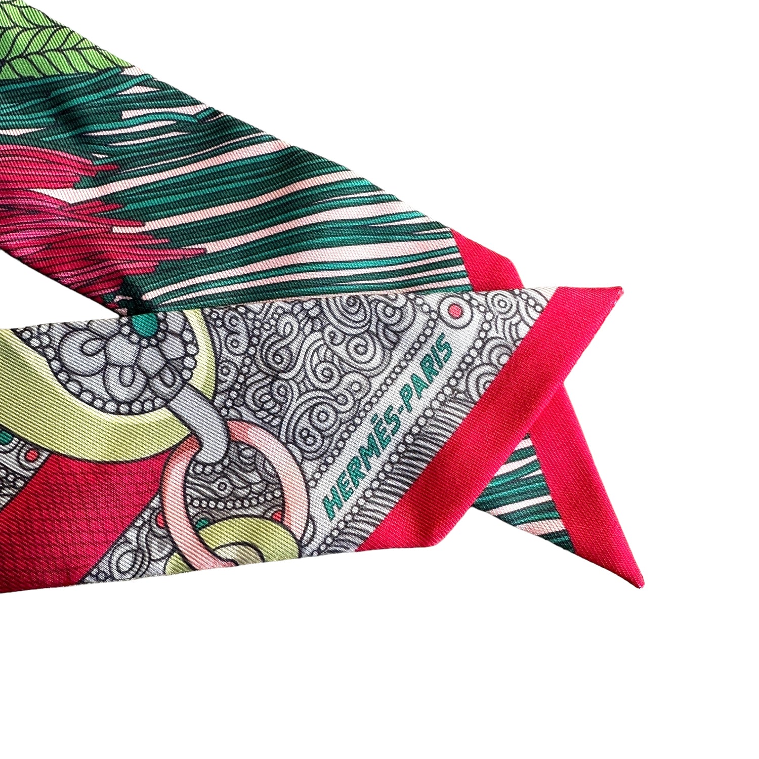 Hermes twilly scarf. Beautiful pink, green and grey colors. Logo at tip.