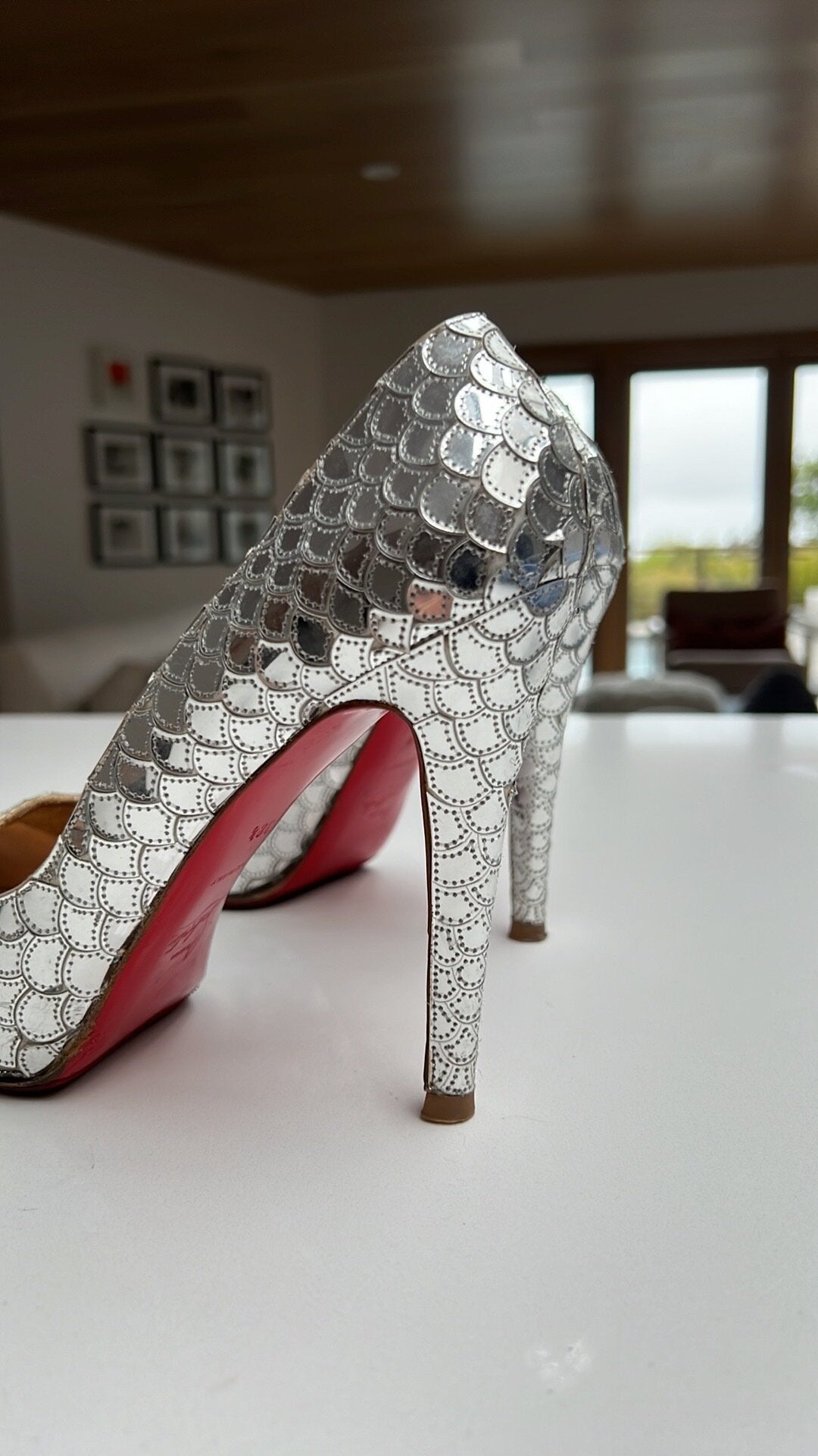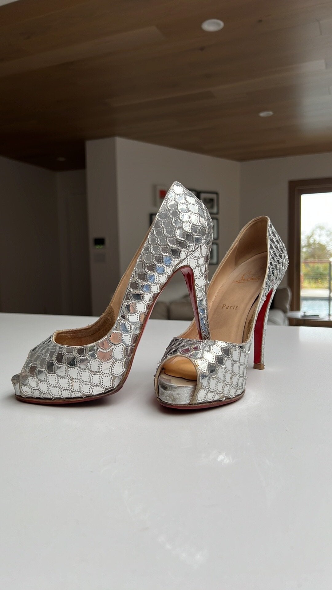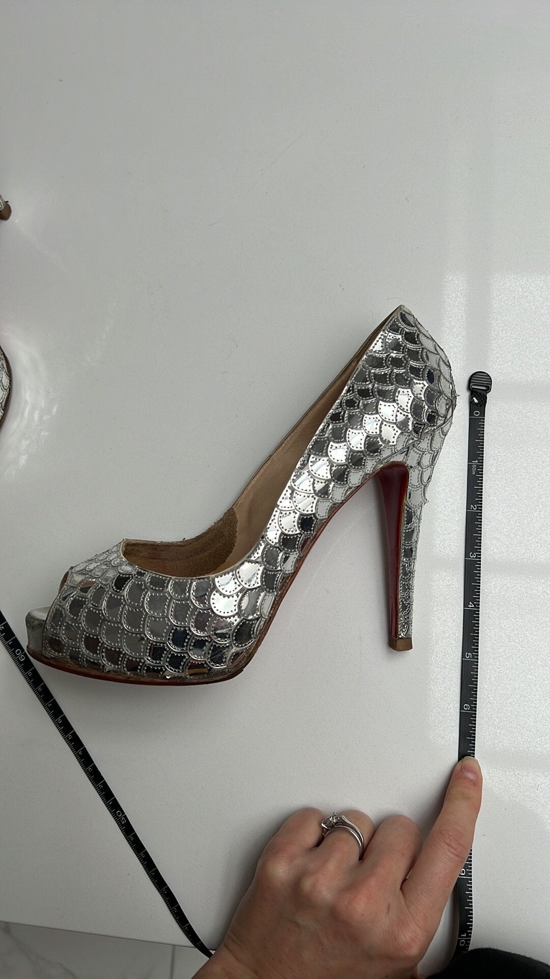 Condition: gently used. Some marks at exterior scales and toe. Some discoloration inside. New soles added.