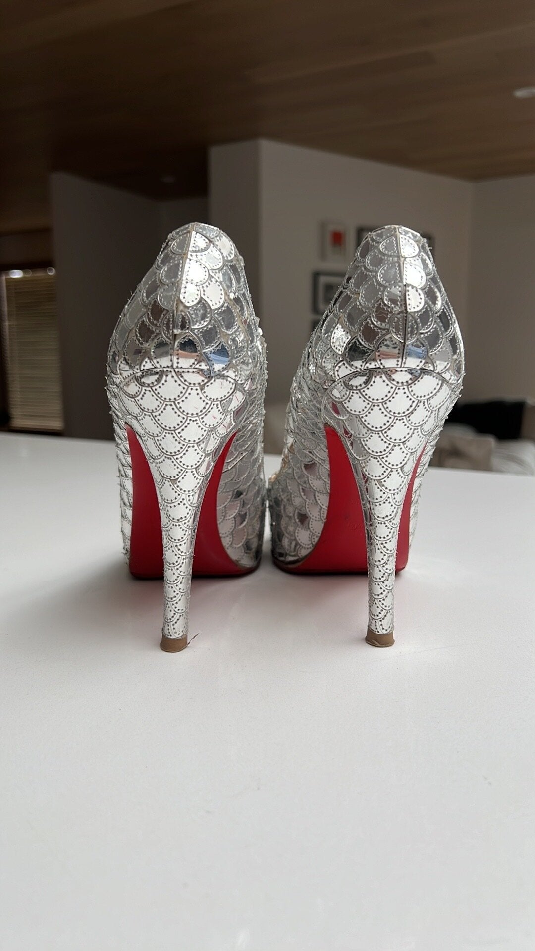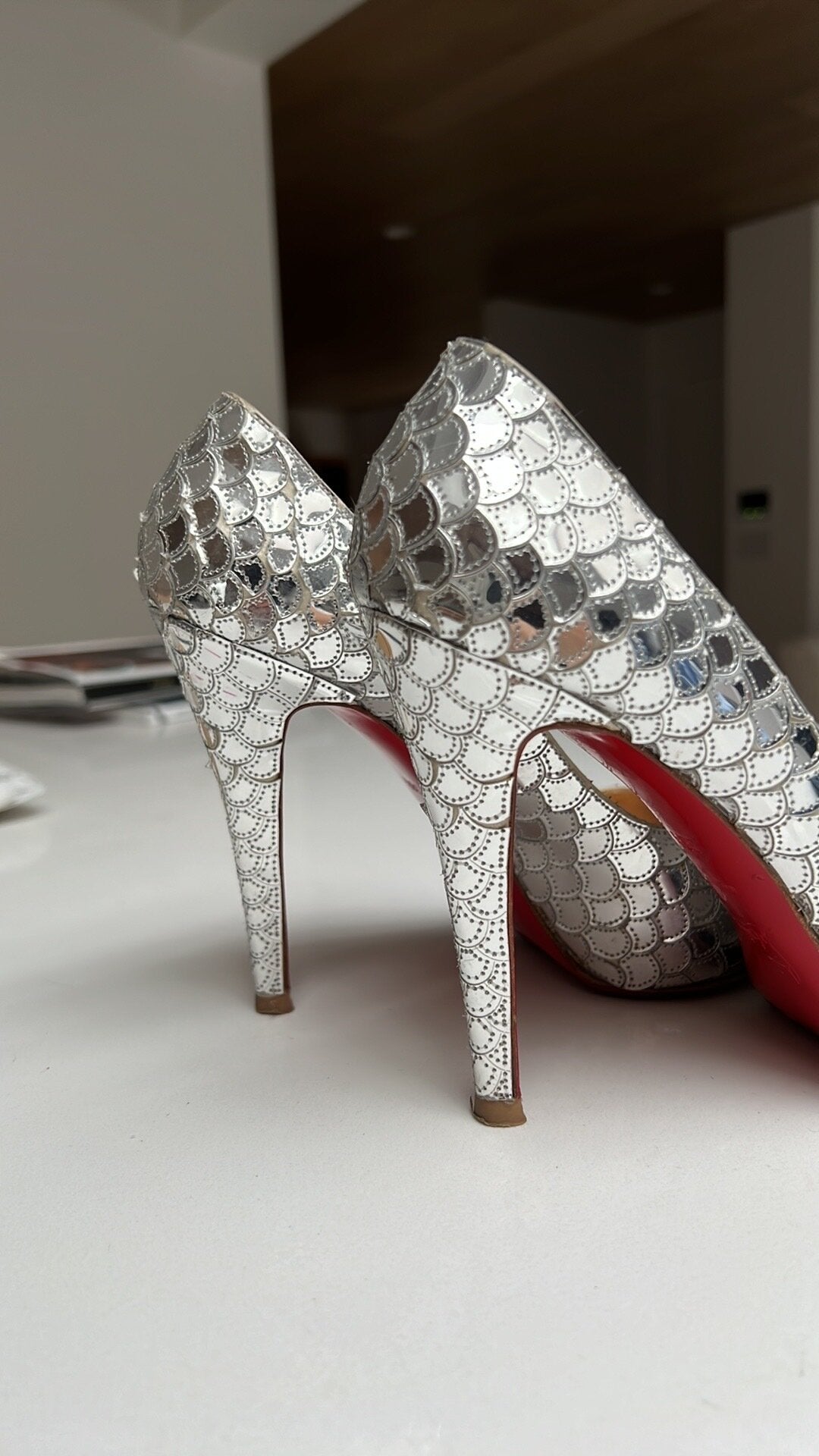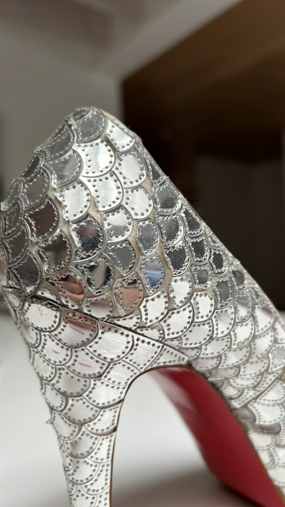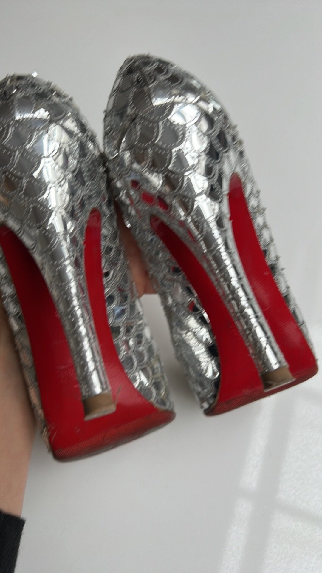 Condition: gently used. Some marks at exterior scales and toe. Some discoloration inside. New soles added.
