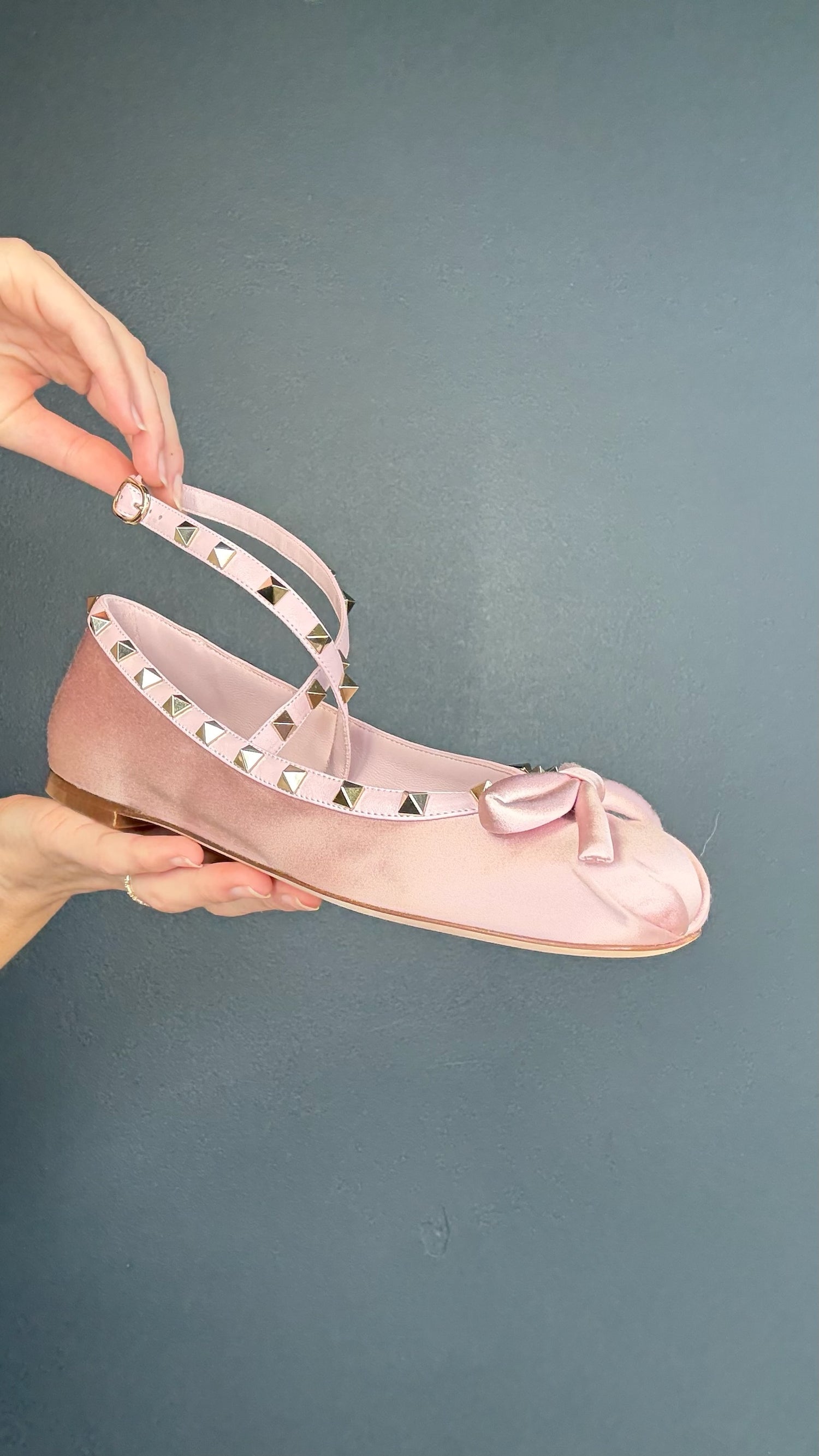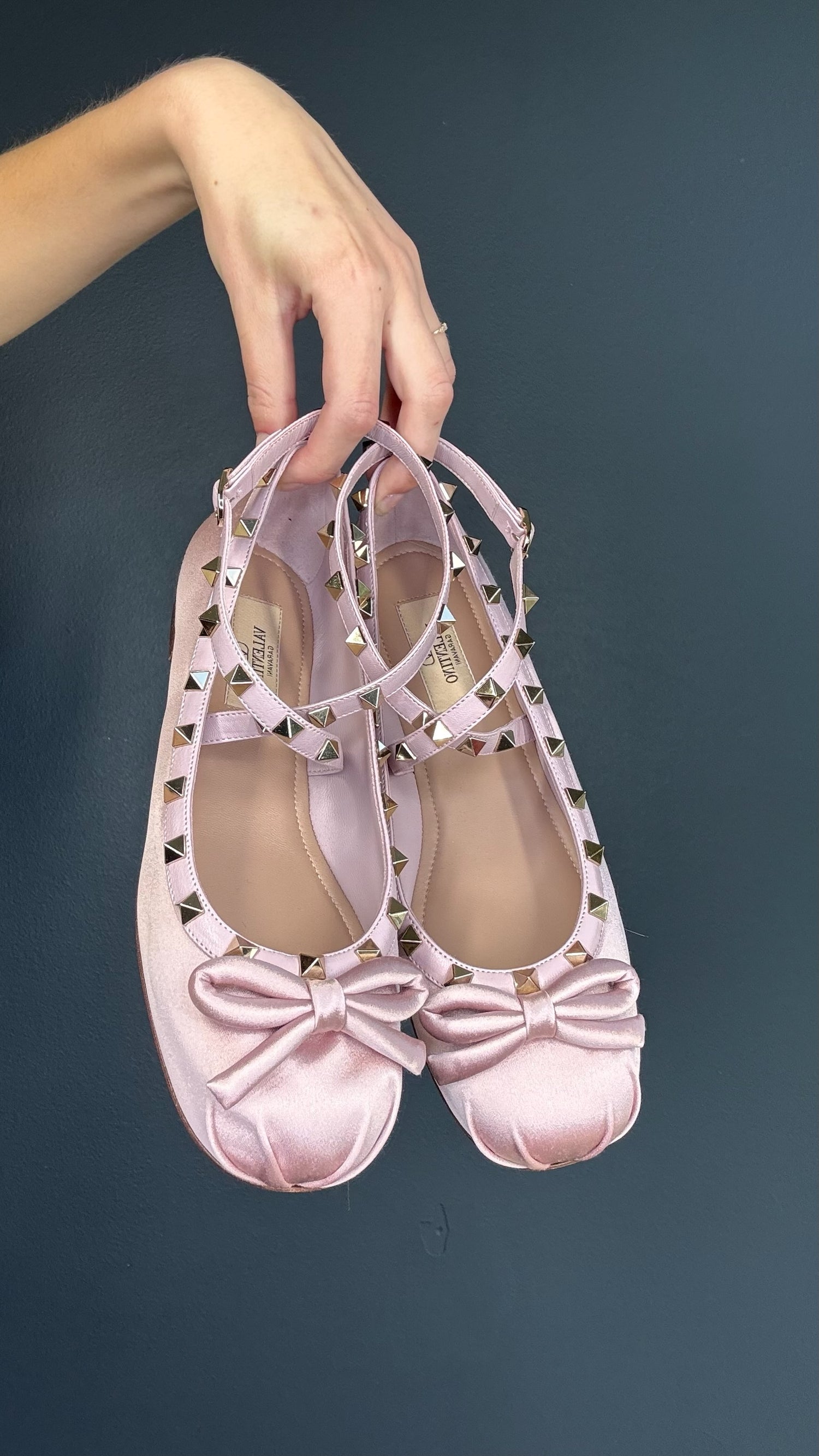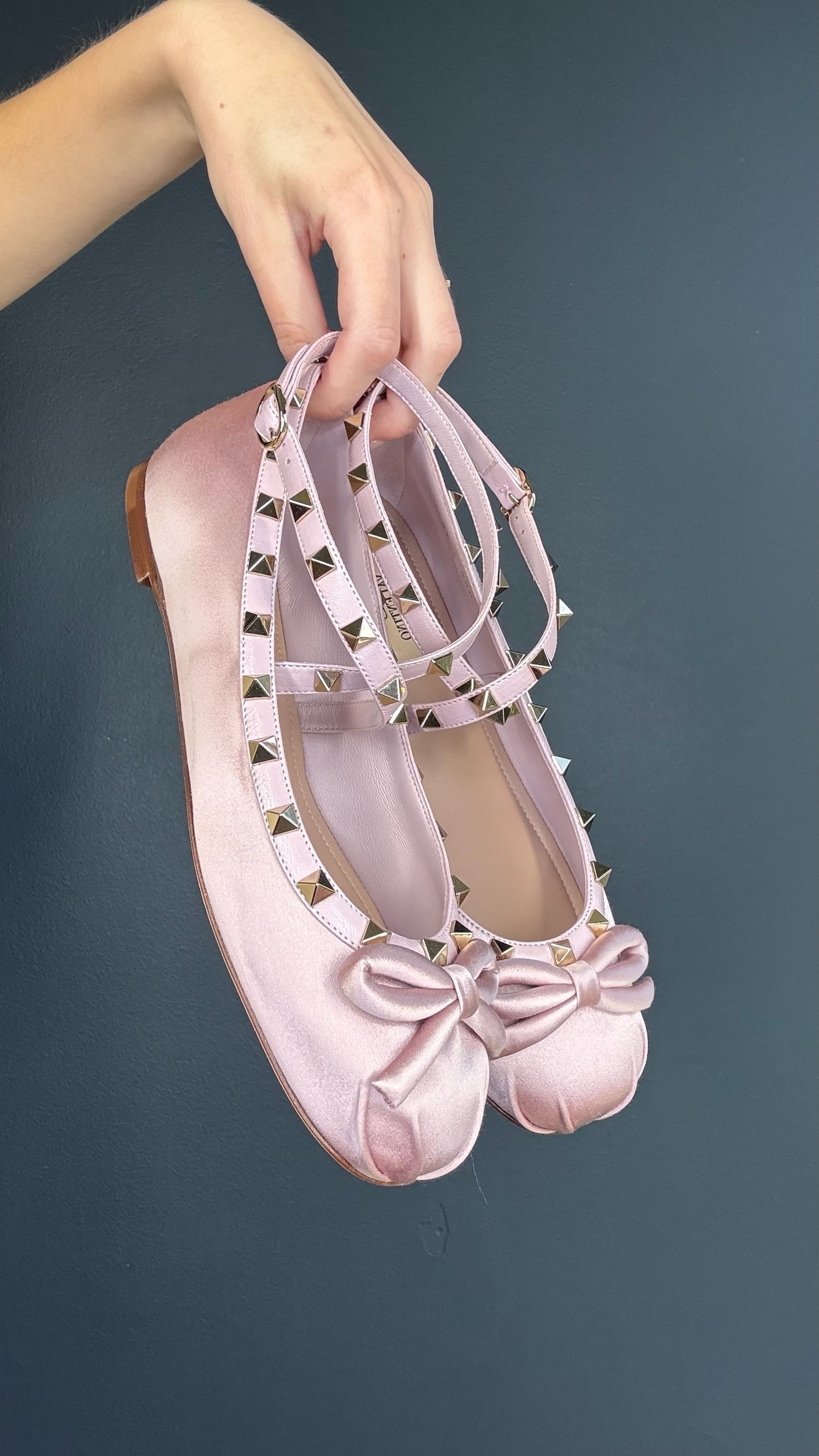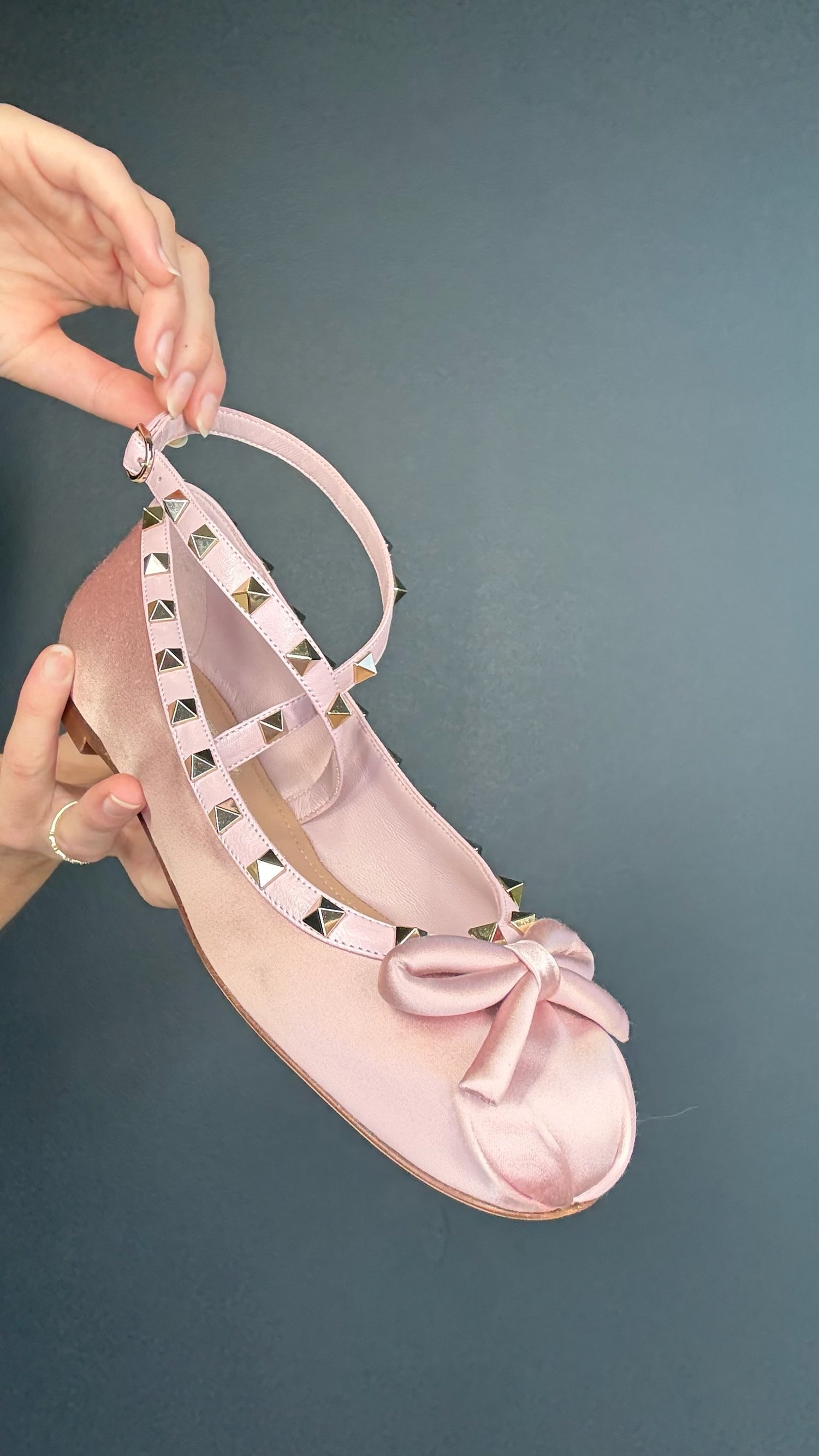 Valentino pink ballet slippers with box and rockstuds. Gold hardare. Designer size 38.