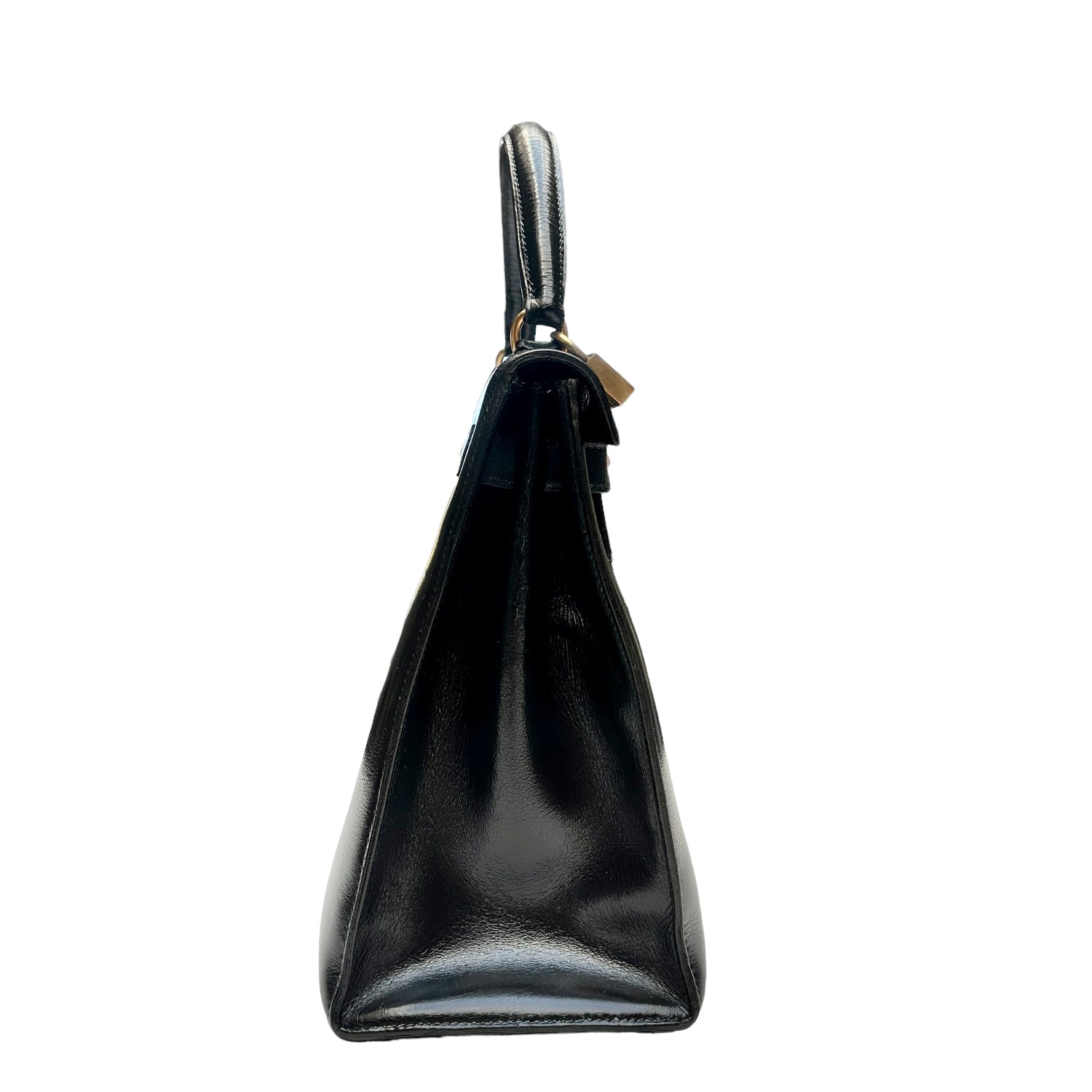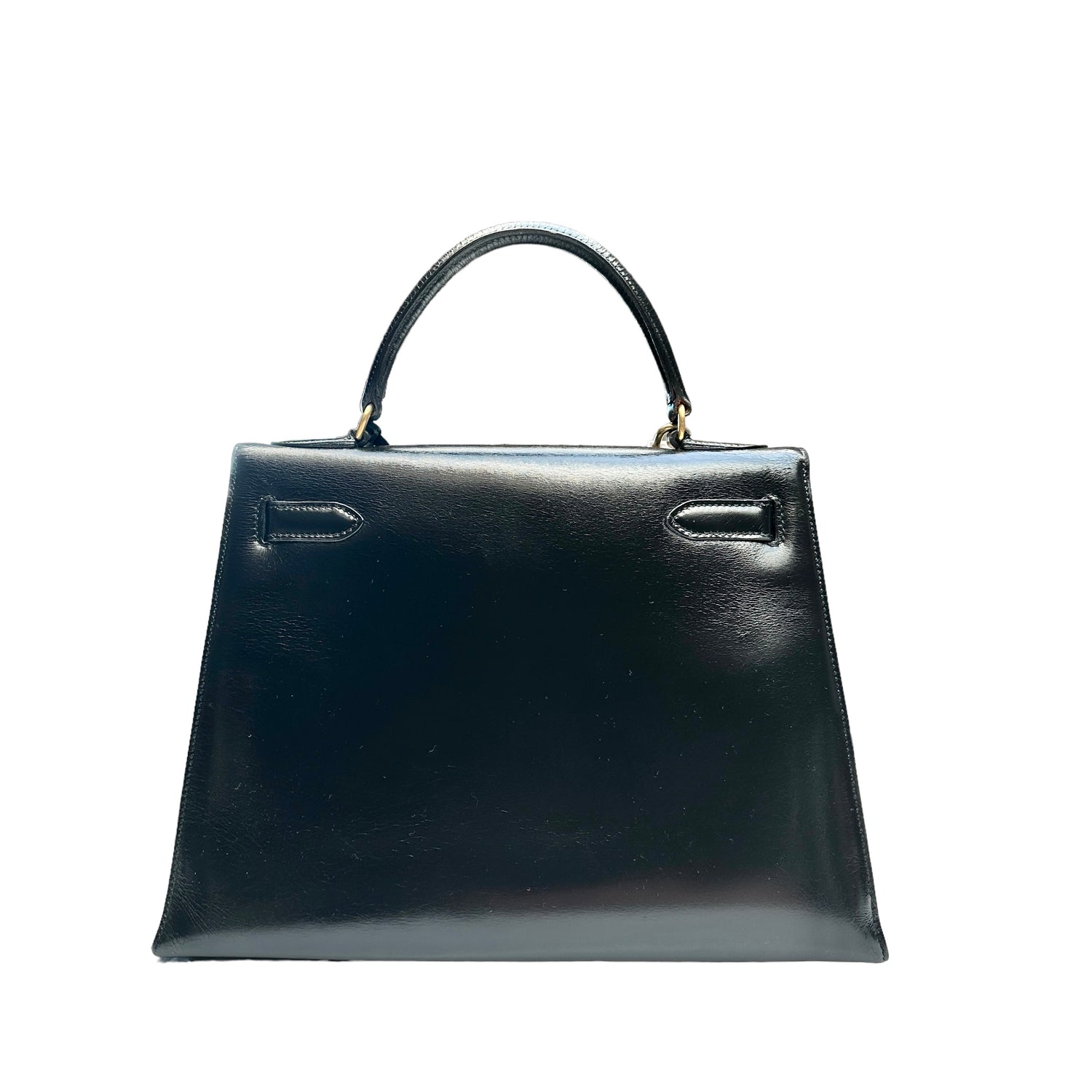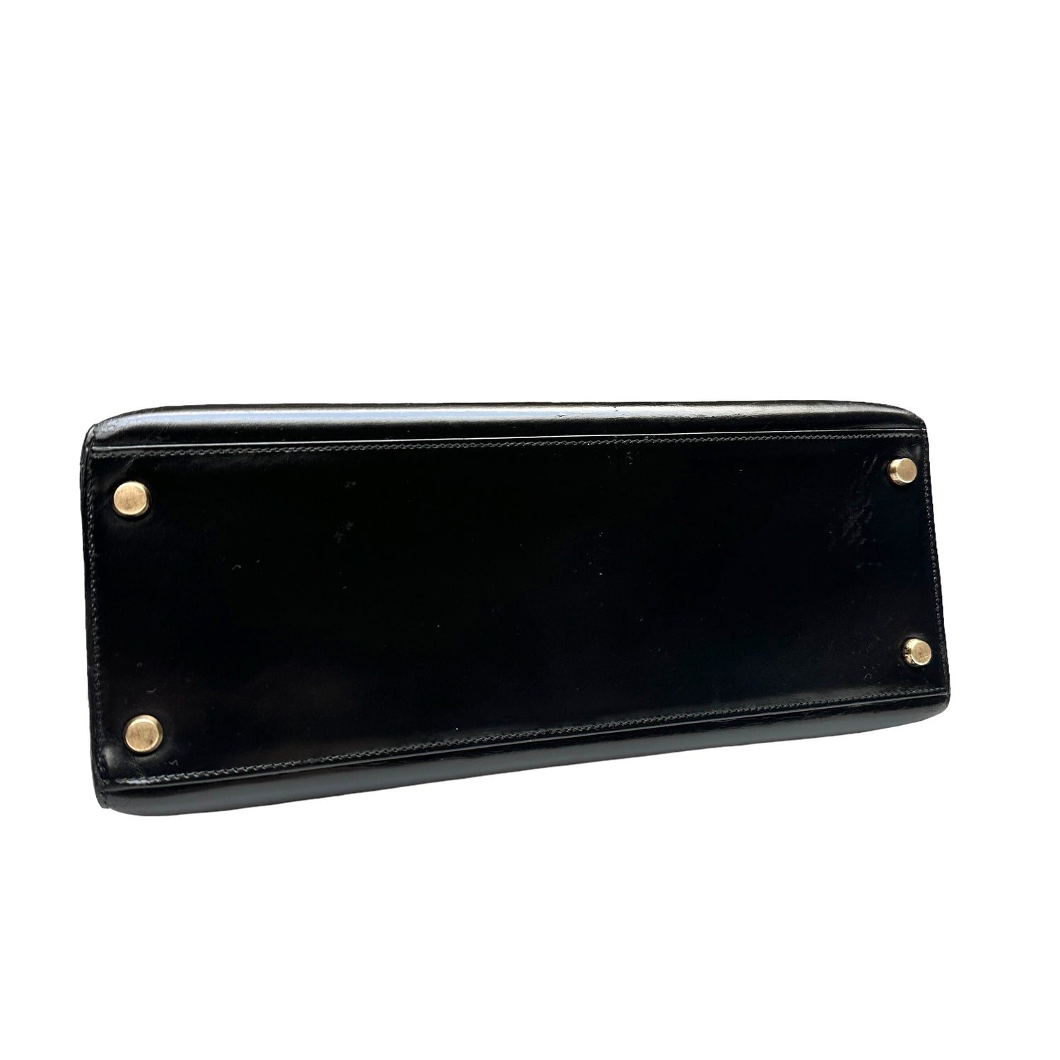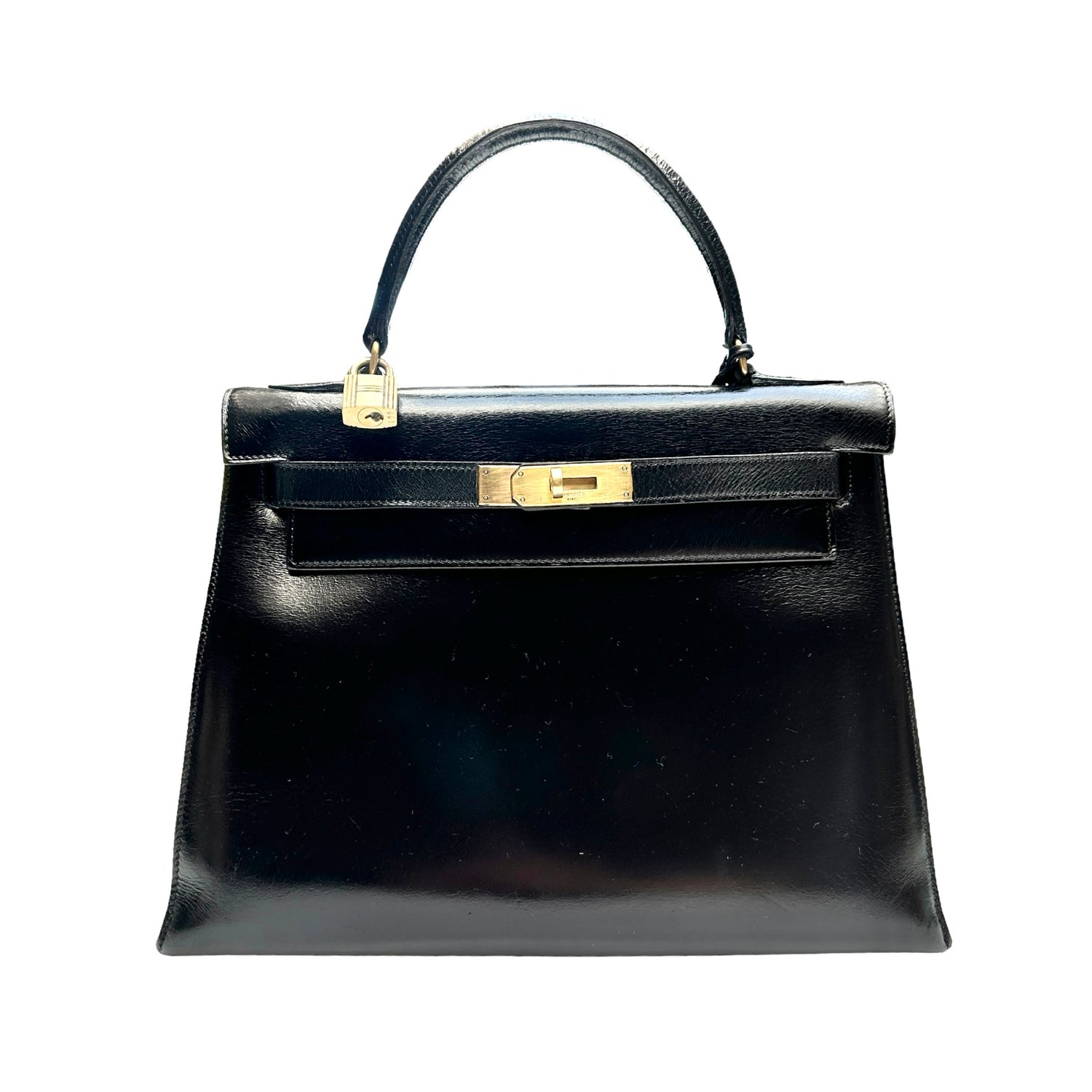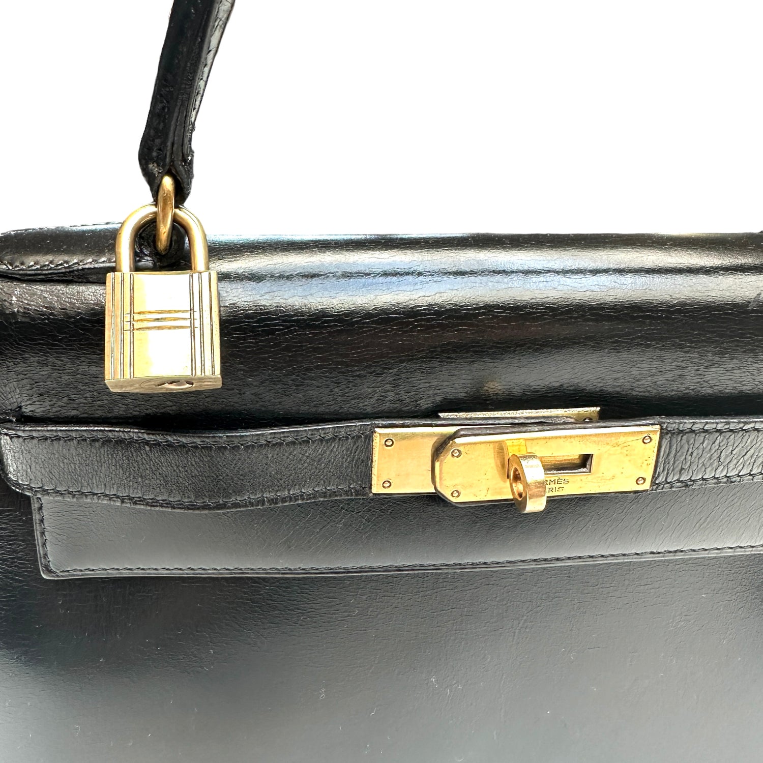 This bag is a pure gem! A treasure to be invested in and cherished. The condition is stellar for a 70's bag. The black box leather kept its original shine and structure. It is a starter Hermes Kelly bag as it is in the most sought after color combination, black and yellow gold. It is also an incredible piece to be added to one's Hermes collection. Finding such a well kept vintage is not easy.