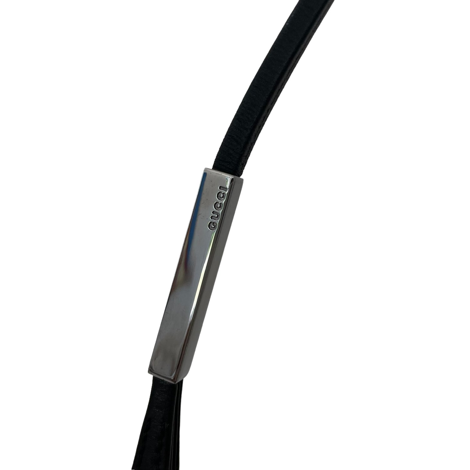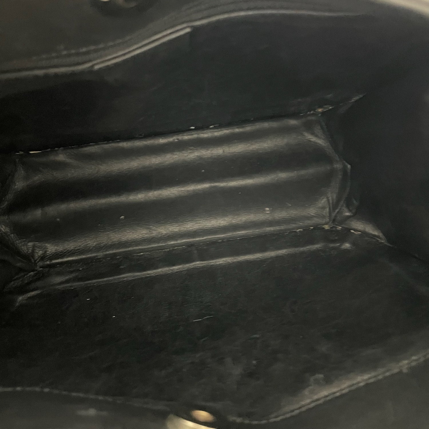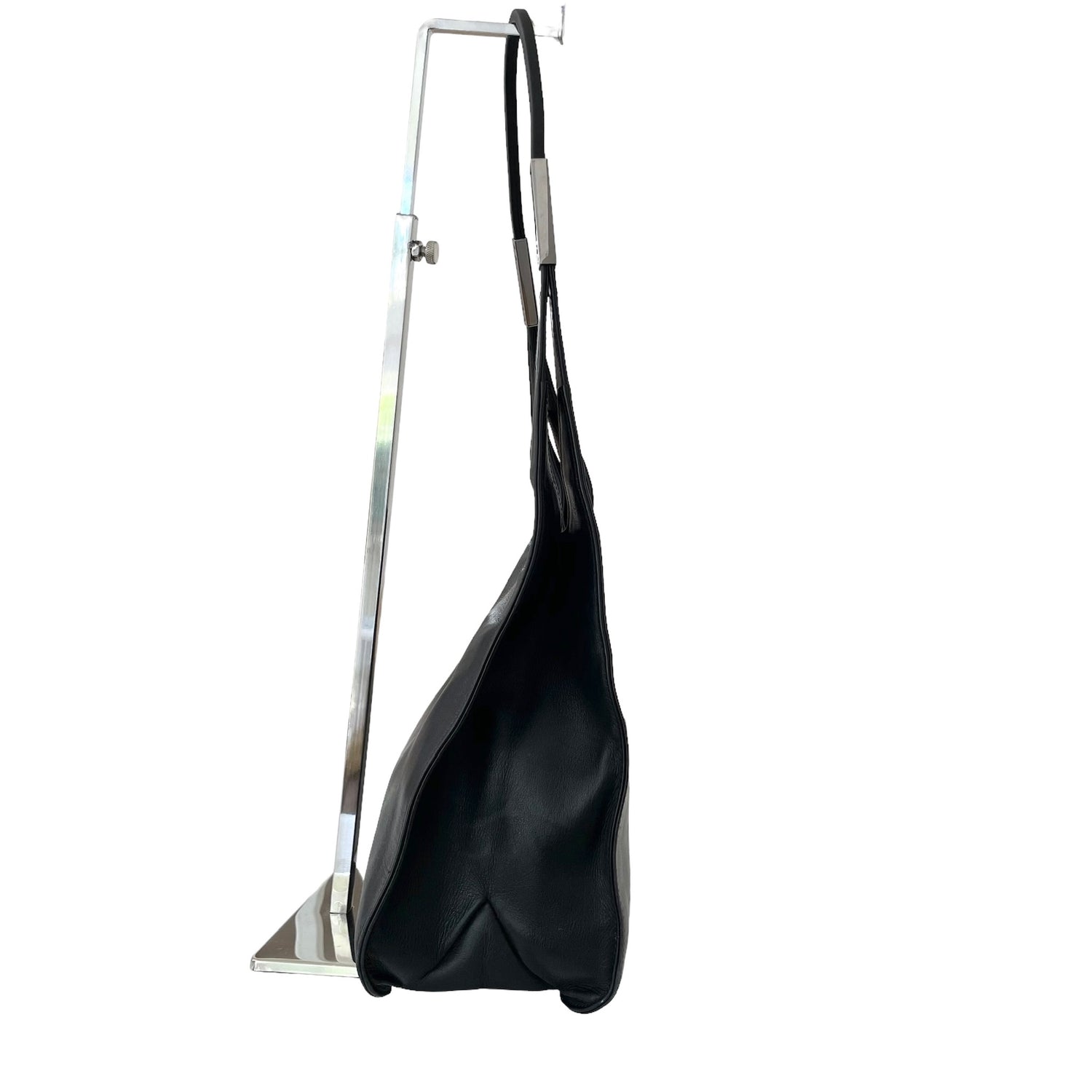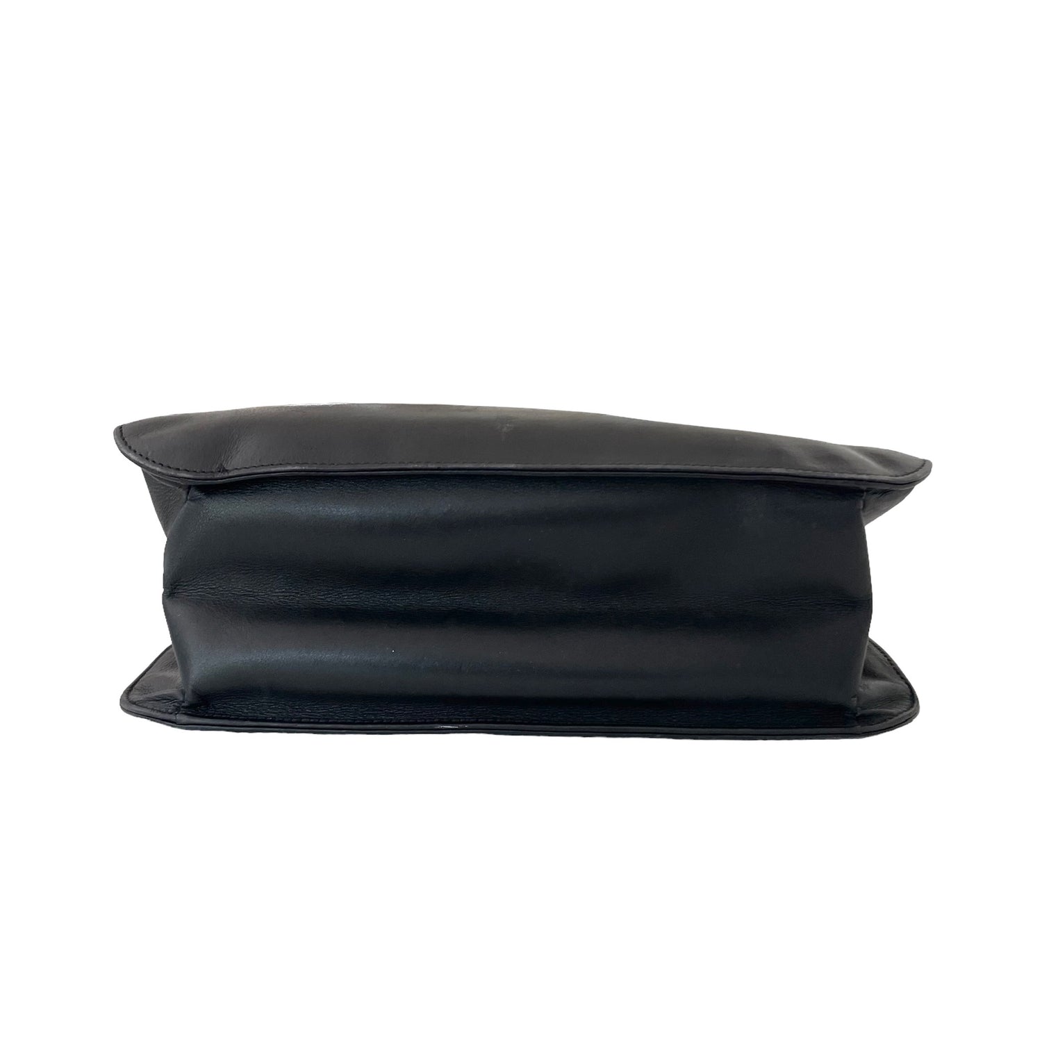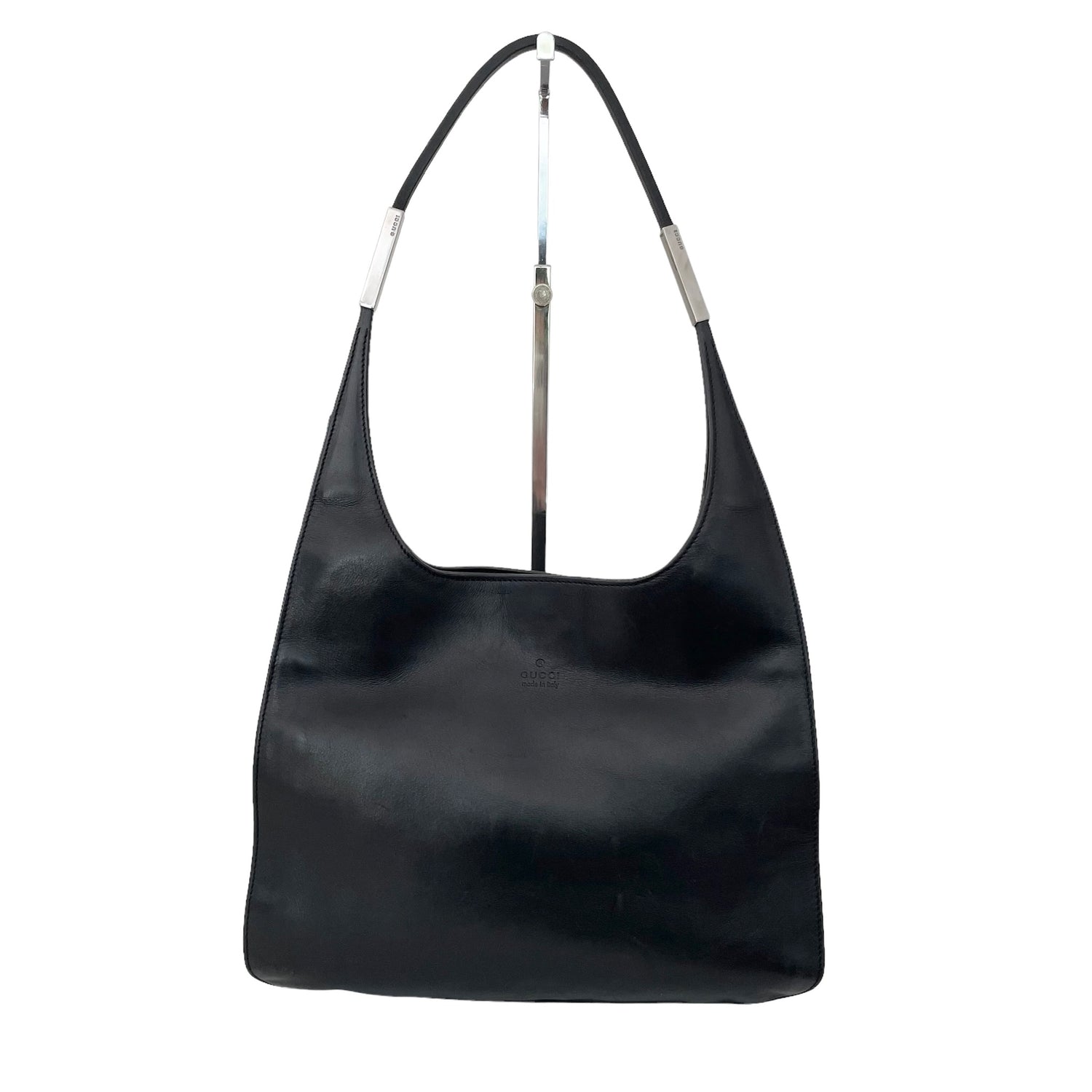 Gucci by Tom Ford vintage black leather shoulder bag with silver hardware. Logo at handles and front. Snap closure and one inside zipper pocket.