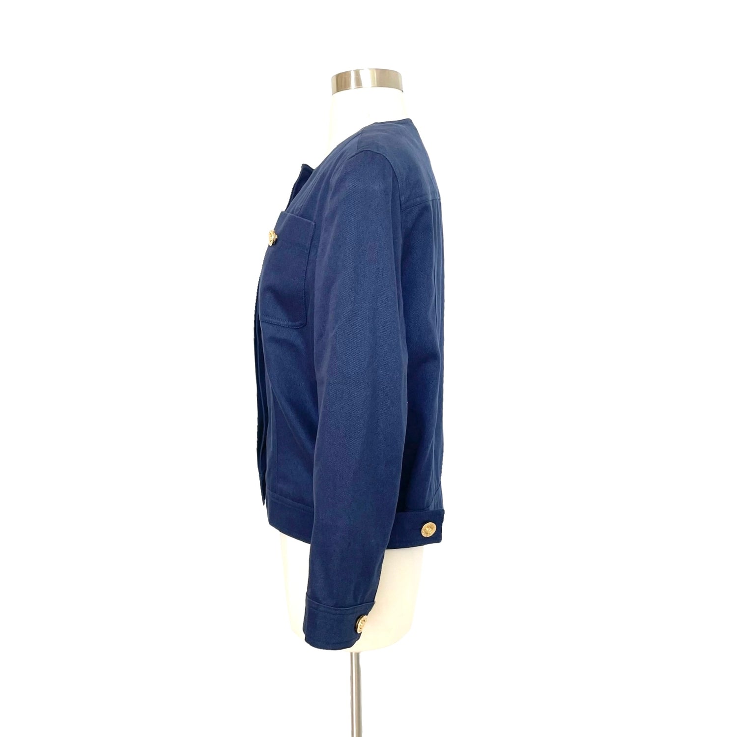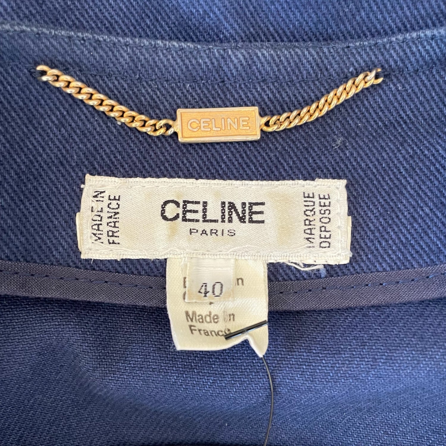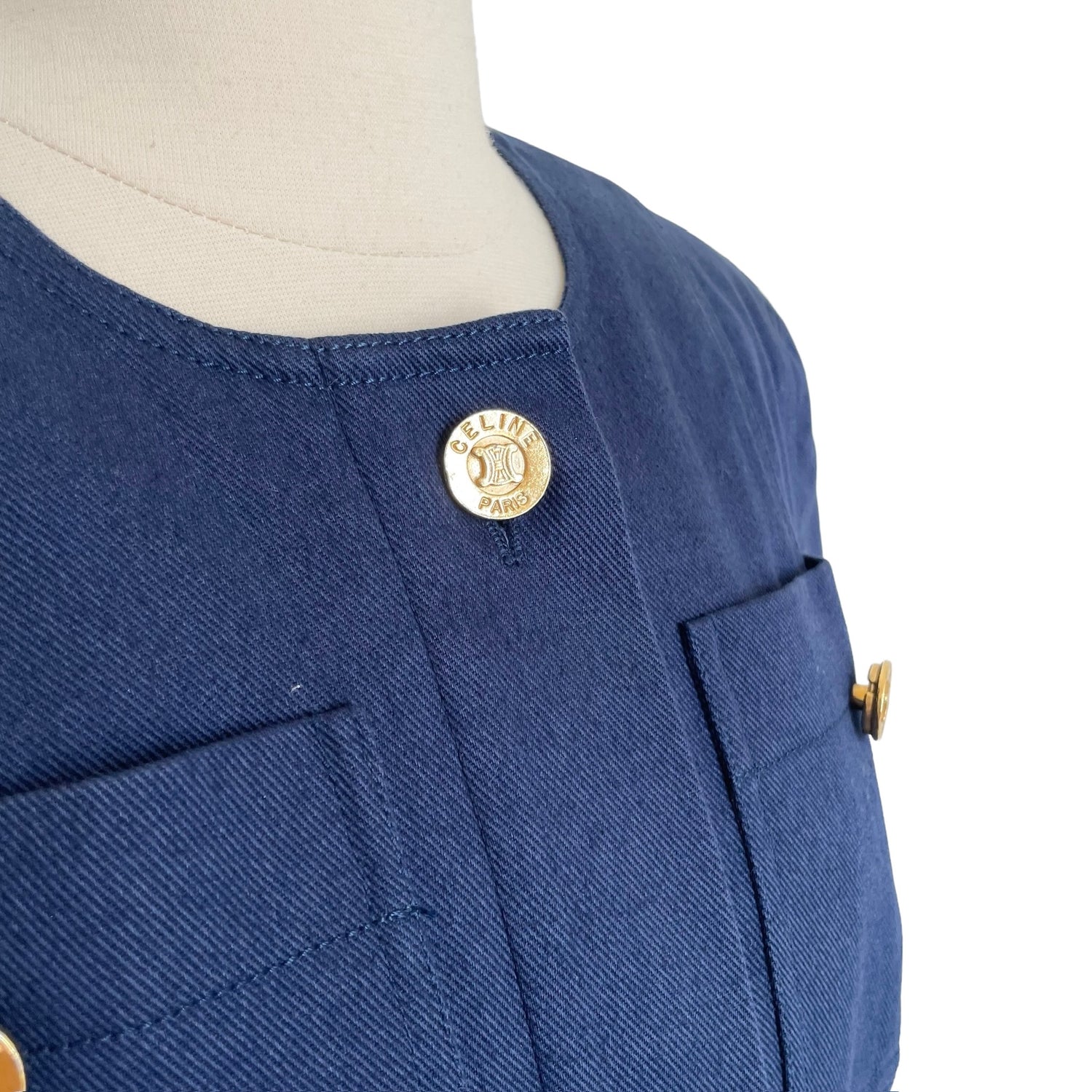 Celine vintage blue bomber jacket. Gold-tone logo buttons. Designer size 40.