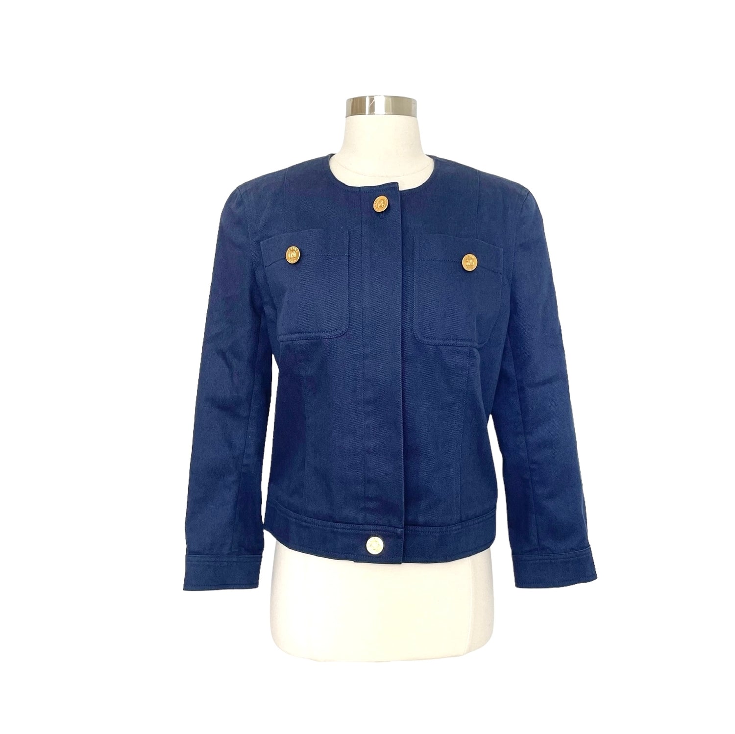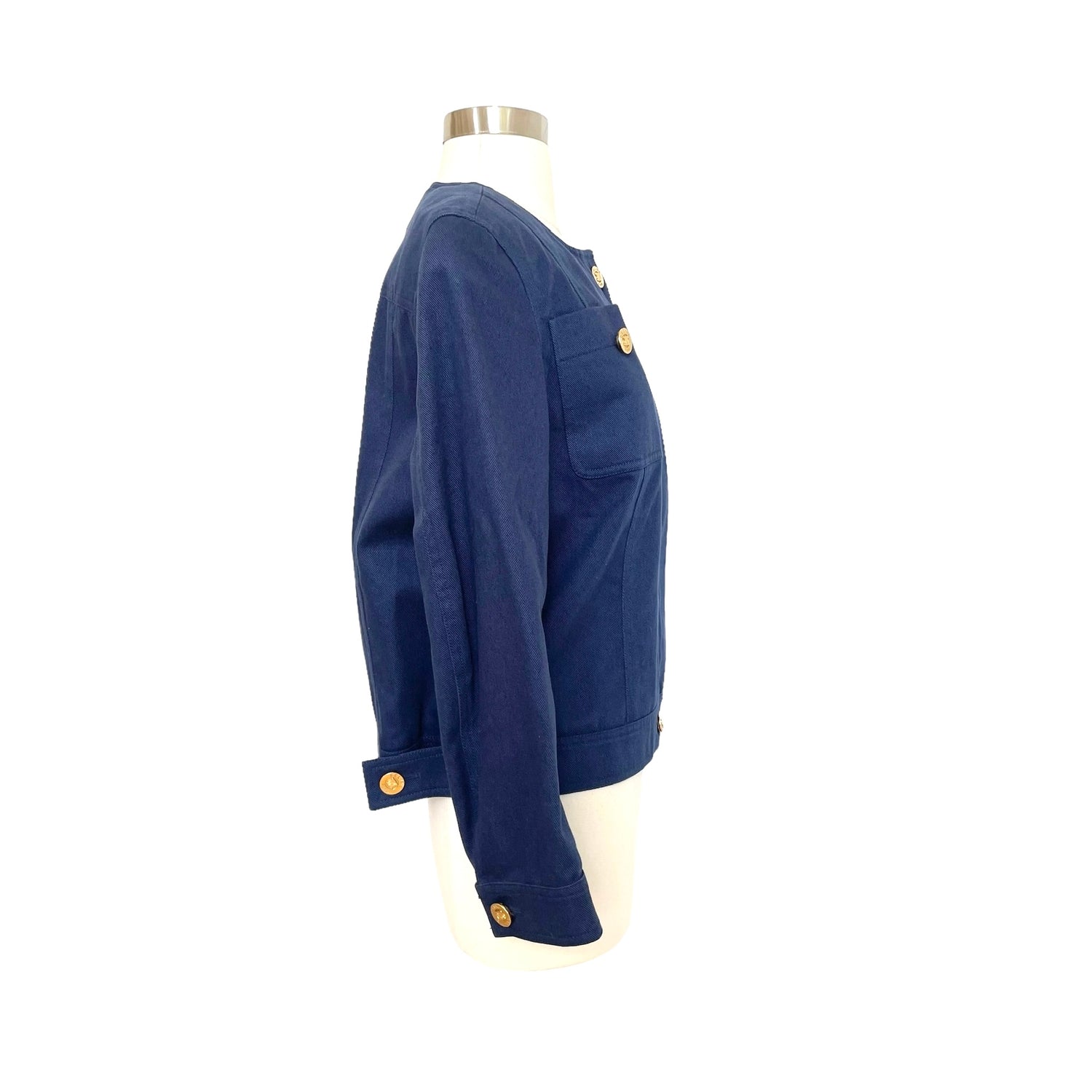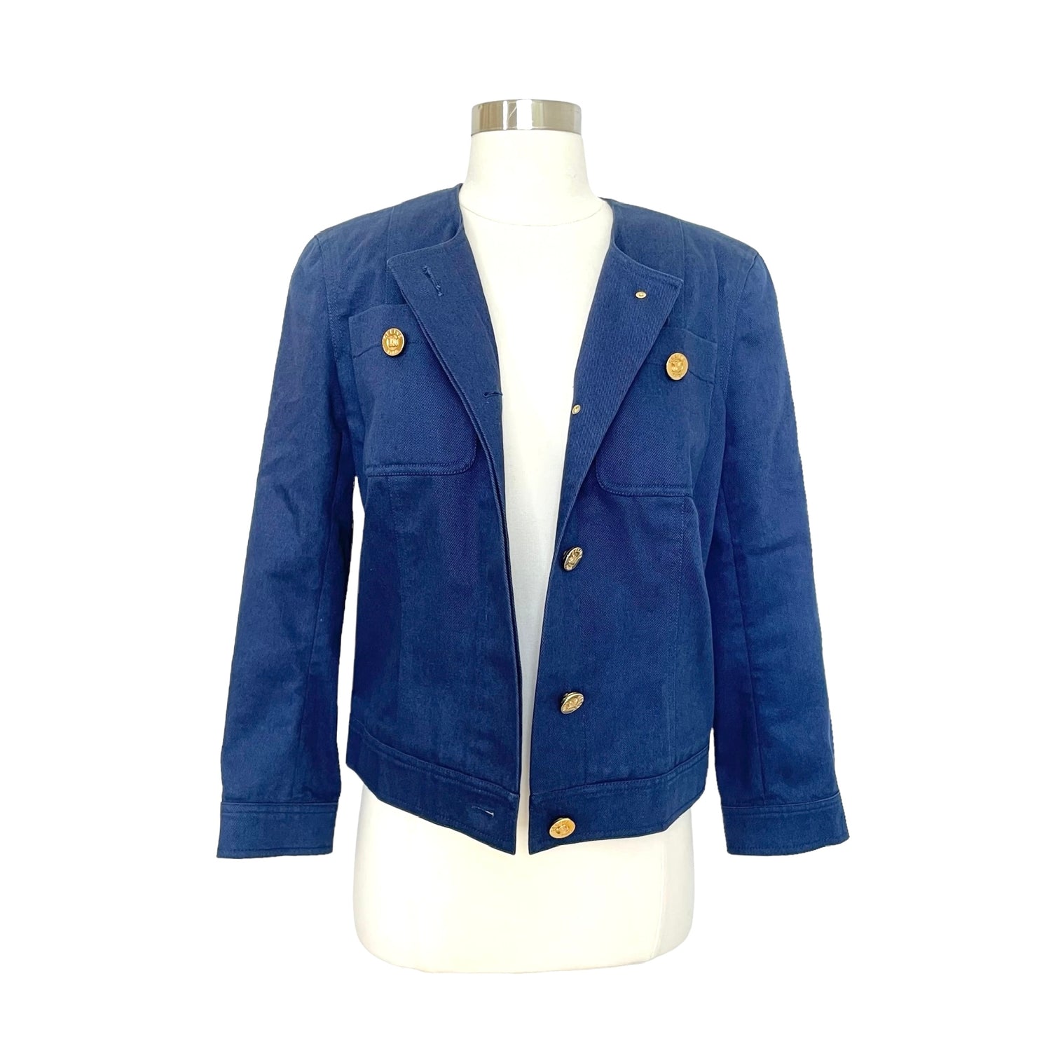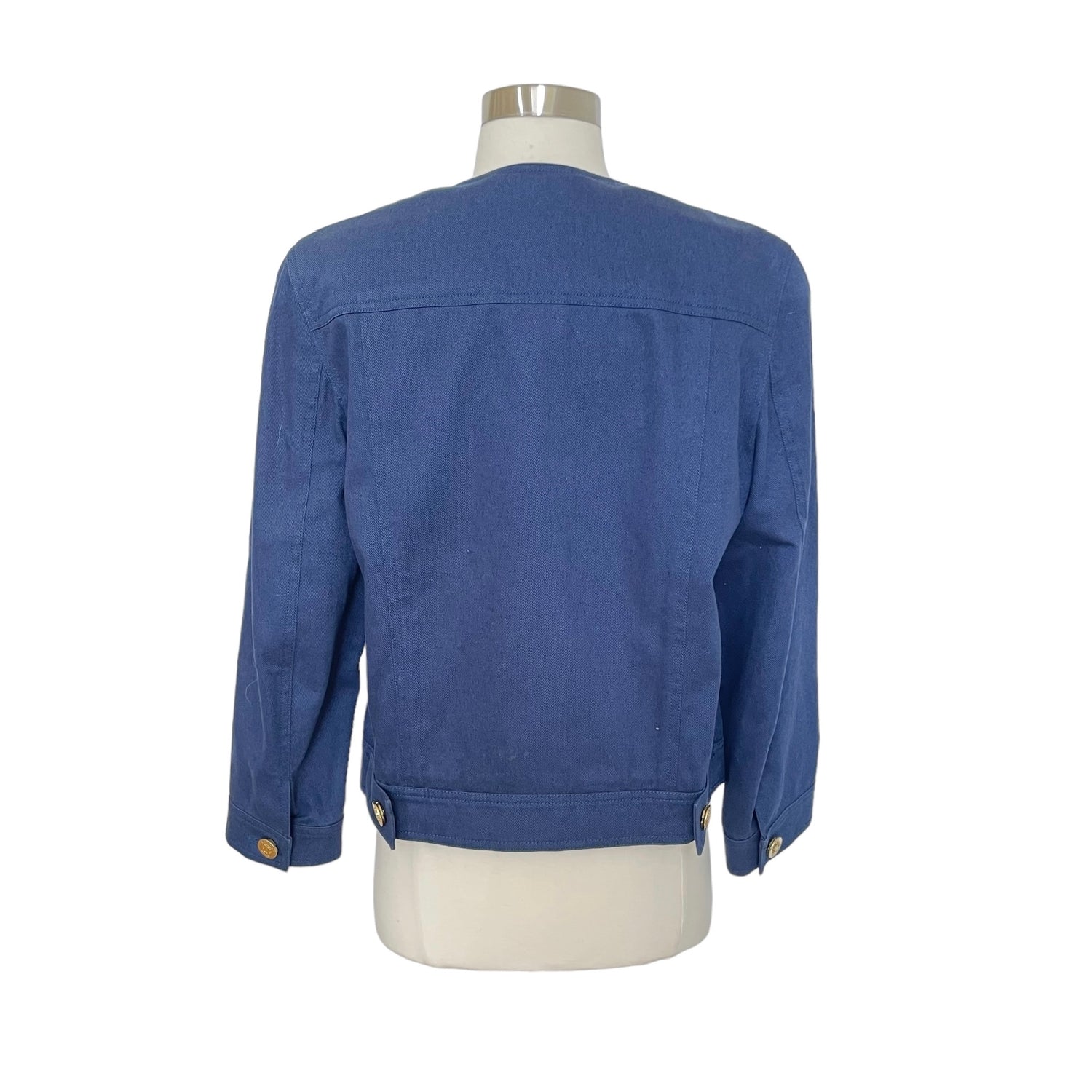 Celine vintage blue bomber jacket. Gold-tone logo buttons. Designer size 40.