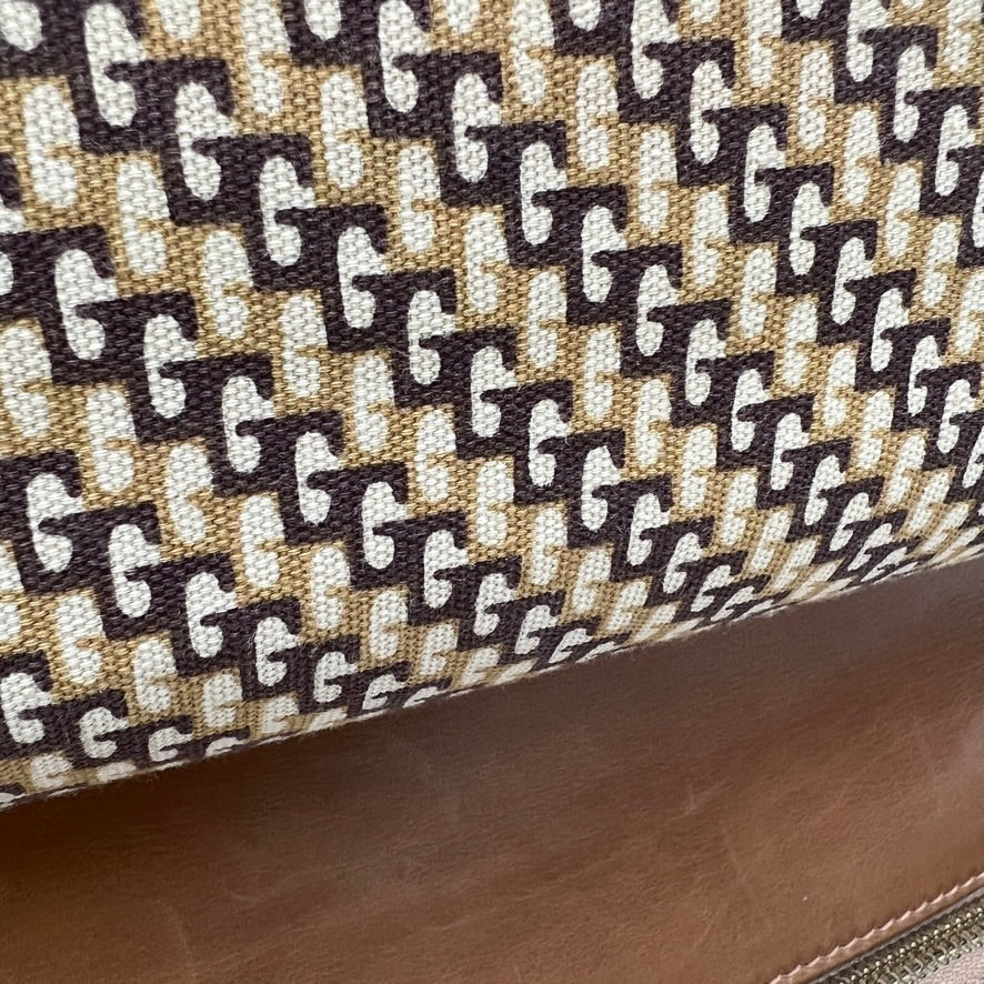 Gucci vintage travel bag. Handle on top. Brown/tan leather. Zipper closure and top flap. GG canvas inside. Very clean inside. This item is vintage and a collector, it comes with marks from the passing of time. It takes a special person to collect it and give it a new life. Gold-tone hardware. Protective feet at base.