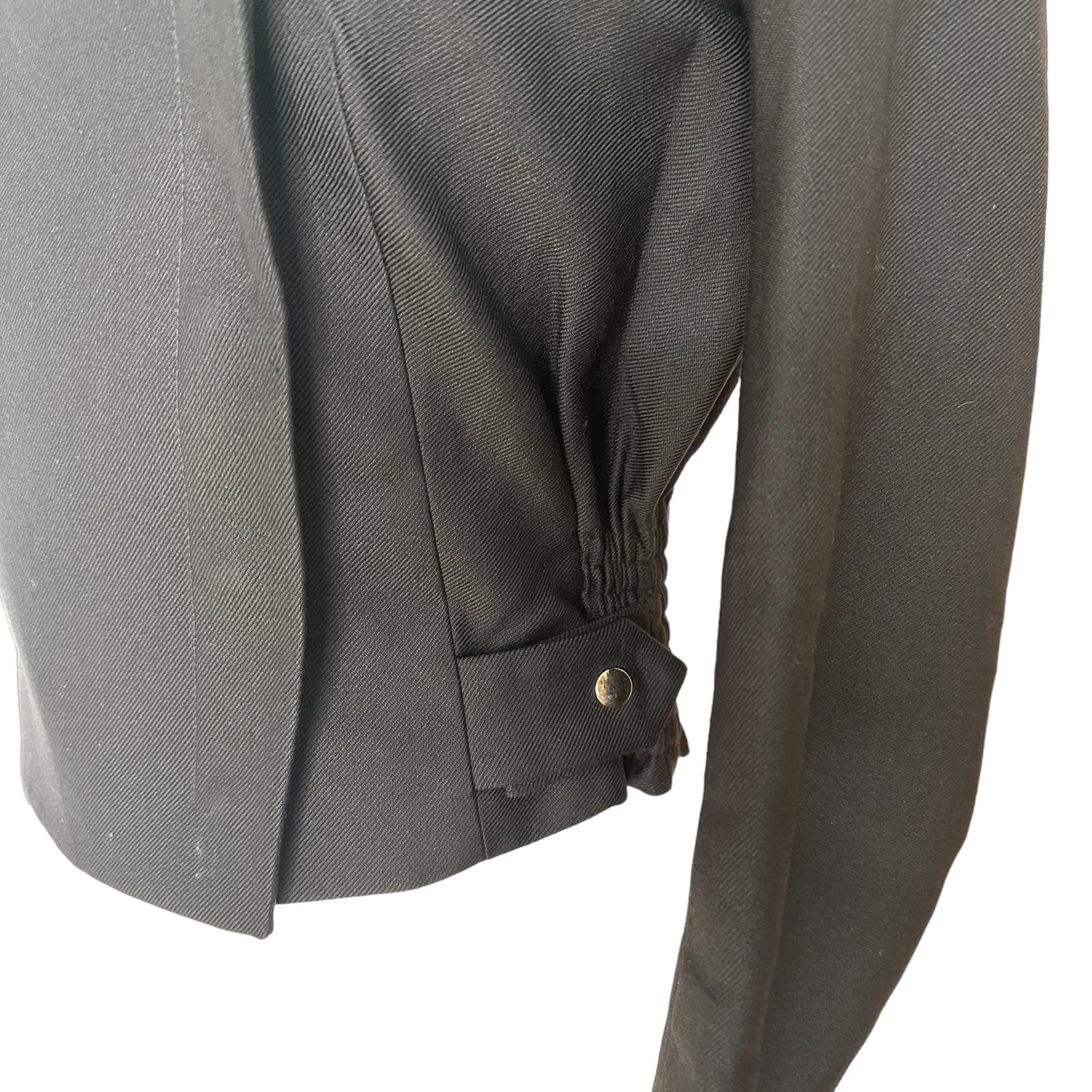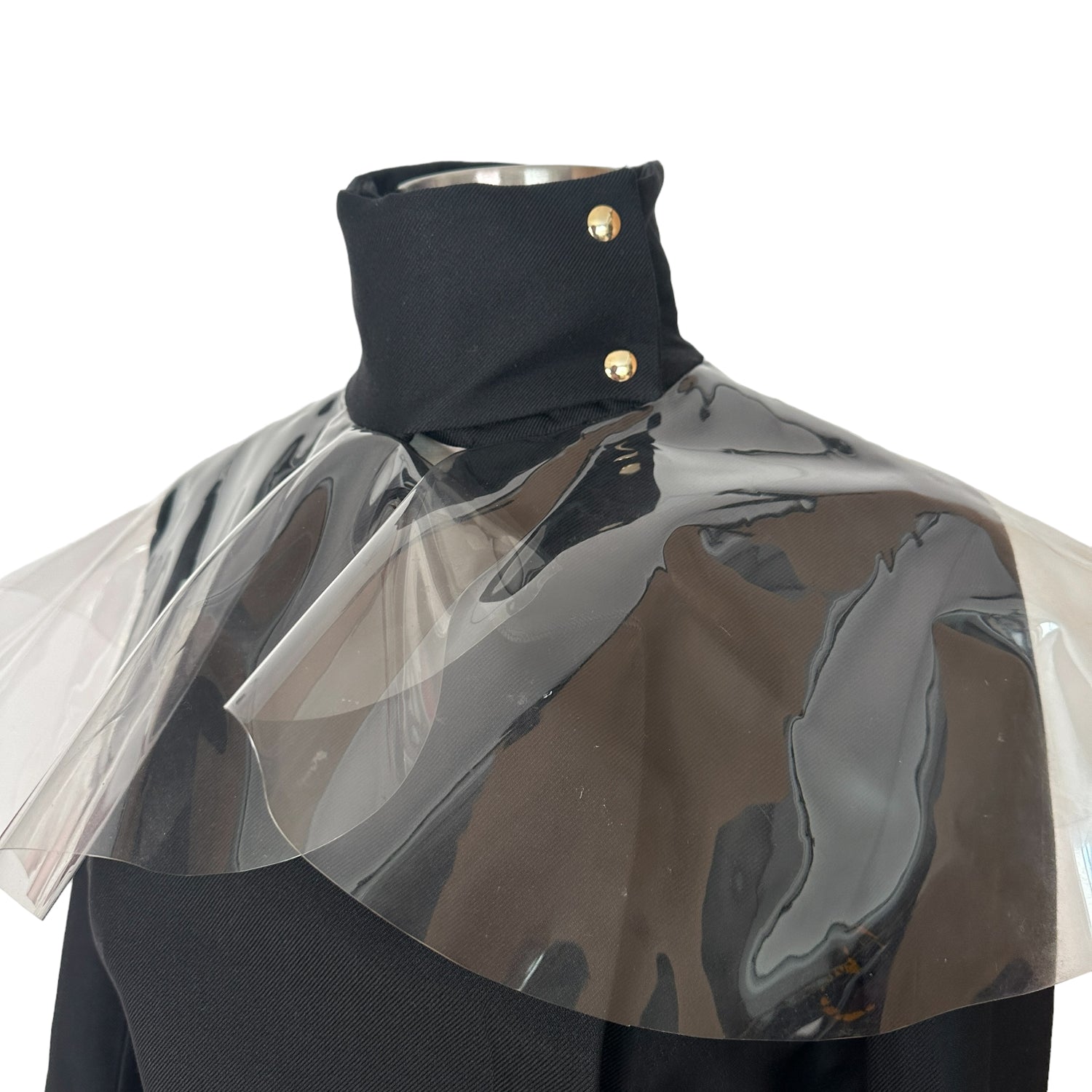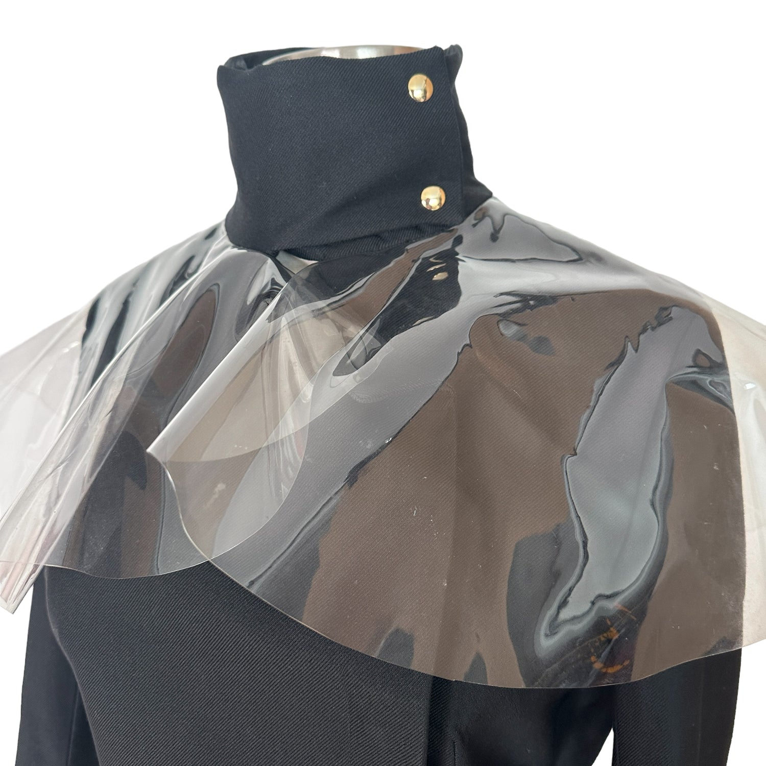 Yves Saint Laurent vintage black jacket. Snap button closure in gold-tone hardware. Stand alone collar with clear plexiglass shoulders. Fall/Winter 2010 collection. Designer size 36.