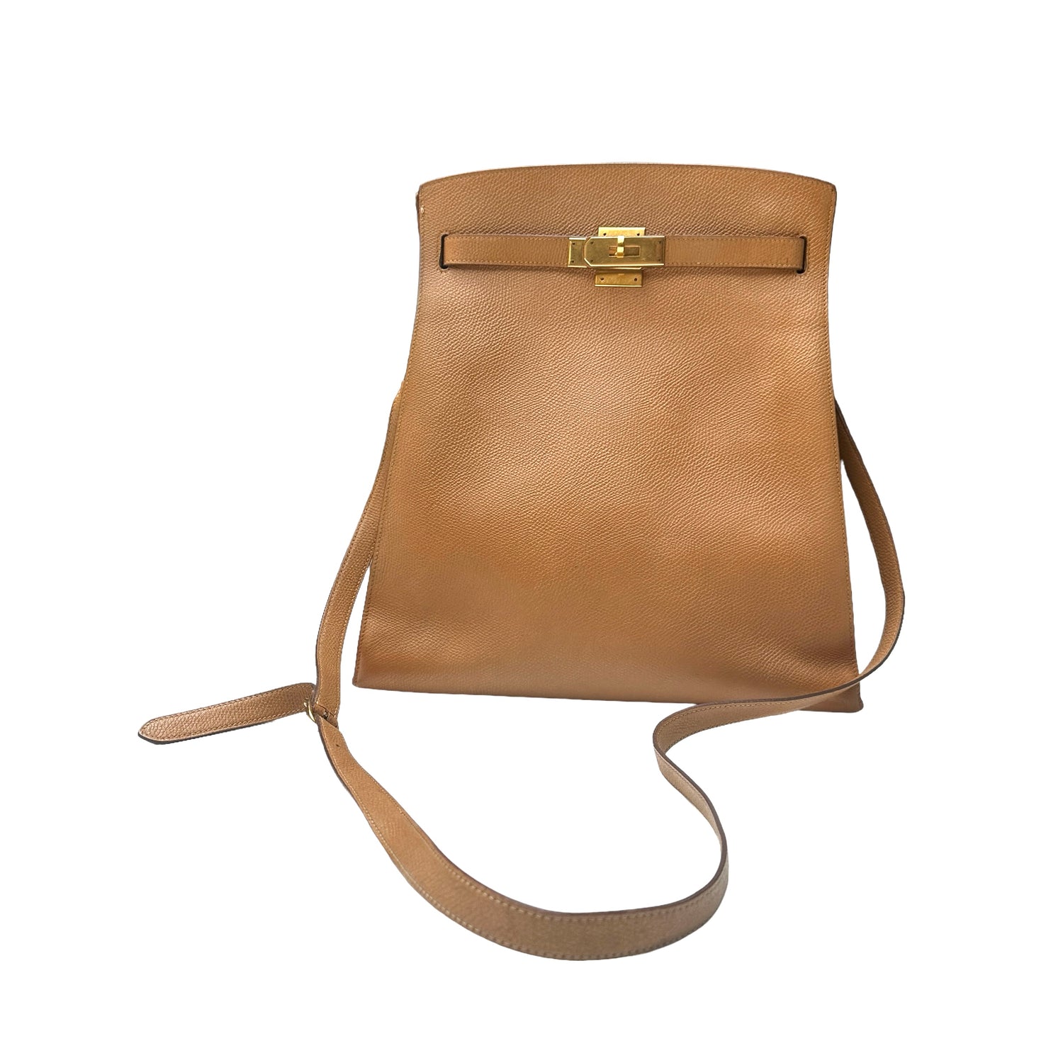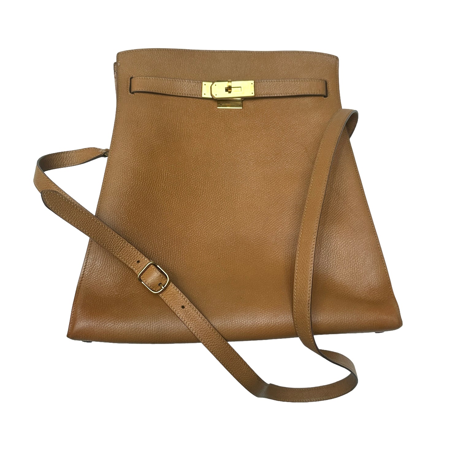 Hermes Kelly sport. Gold plated hardware. Gold leather. Gold on gold is the most sought after color combination for this bag! Adjustable strap. This bag was discontinued and it is a collectible.