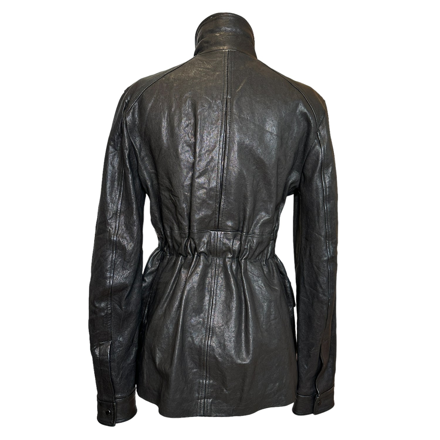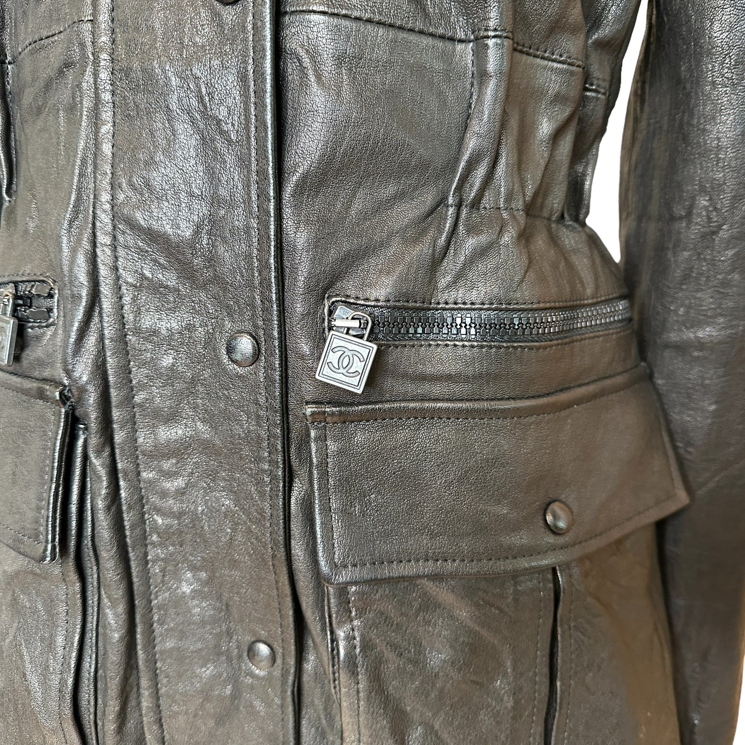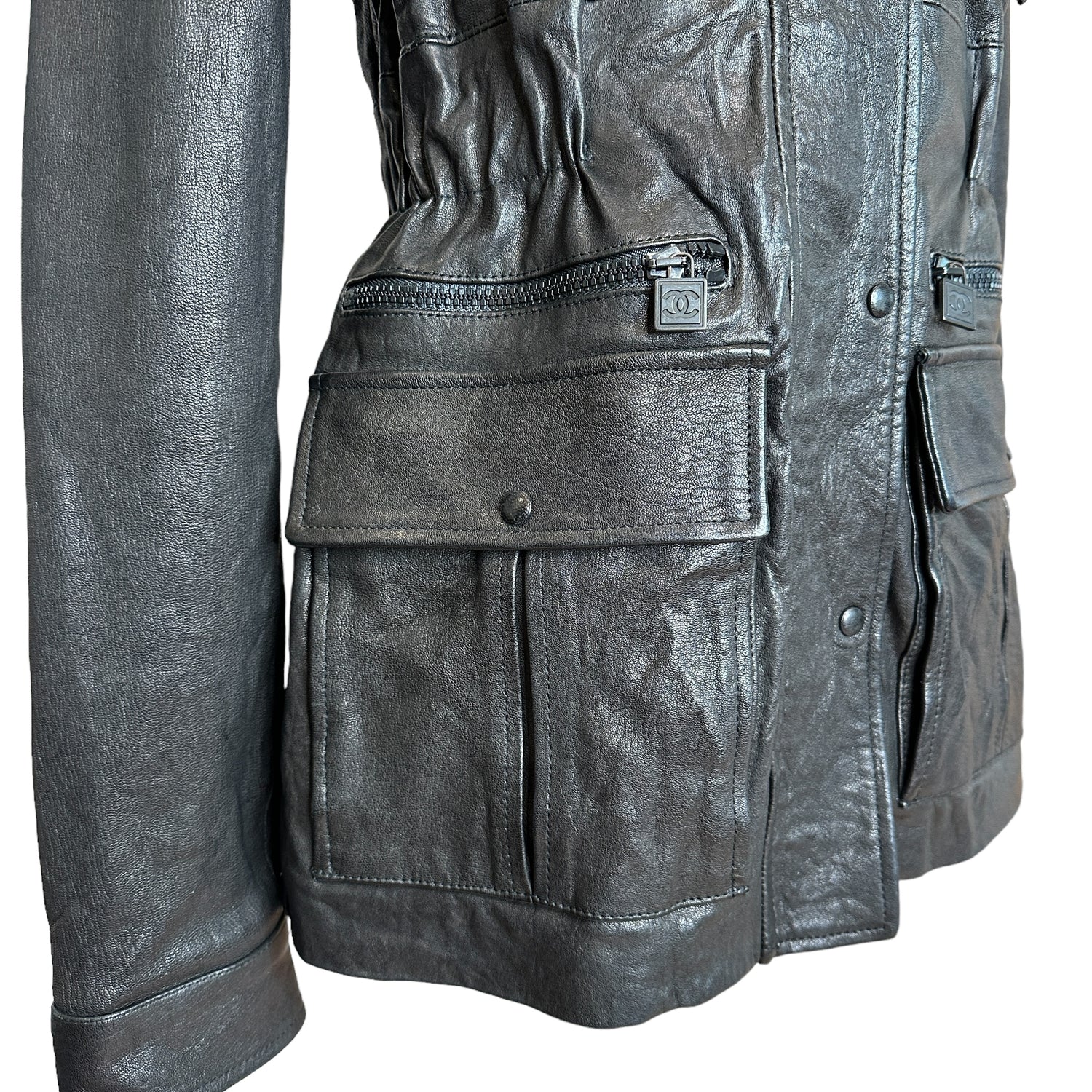 Chanel vintage leather jacket. Autumn 2007 collection by Karl Lagerfeld. Flap pockets at front and two zipper pockets at front. Elasticized waist. Designer size 40.