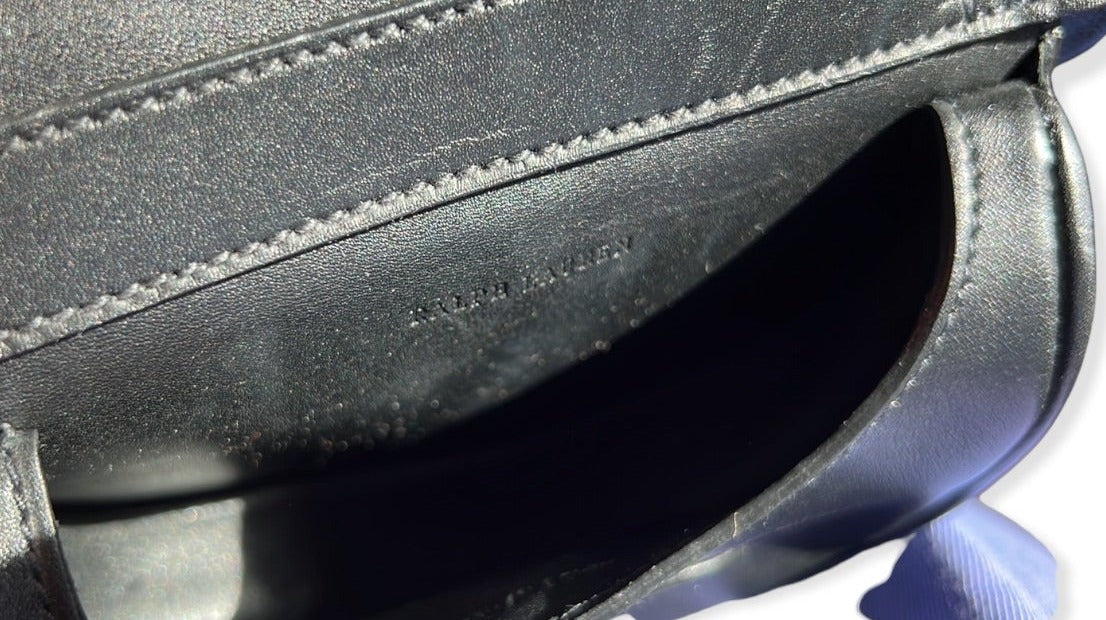 Lovely Vintage Ralph Lauren piece. Shoulder bag in black Leather. Silver tone hardware. Lock Closure, Leather lining.
