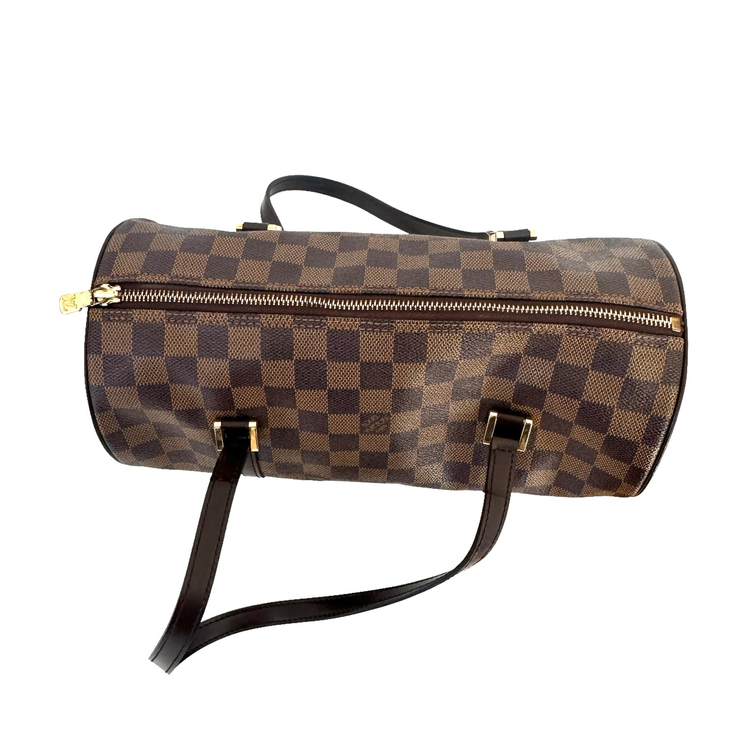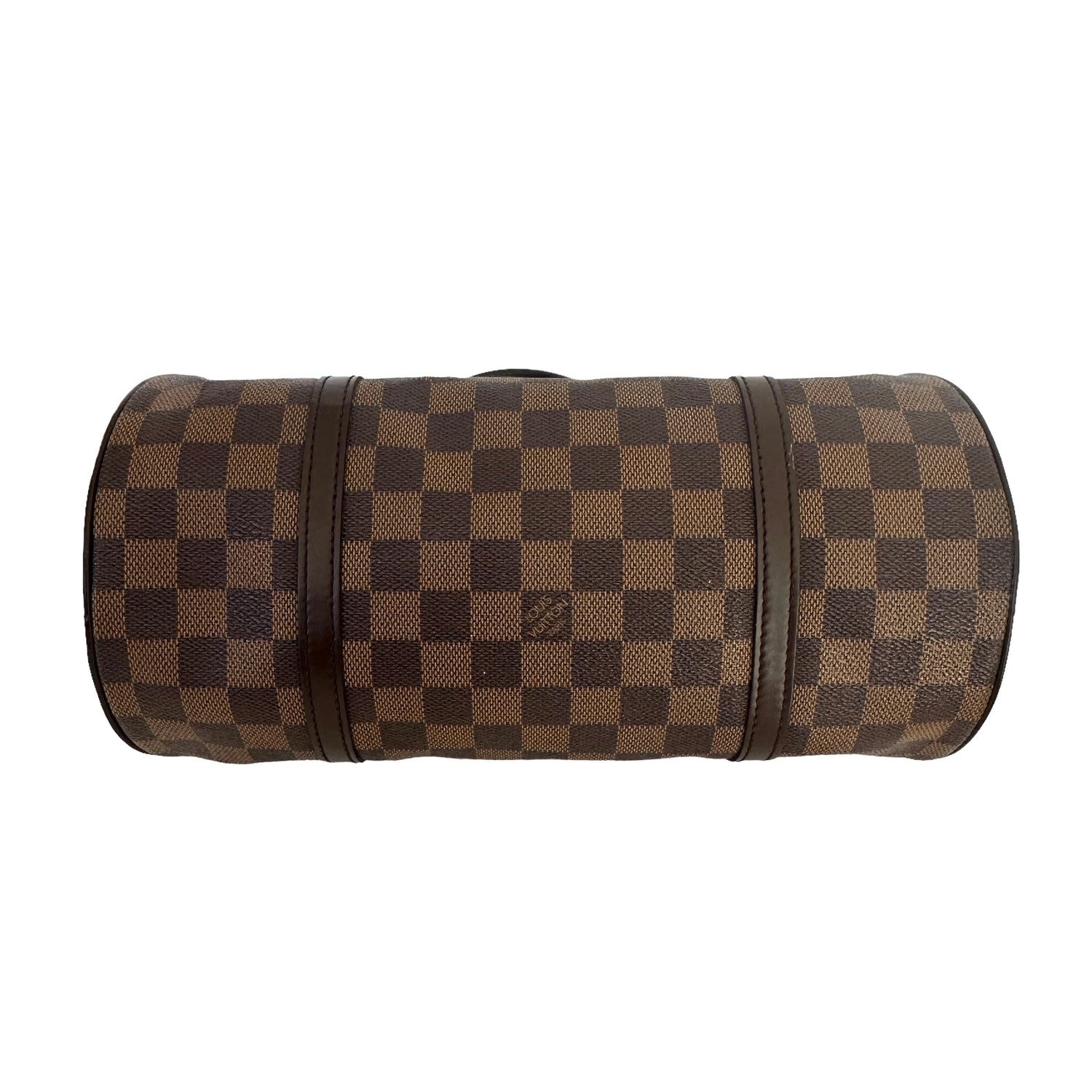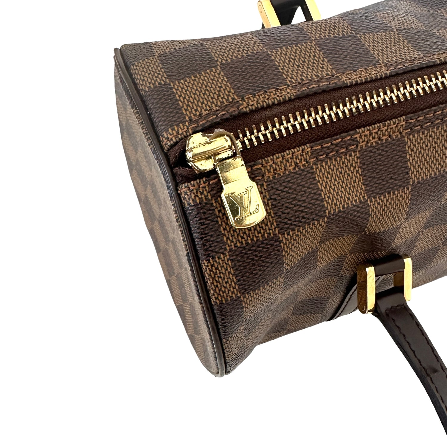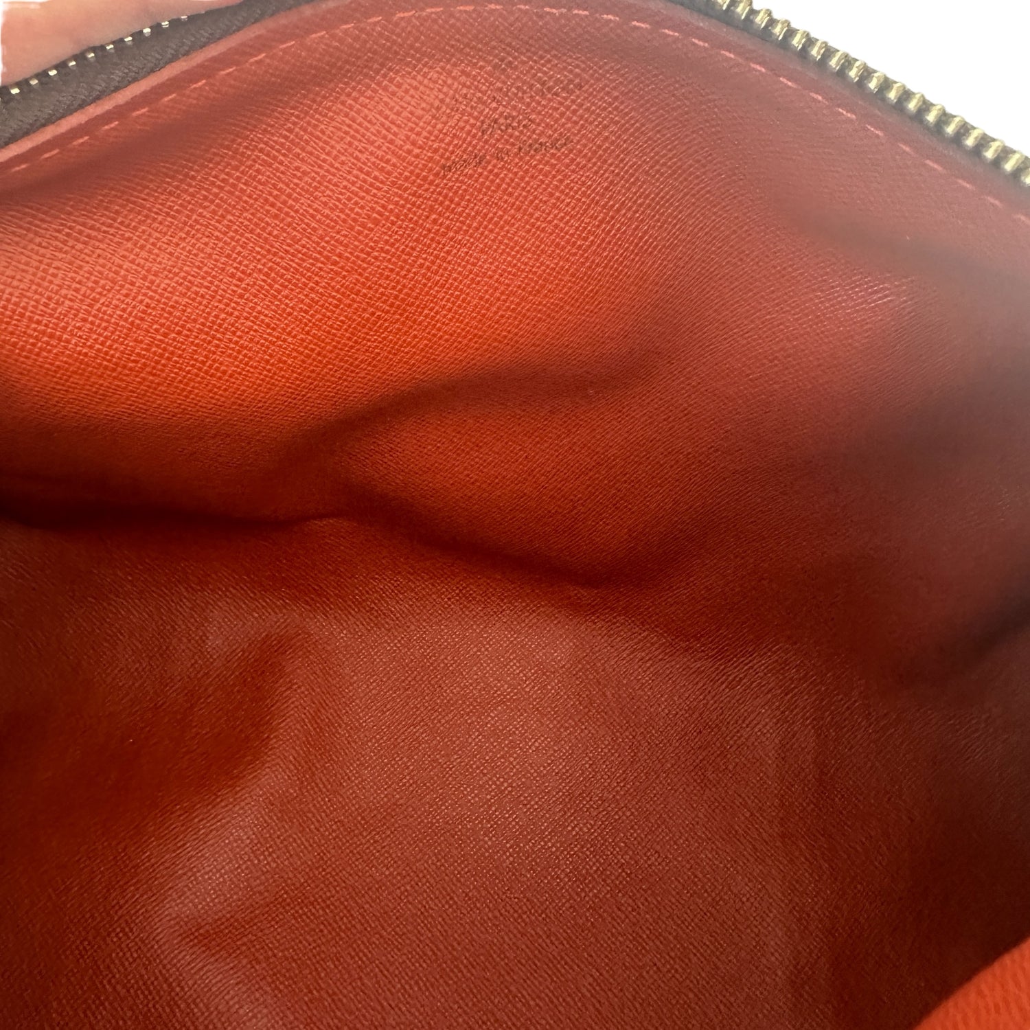 Louis Vuitton Papillon bag. Damier brown coated canvas. Leather trims. Zipper at top. Mini Papillon pouch included and detachable.