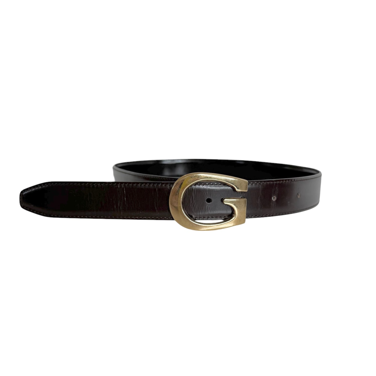 Gucci reversible vintage belt. Black and dark brown smooth leather. G logo gold buckle.