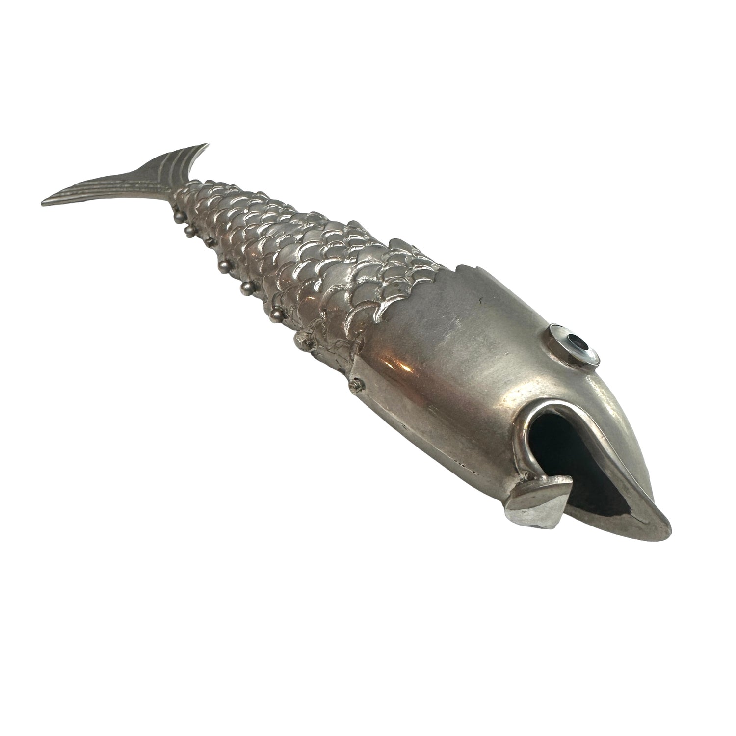 Gucci vintage bottle opener. Vintage from the 1970s. Articulated fish bottle opener. Murano glass eyes details.