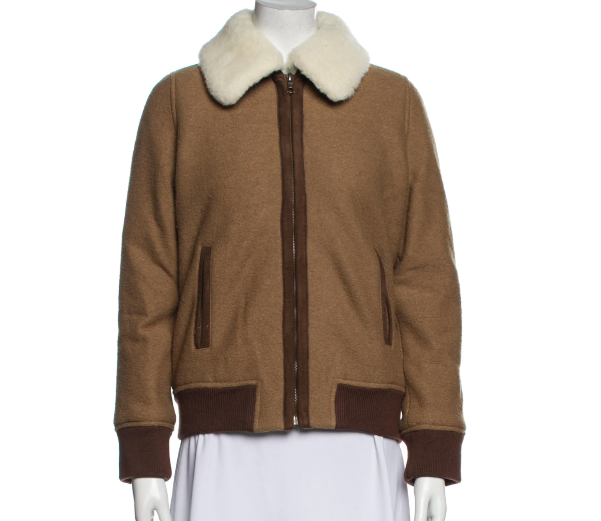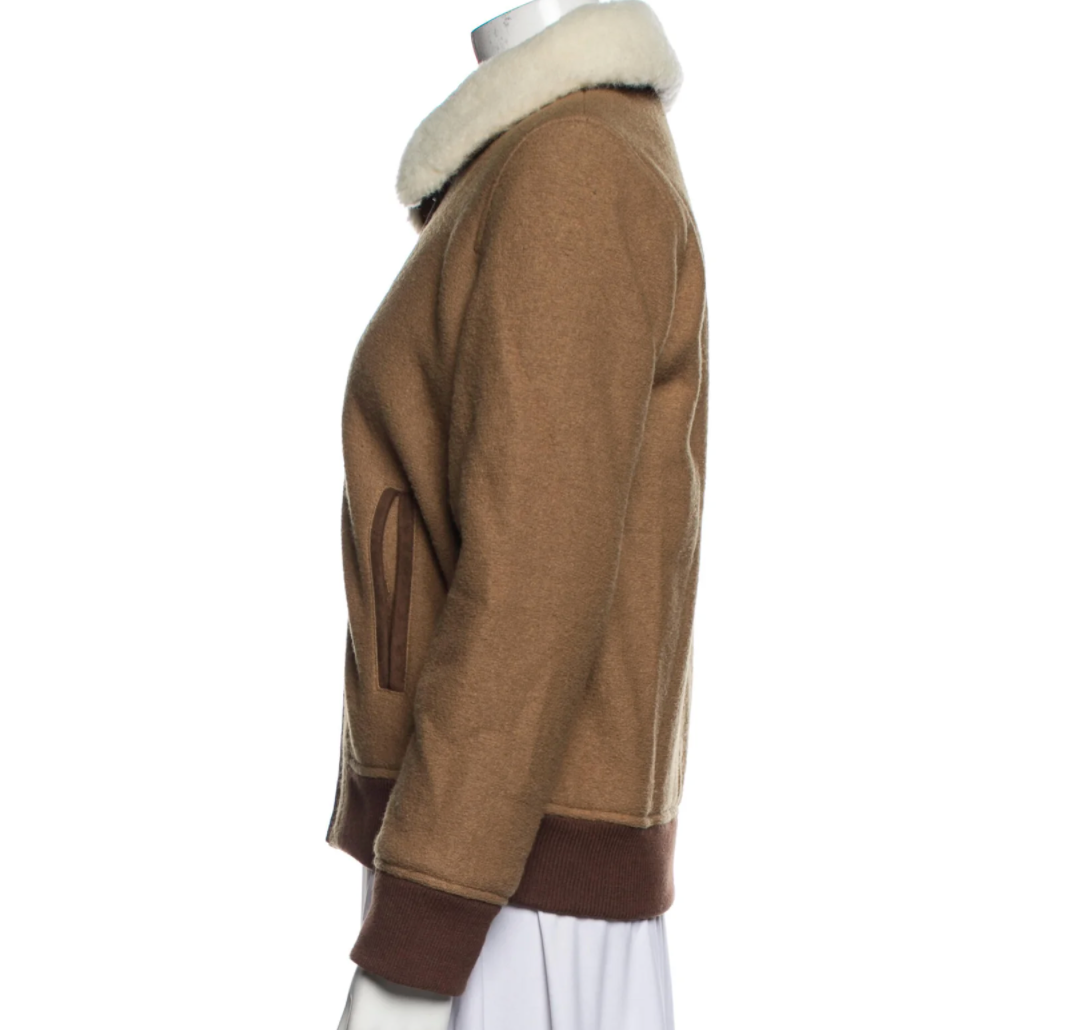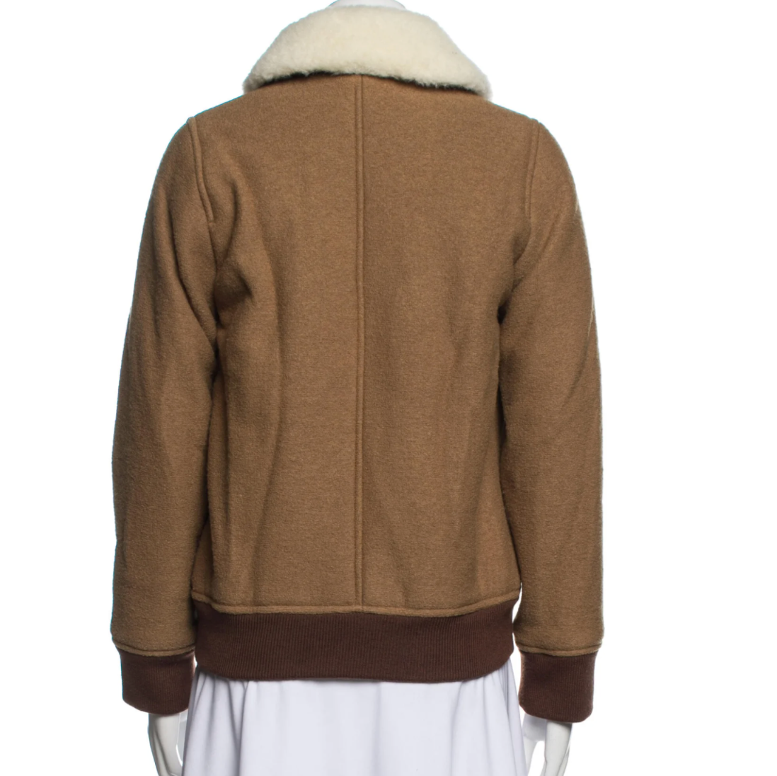 Brown, Faux Fur Trim & Pointed Collar, Slit Pockets & Zip Closure