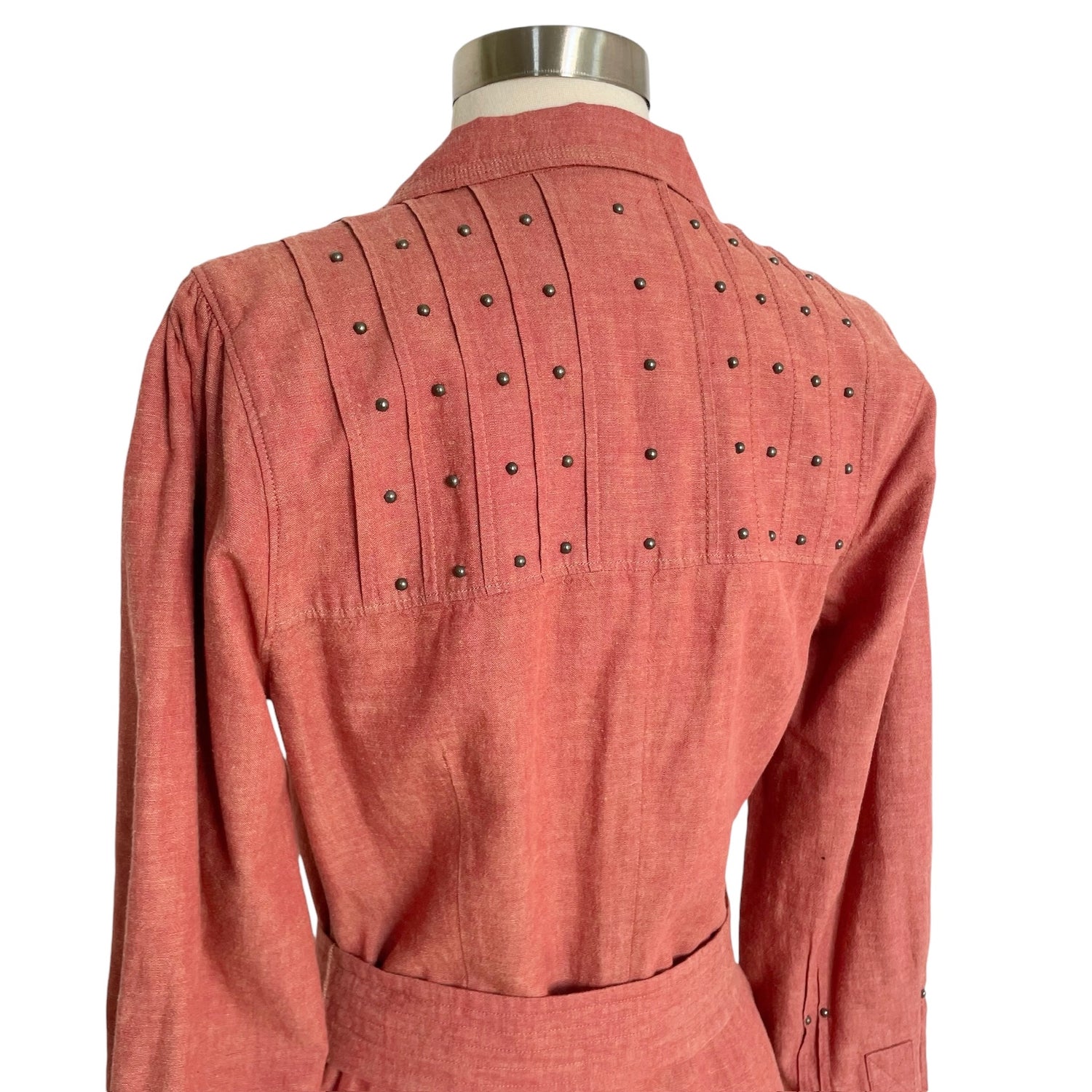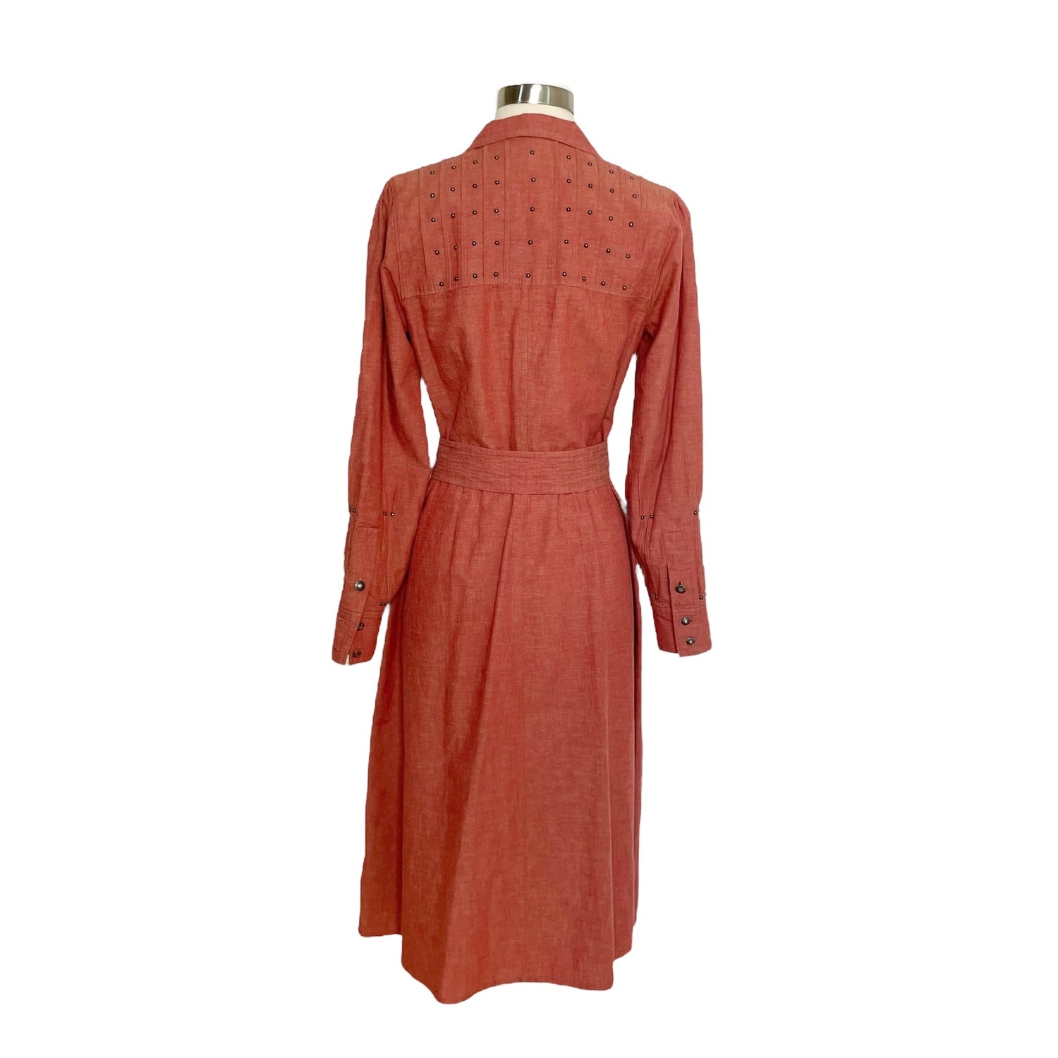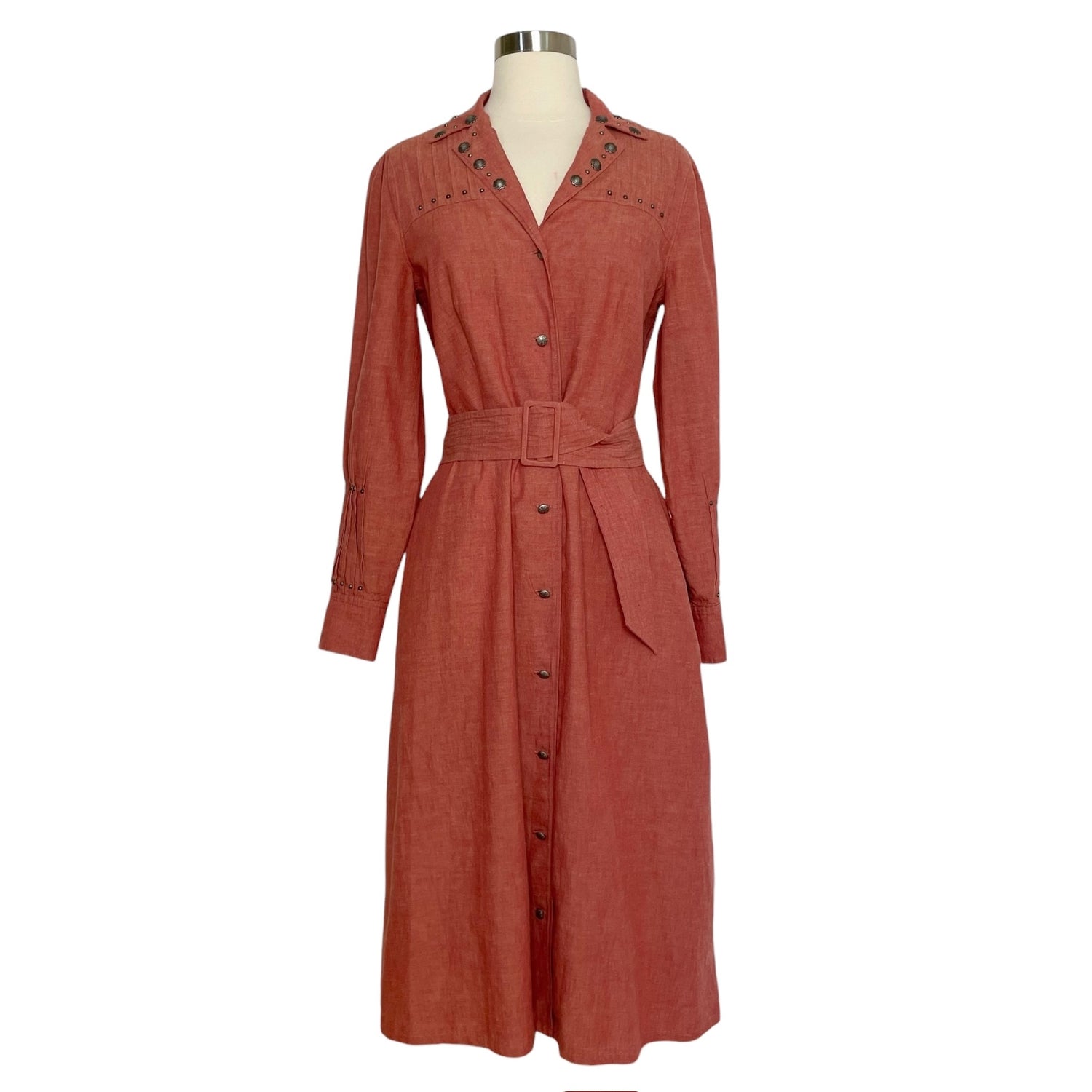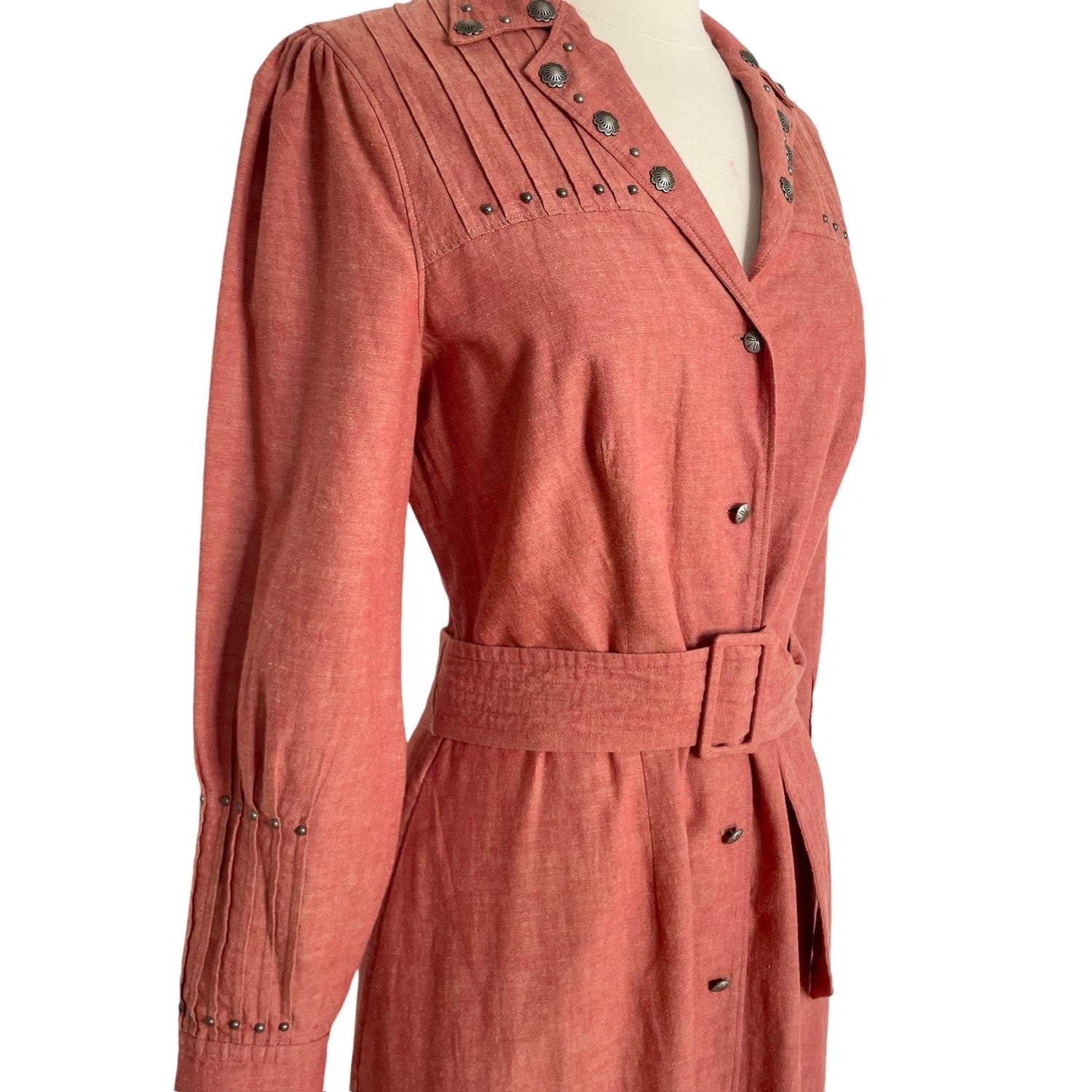 Ralph Lauren RRL dress. Brushed silver embellishments. Pointed collar. Button closure at front. Removable belt. Designer size 3.