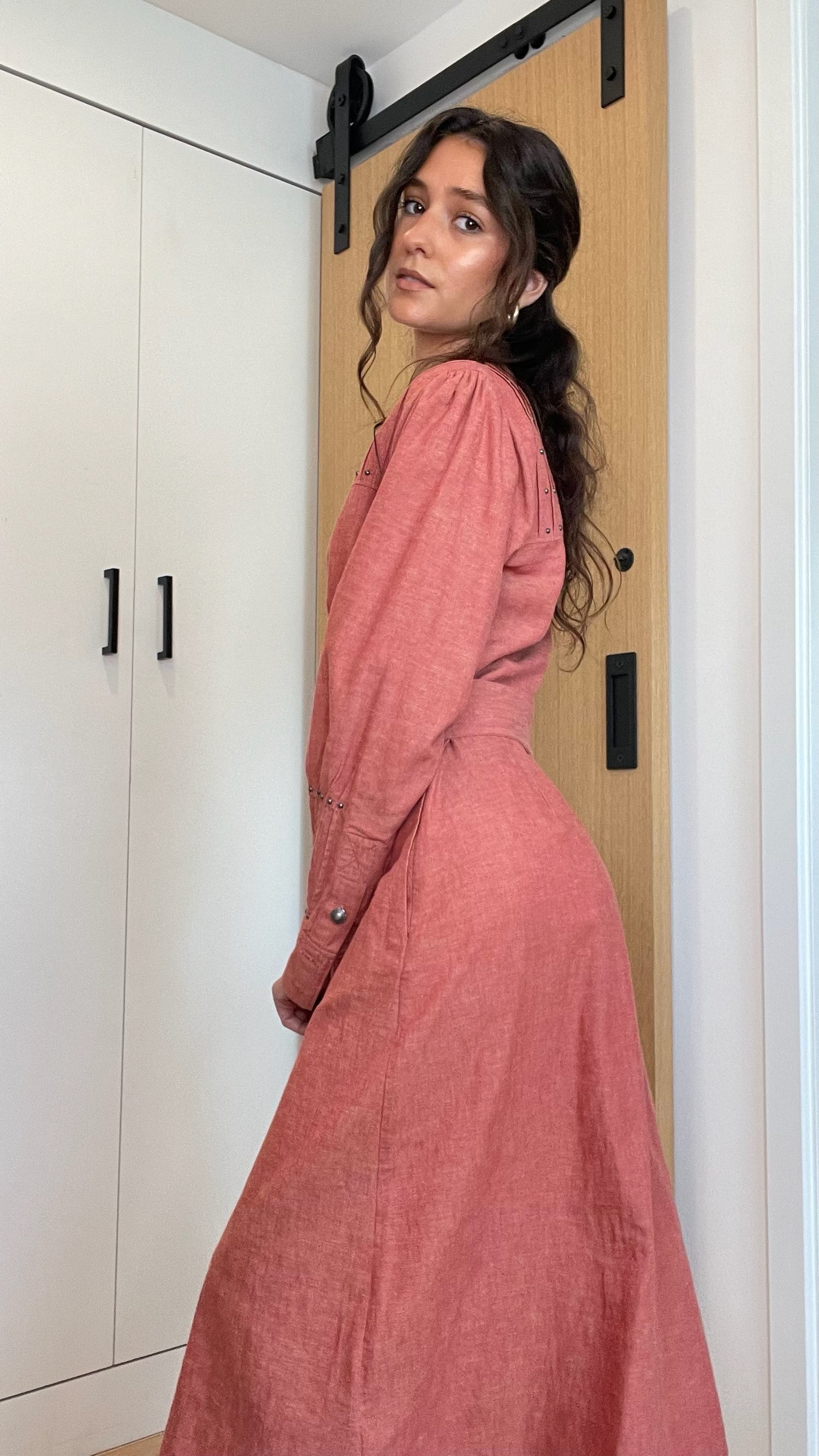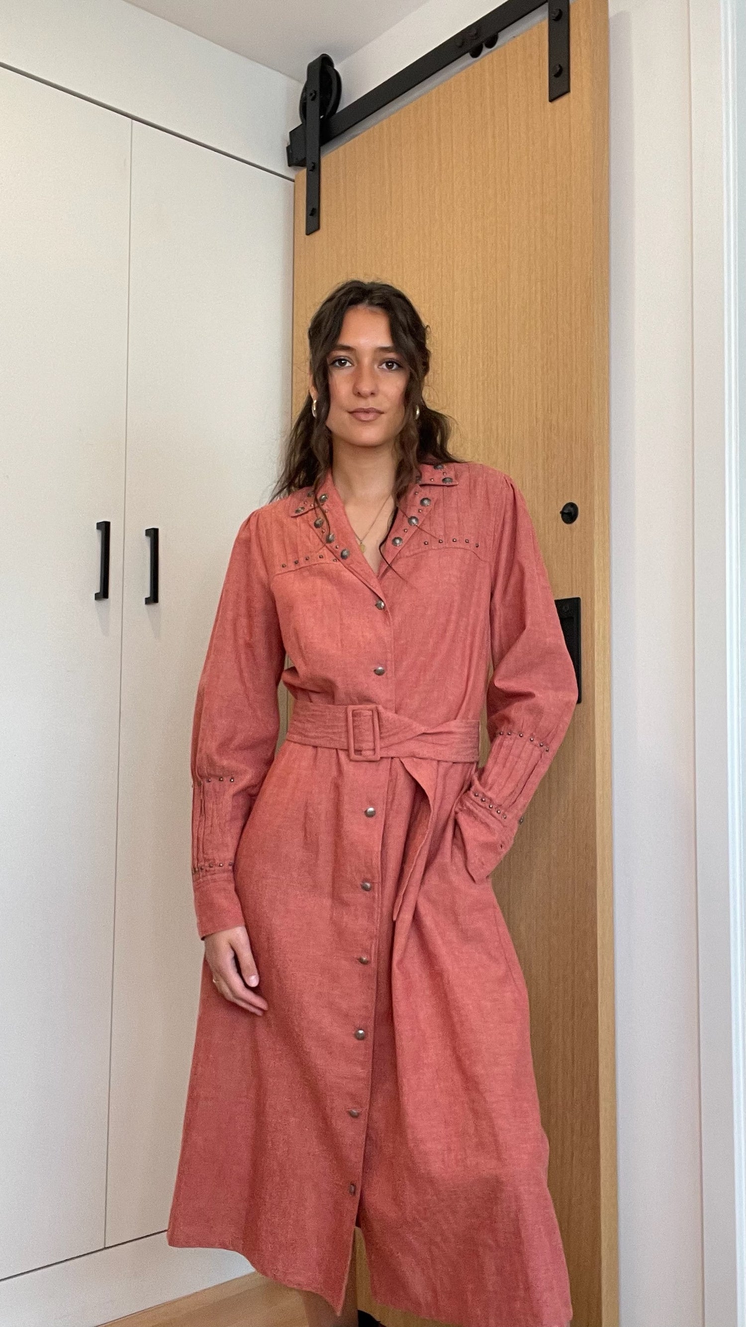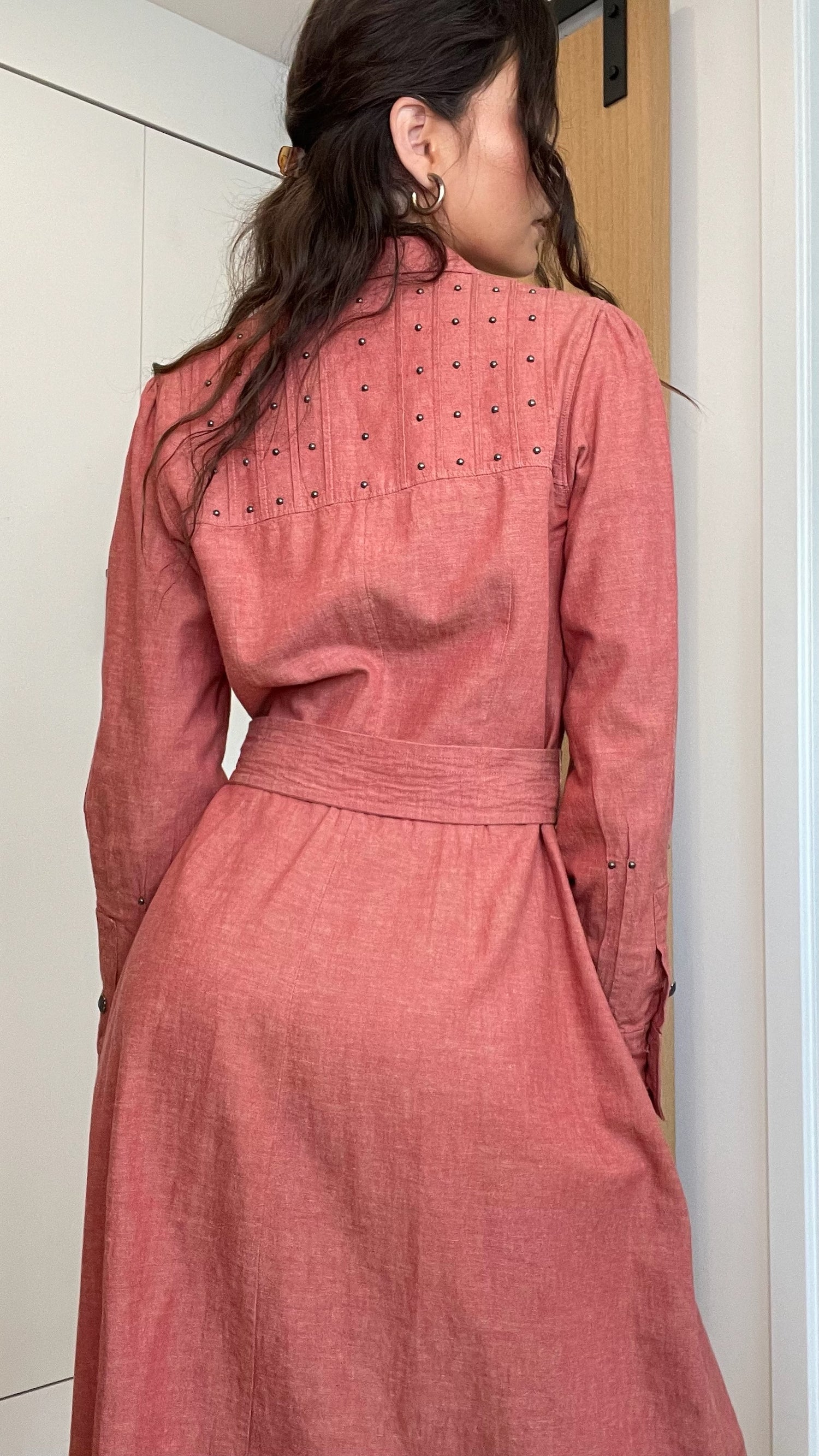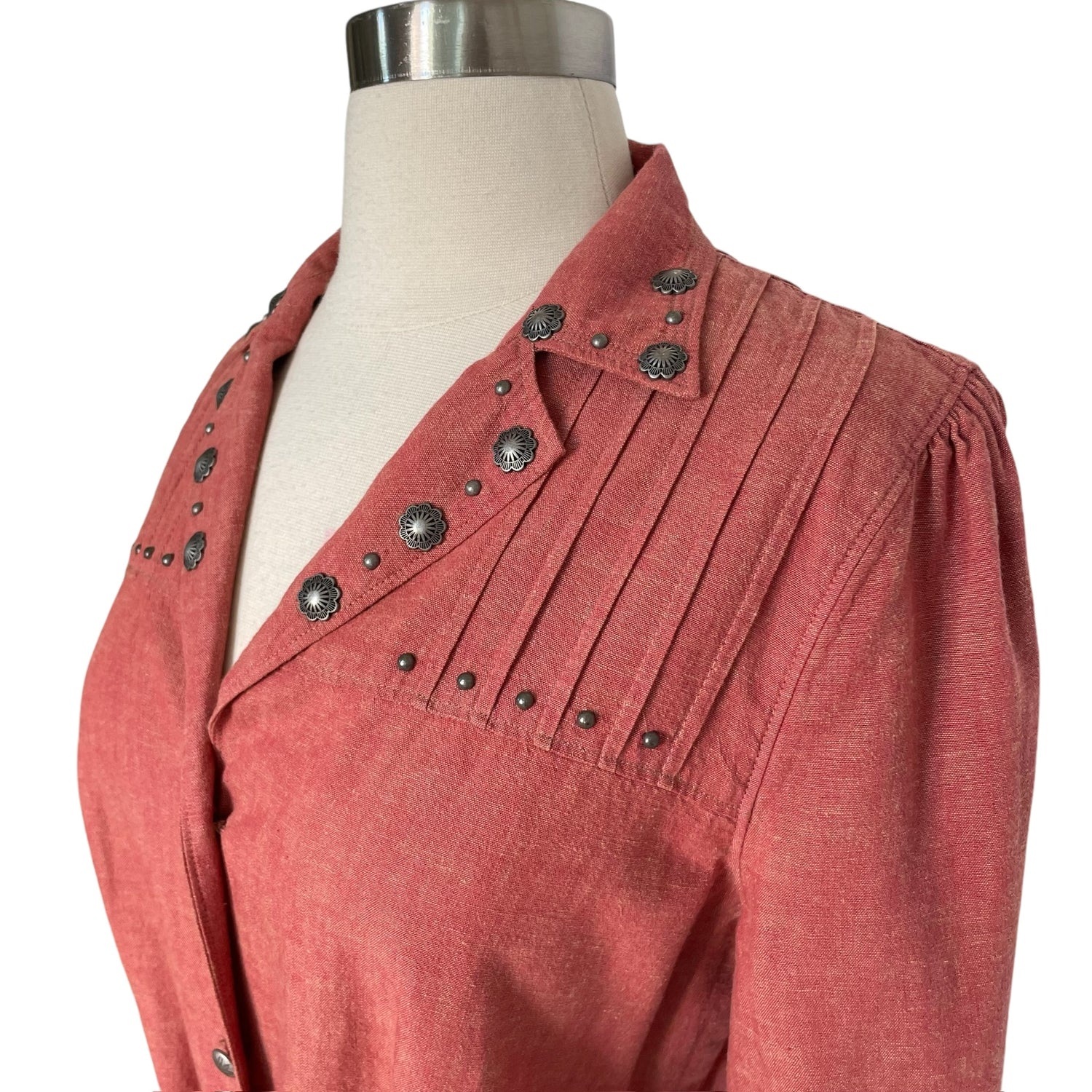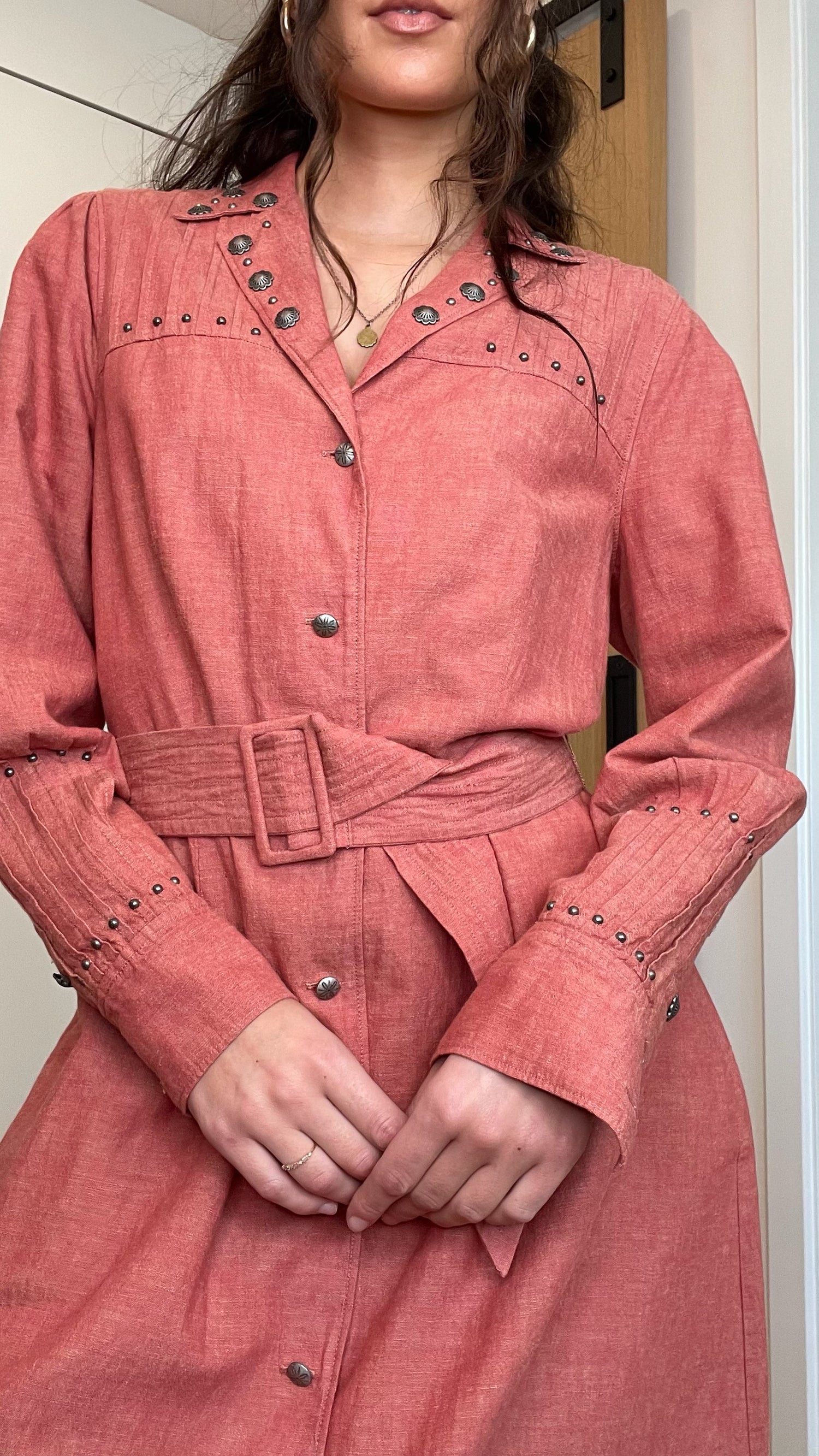 Ralph Lauren RRL dress. Brushed silver embellishments. Pointed collar. Button closure at front. Removable belt. Designer size 3.