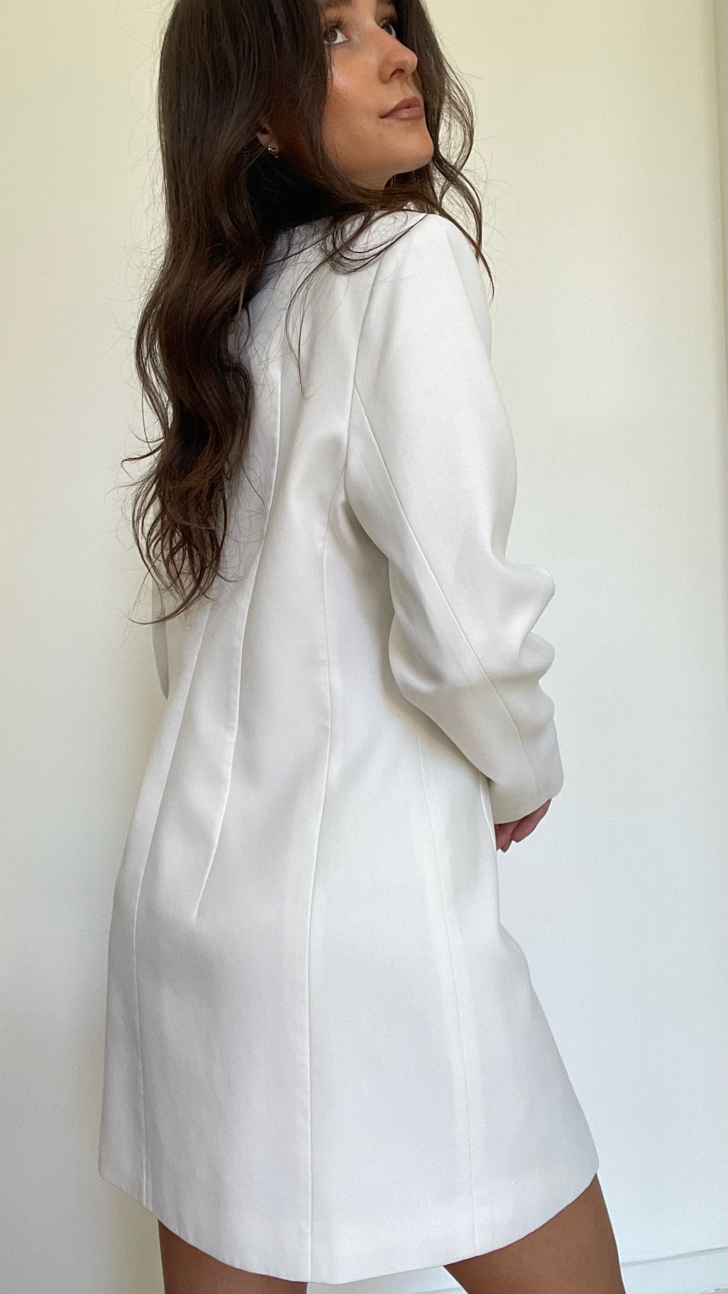 Rotate white blazer with crystal buttons. Pointed collar. Designer size 6.