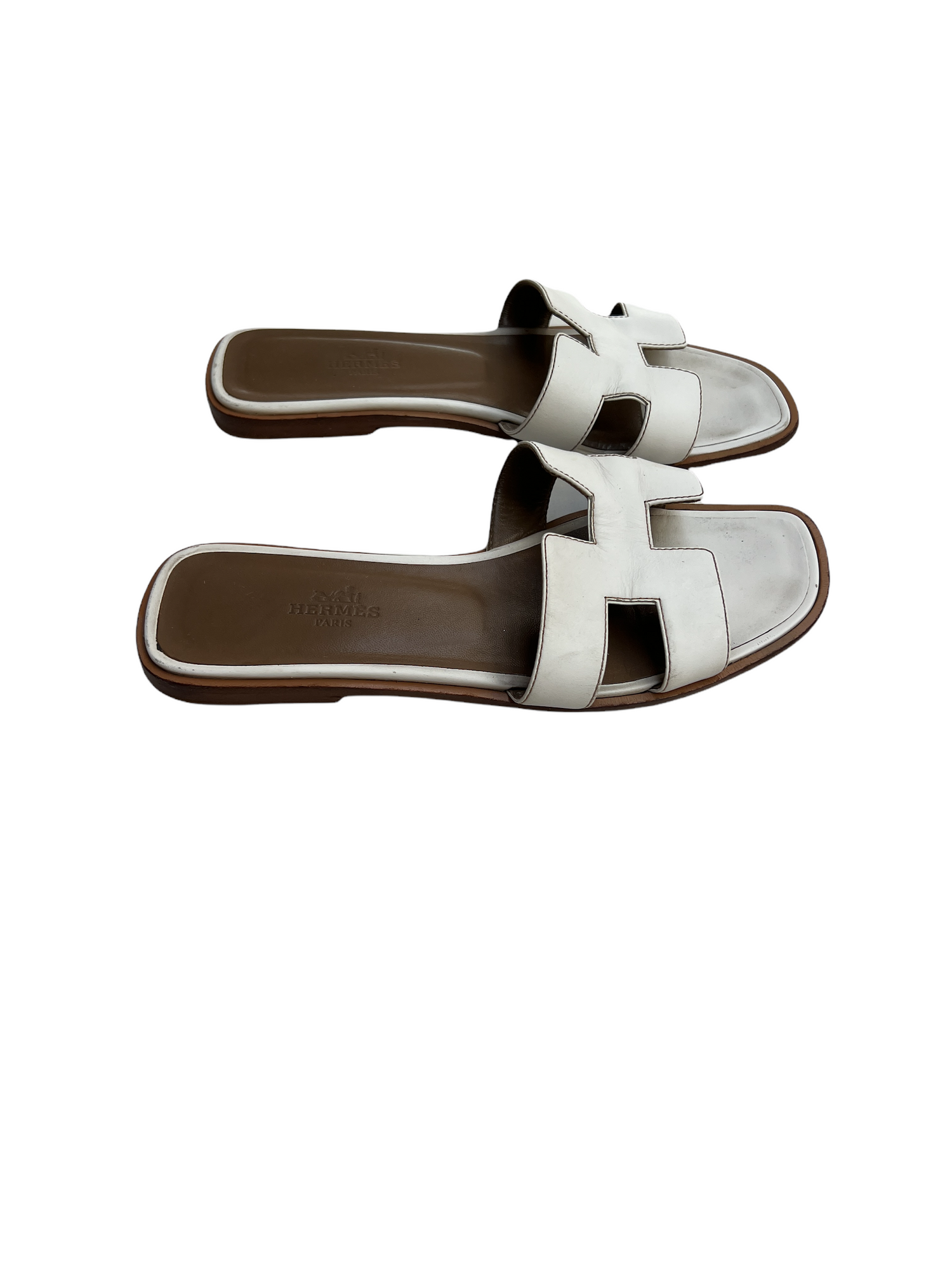 Condtion: Good. Some discoloration and leather creases. Scuffs at outer soles.