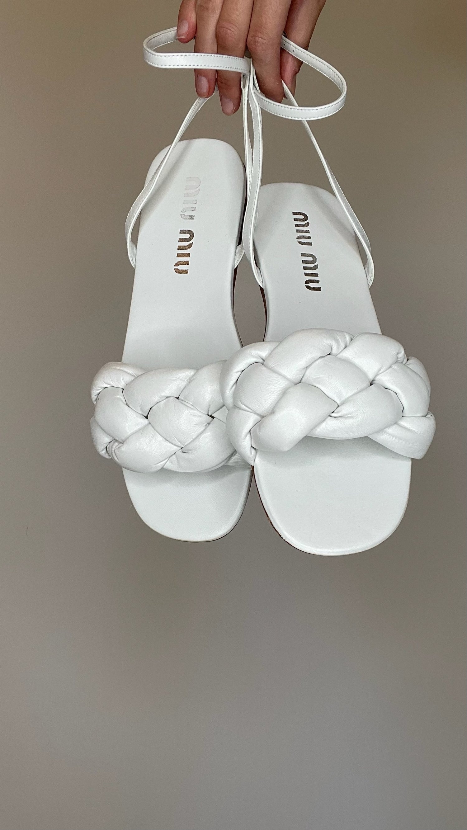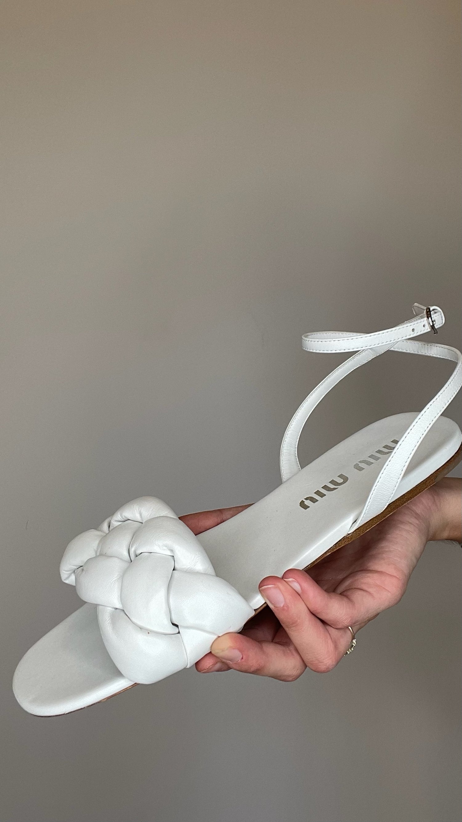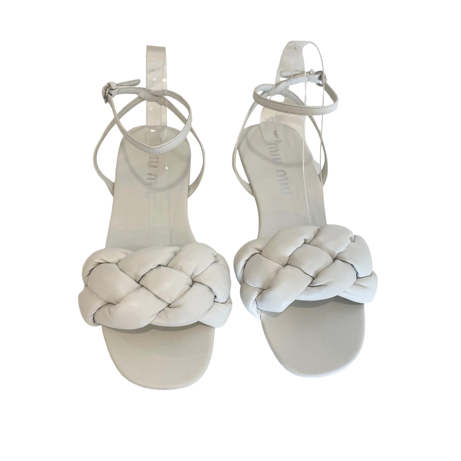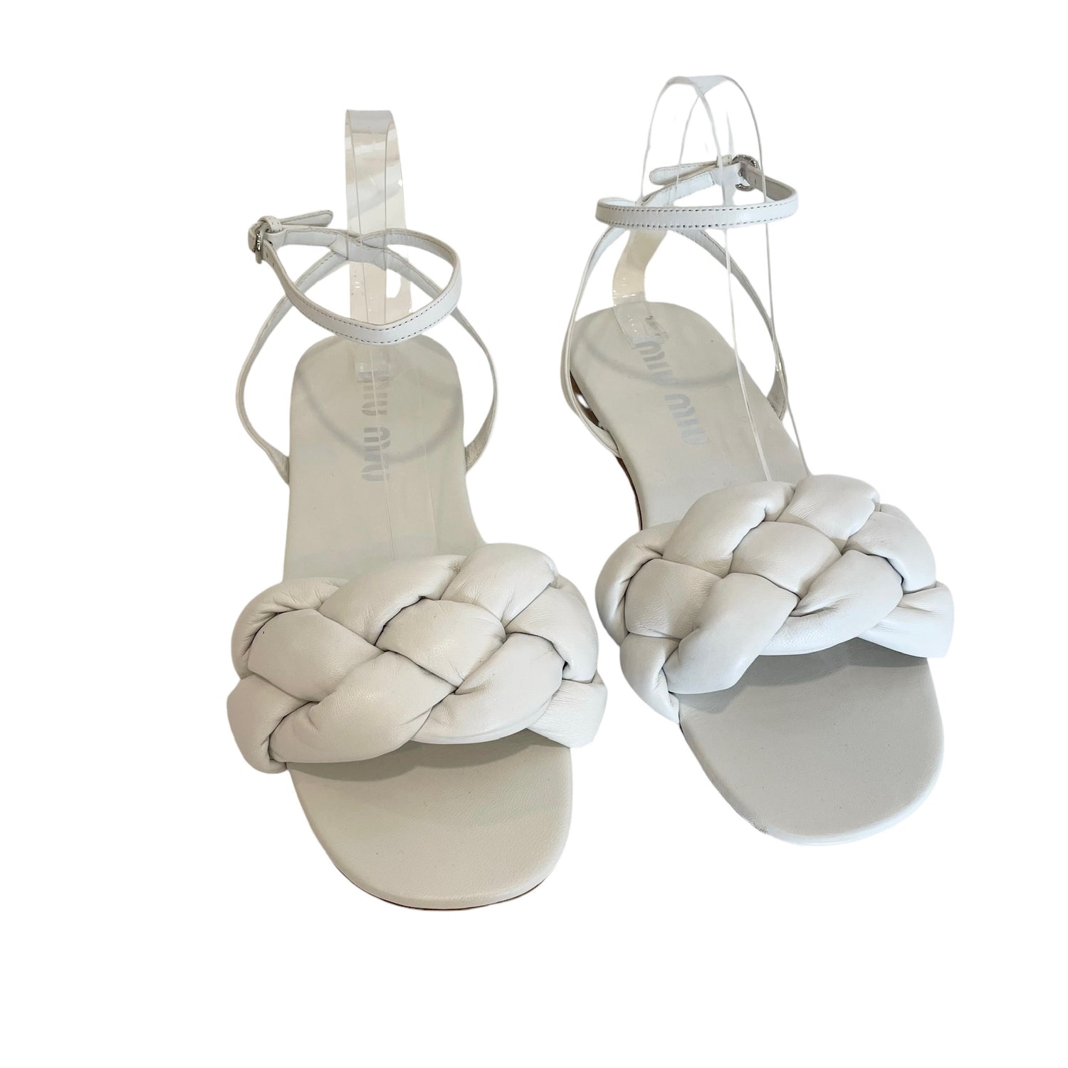 Miu Miu white sandals. White interwoven padded leather. Ankle strap closure. Designer size 40.