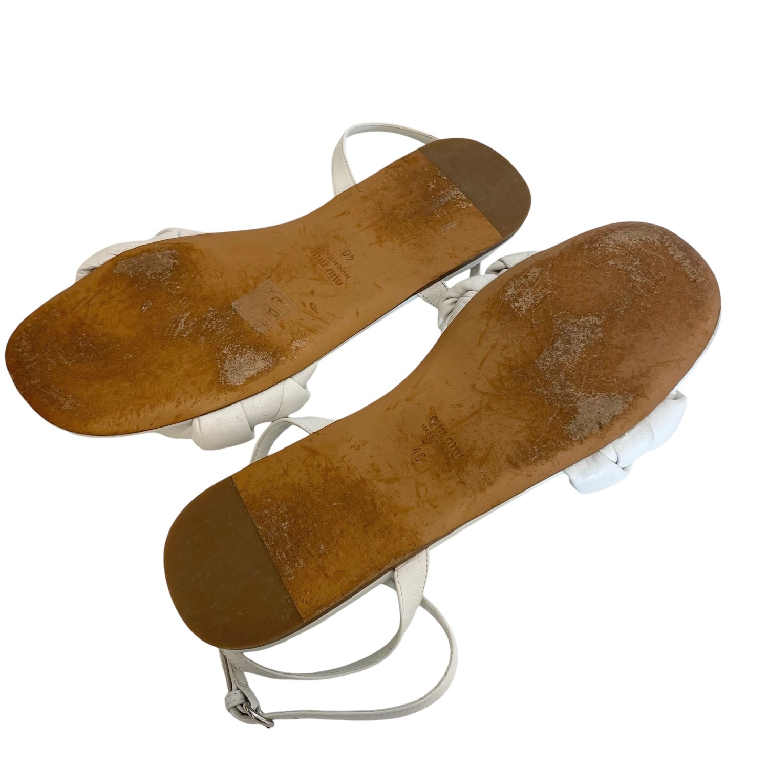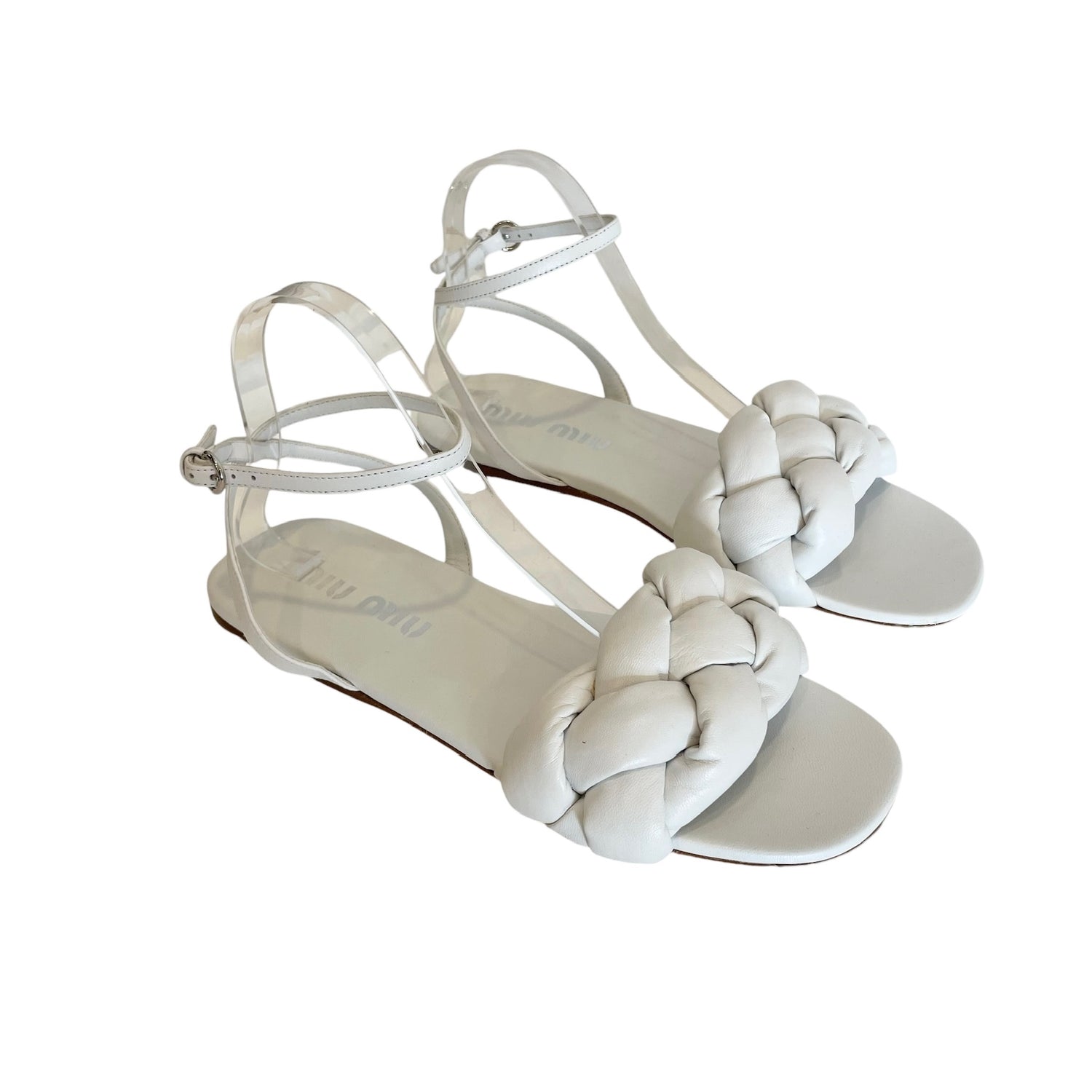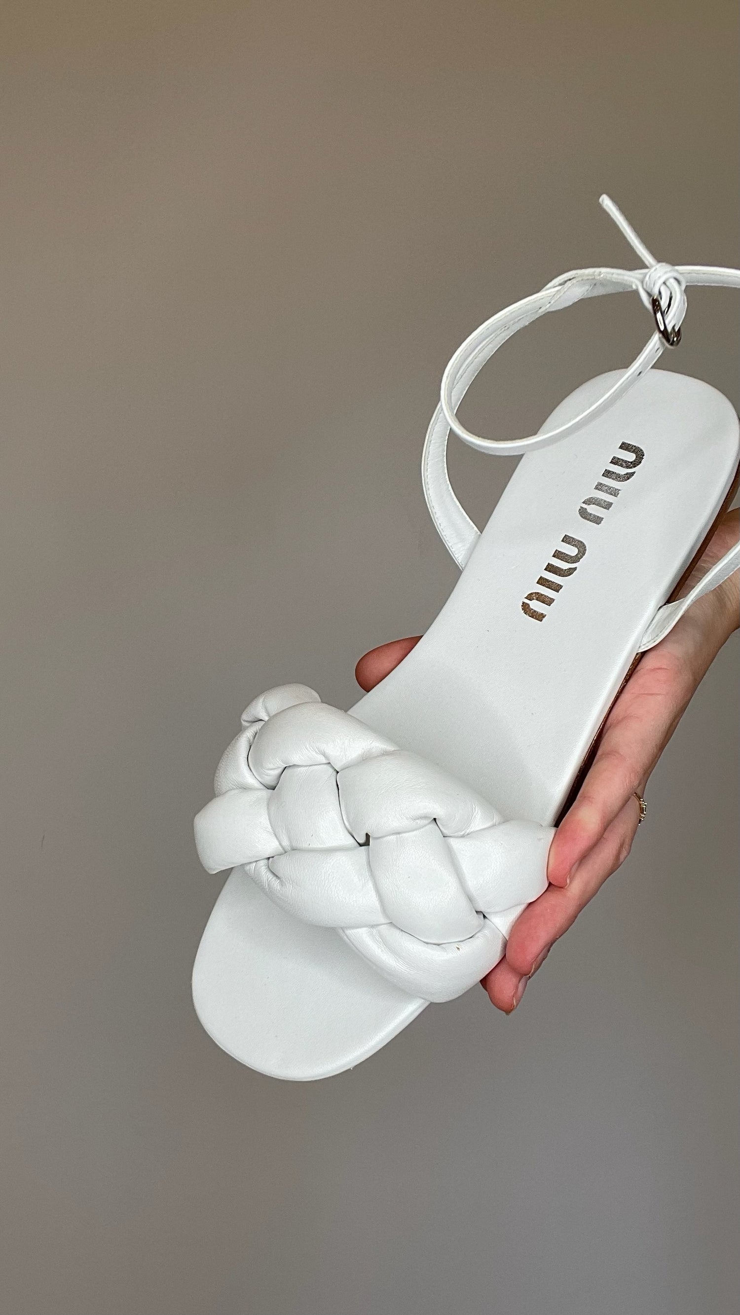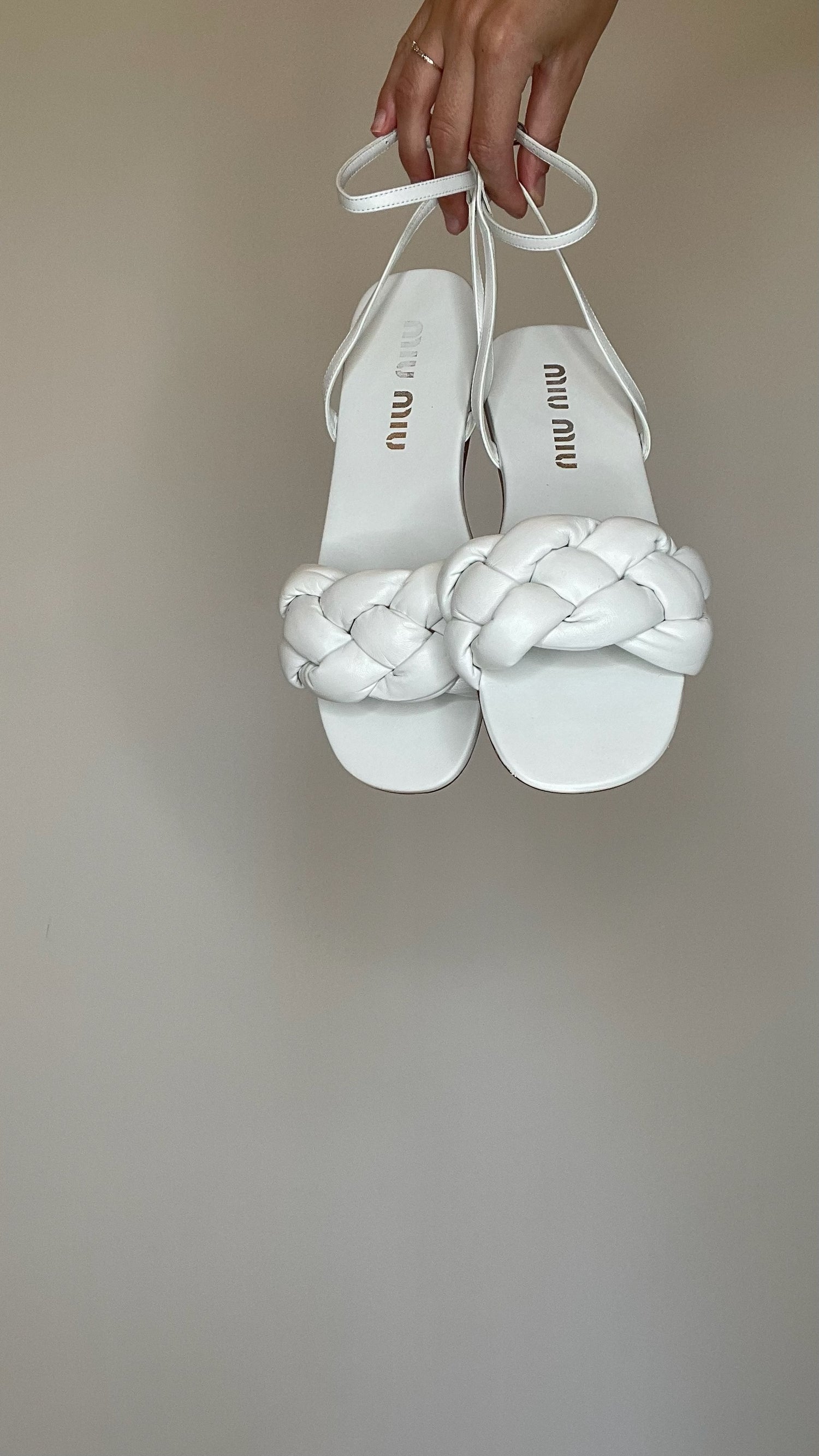 Miu Miu white sandals. White interwoven padded leather. Ankle strap closure. Designer size 40.