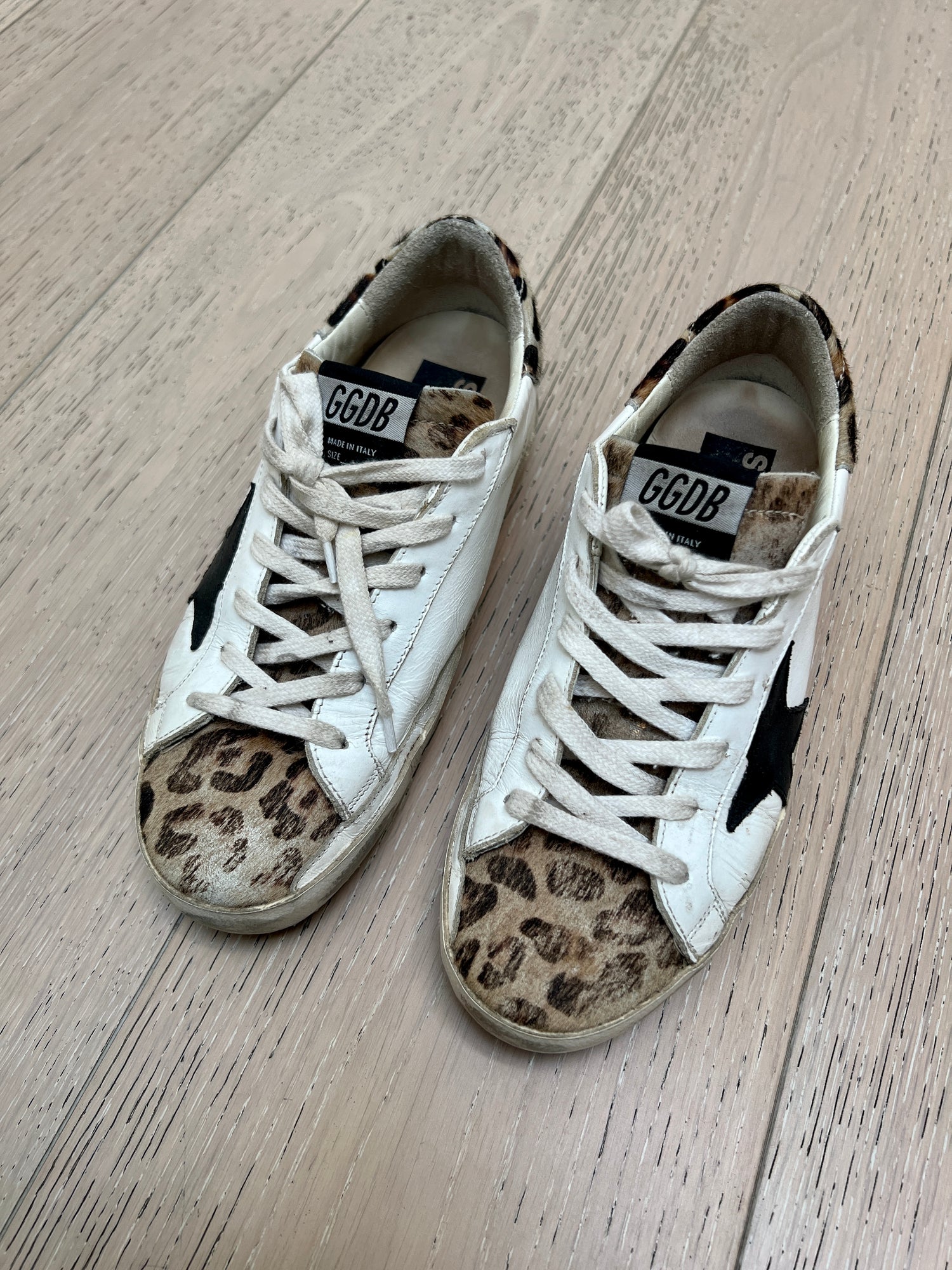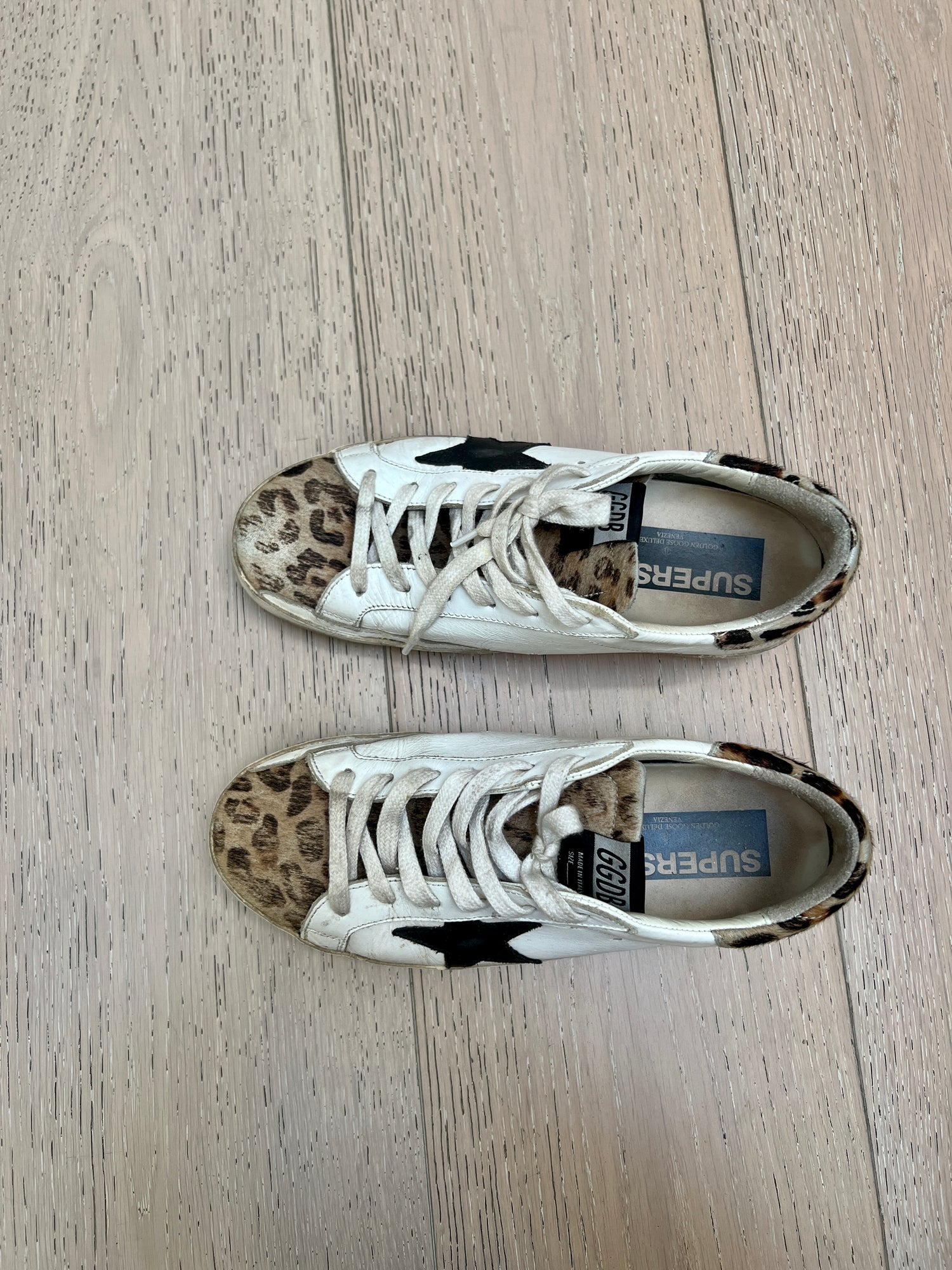 Leopard Pony hair on top and leather. These are a classic cool pair of sneakers. Size: 37.