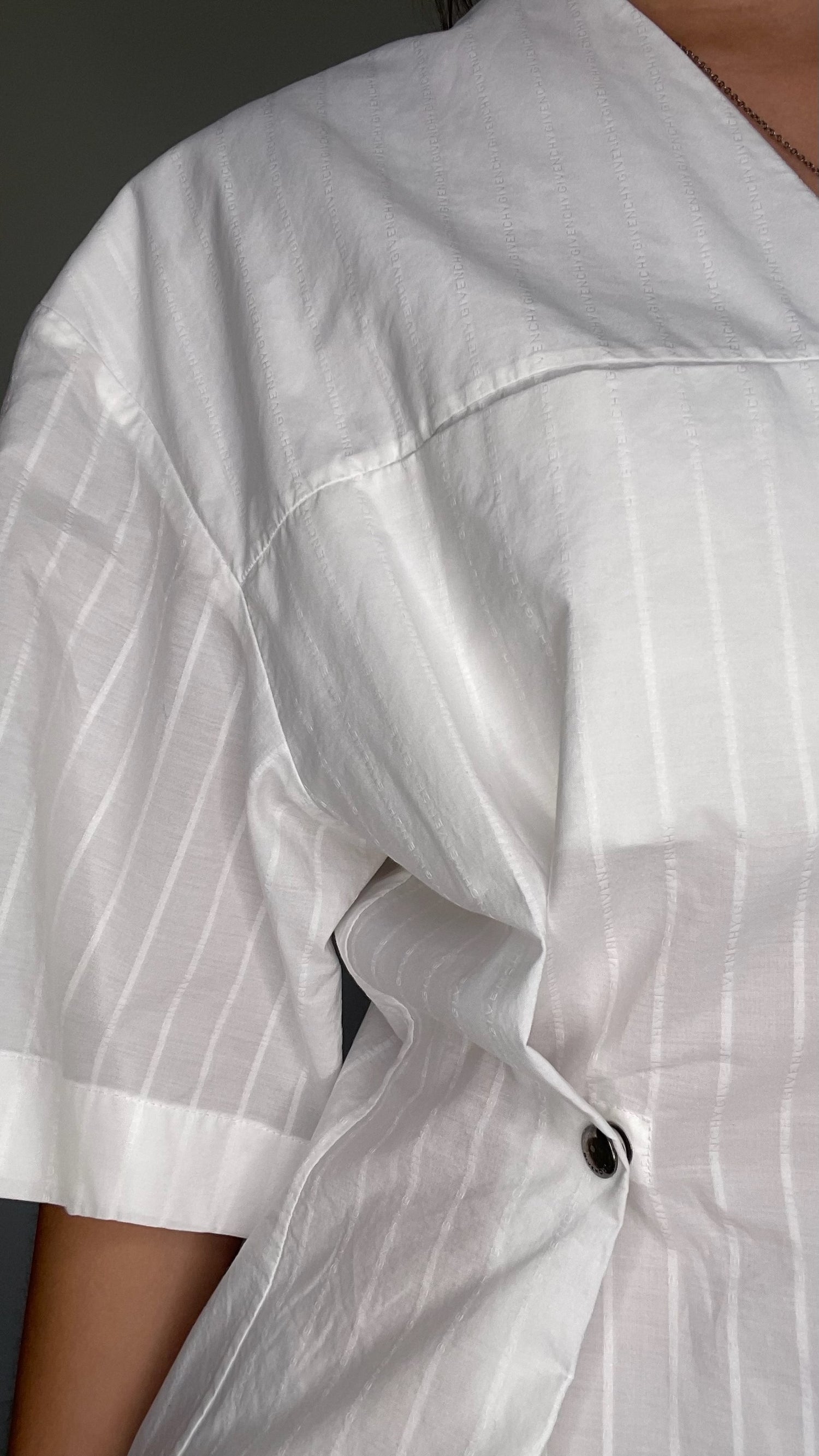 Givenchy logo cotton dress. Silver hardware and zipper at front. Thin striped design made of logo throughout. Designer size 40