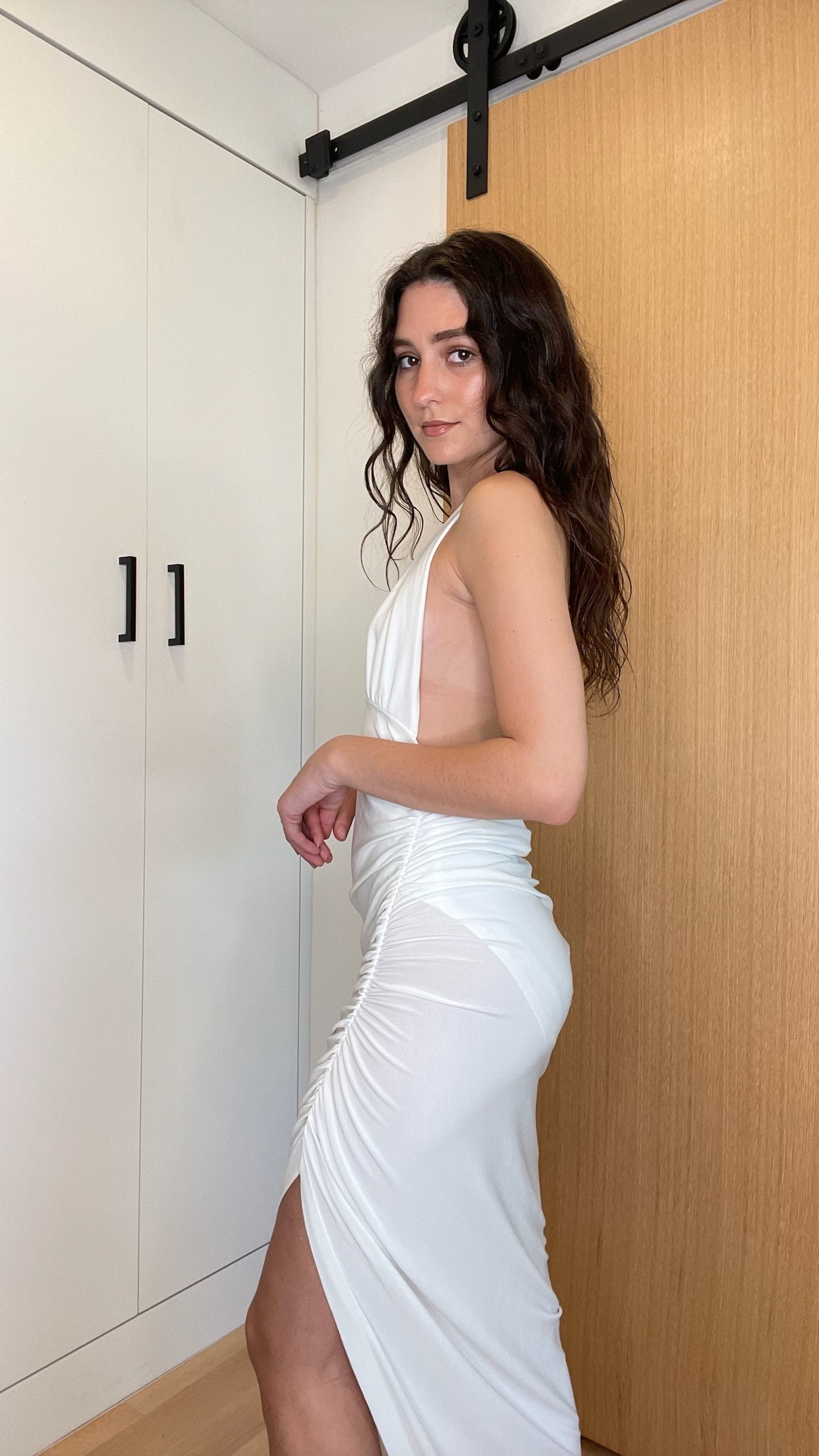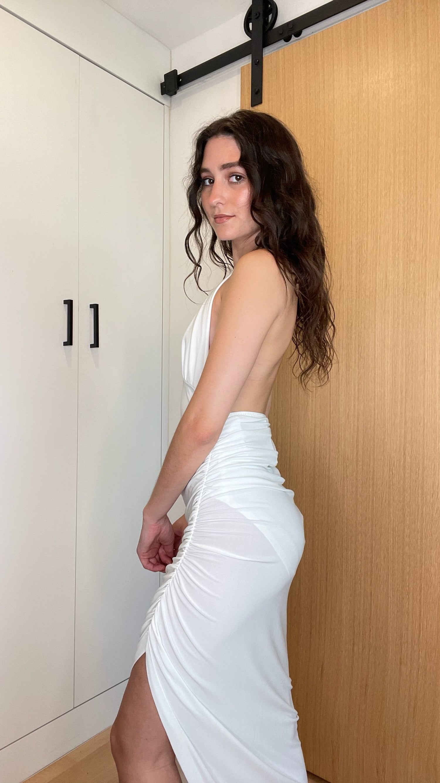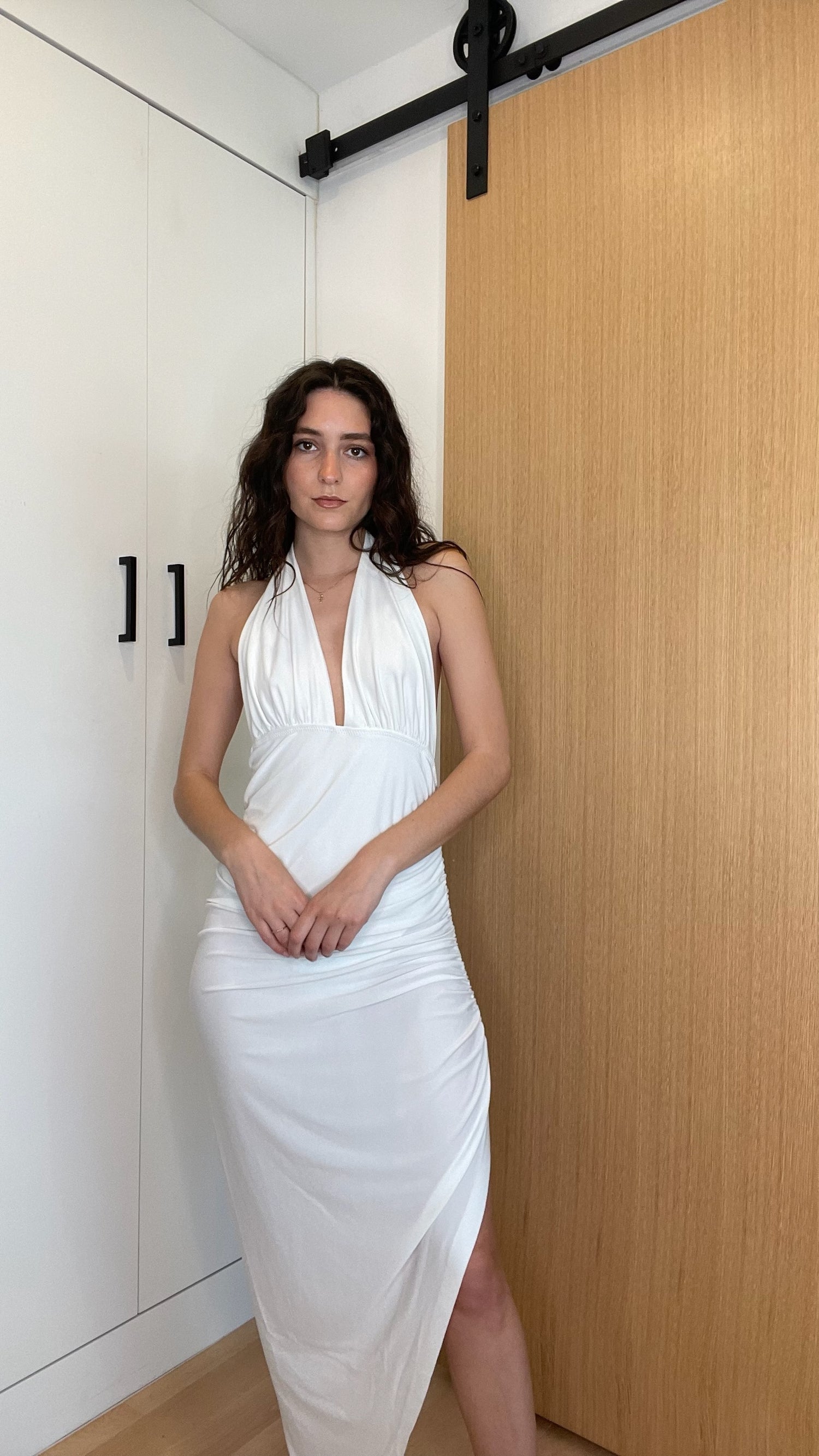 Norma Kamali white dress. Stretchy and fitting comfortable fabric. Designer size Large.