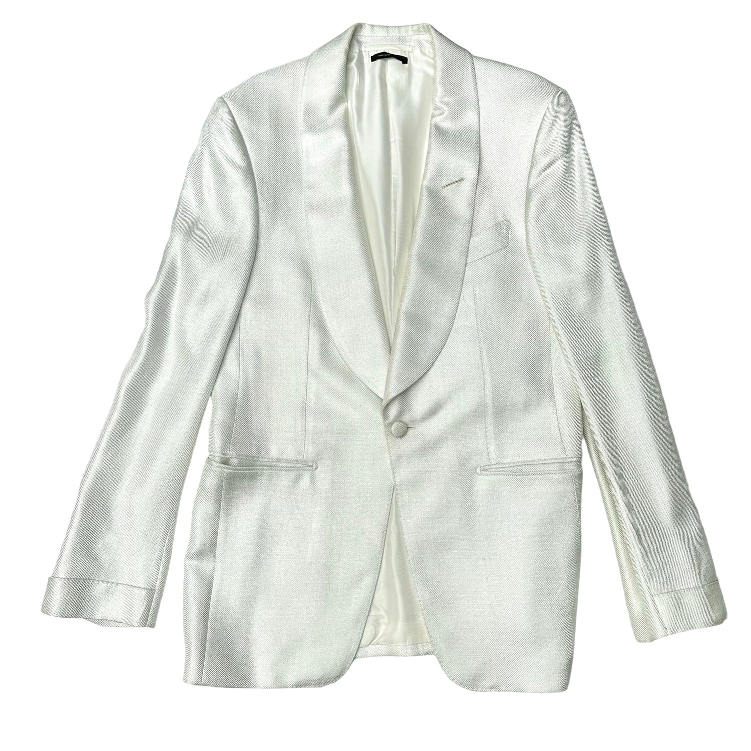 Tom Ford Men's blazer. White. Round collar. One button closure at front. Designer size 48R.