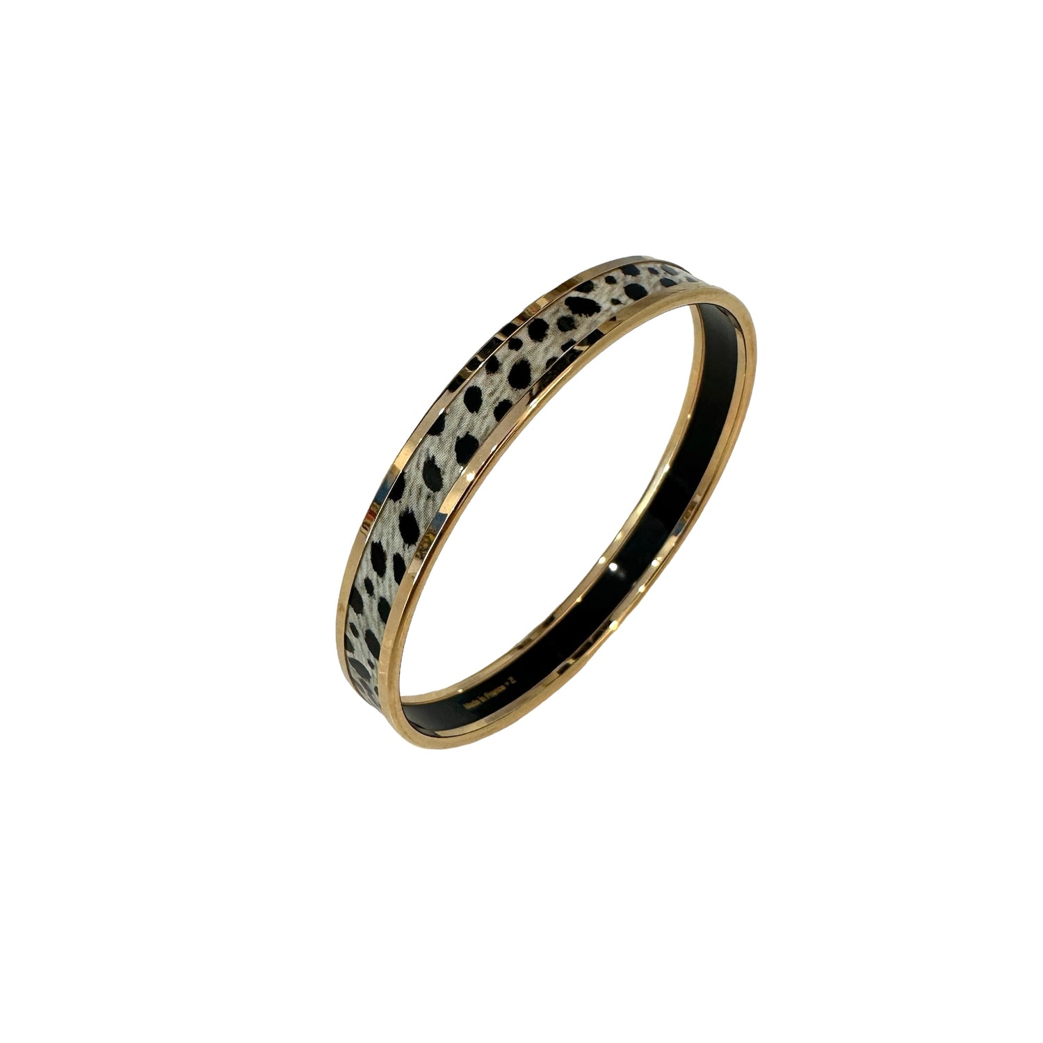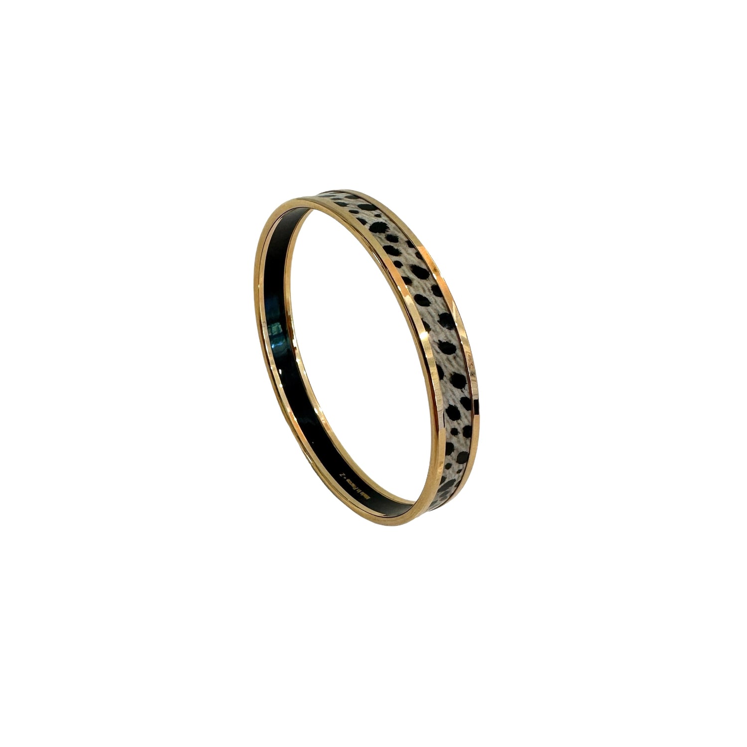 Hermes enamel bangle. Animal print in neutral colored enamel. Gold plated trims.