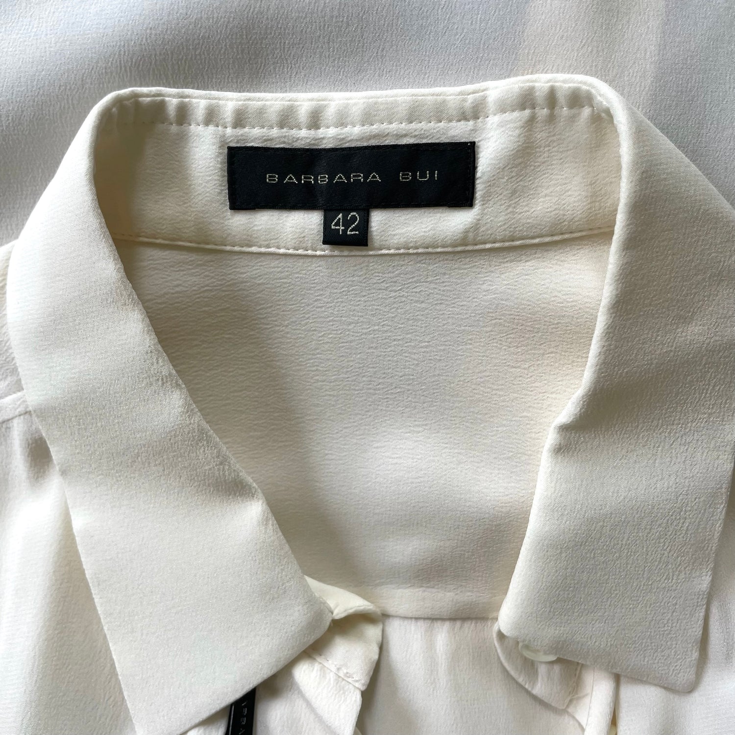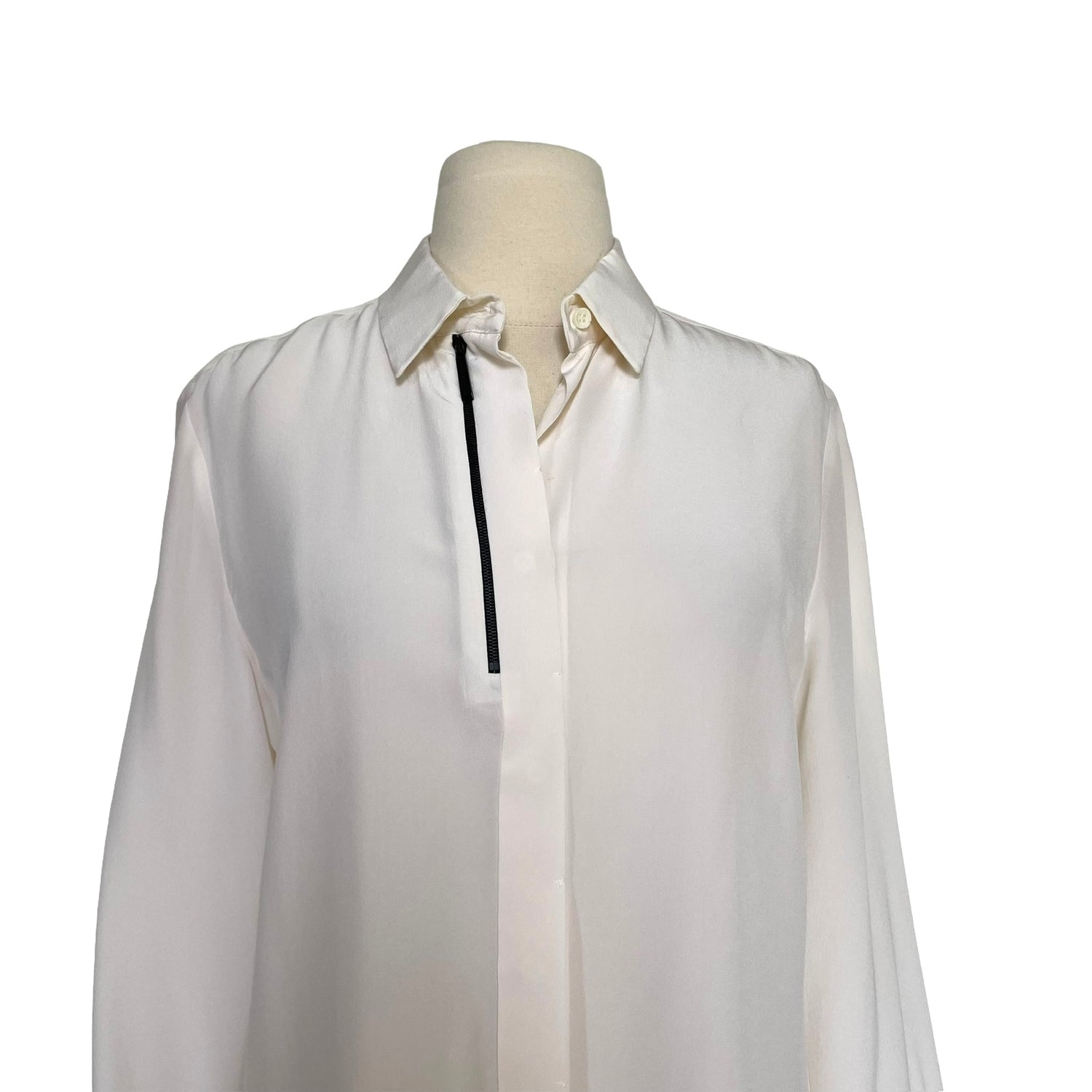 Barbara Bui white shirt. Button closure at front. Black zipper embellishment at front. Designer size 42.